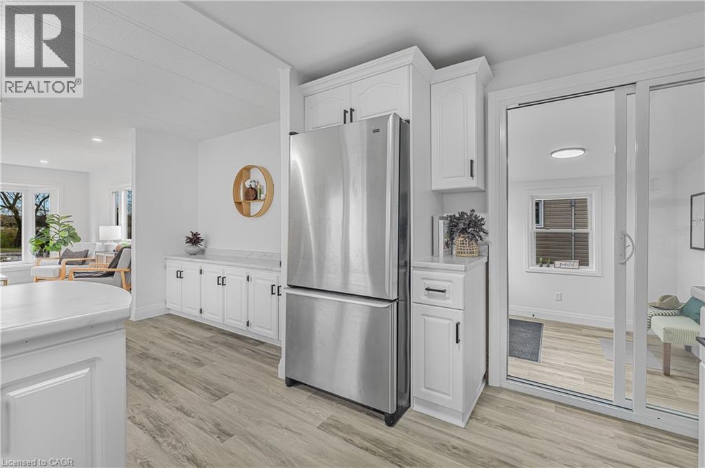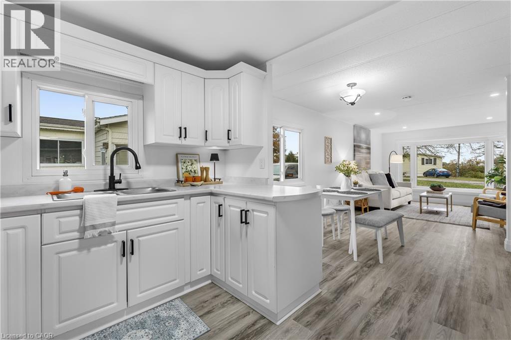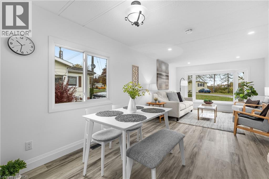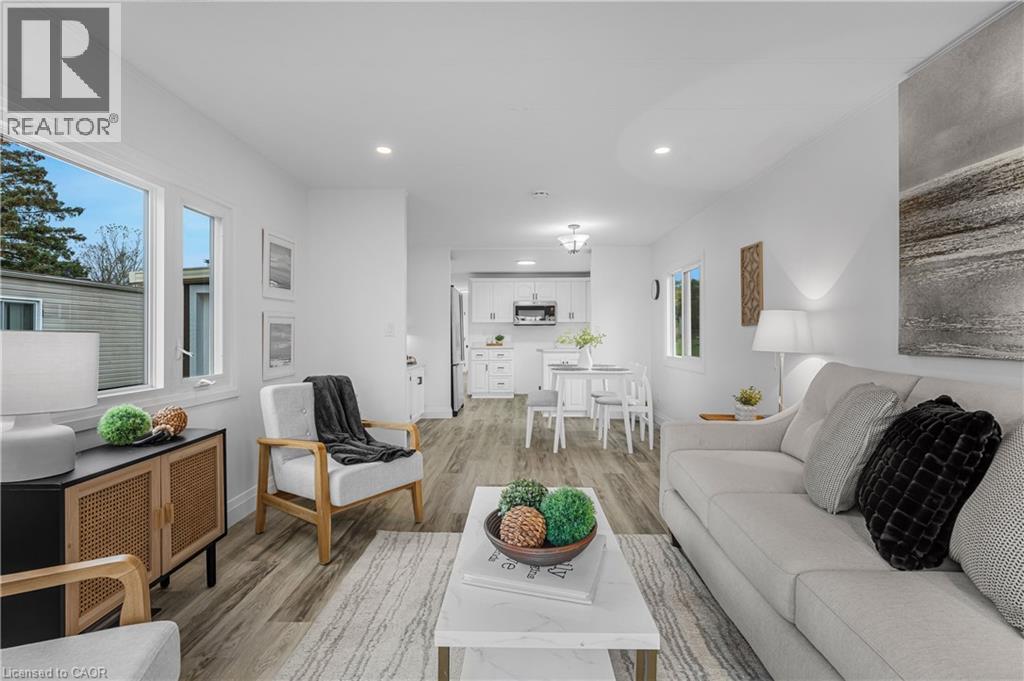 Welcome to Ellsworth Acres Mobile Home Community in Wainfleet! This beautifully updated mobile home has been extensively renovated and is move-in ready. The spacious, modern kitchen boasts stainless steel appliances, stylish flooring, new drywall with vapor barrier, and sleek pot lighting. The open-concept kitchen, living, and dining area is bright and inviting, featuring large vinyl/thermal windows and a charming coffee bar. The home includes two bedrooms plus a generous office—perfect for hosting guests or working from home. The fully updated bathroom features a brand-new walk-in shower, ideal for those with mobility needs. Additional improvements include new PEX water lines, doors, trim, and a brand-new deck for outdoor enjoyment. With parking for two vehicles and a 10' x 10' storage shed, this move-in-ready home checks all the boxes. Monthly fees cover land lease, property taxes, garbage and snow removal, water, and septic services. Ideally situated just a short drive from Dunnville, Welland, and Smithville, this home offers the perfect blend of modern comfort and small-town charm. Note: some photos have been virtually staged. (id:64974)
