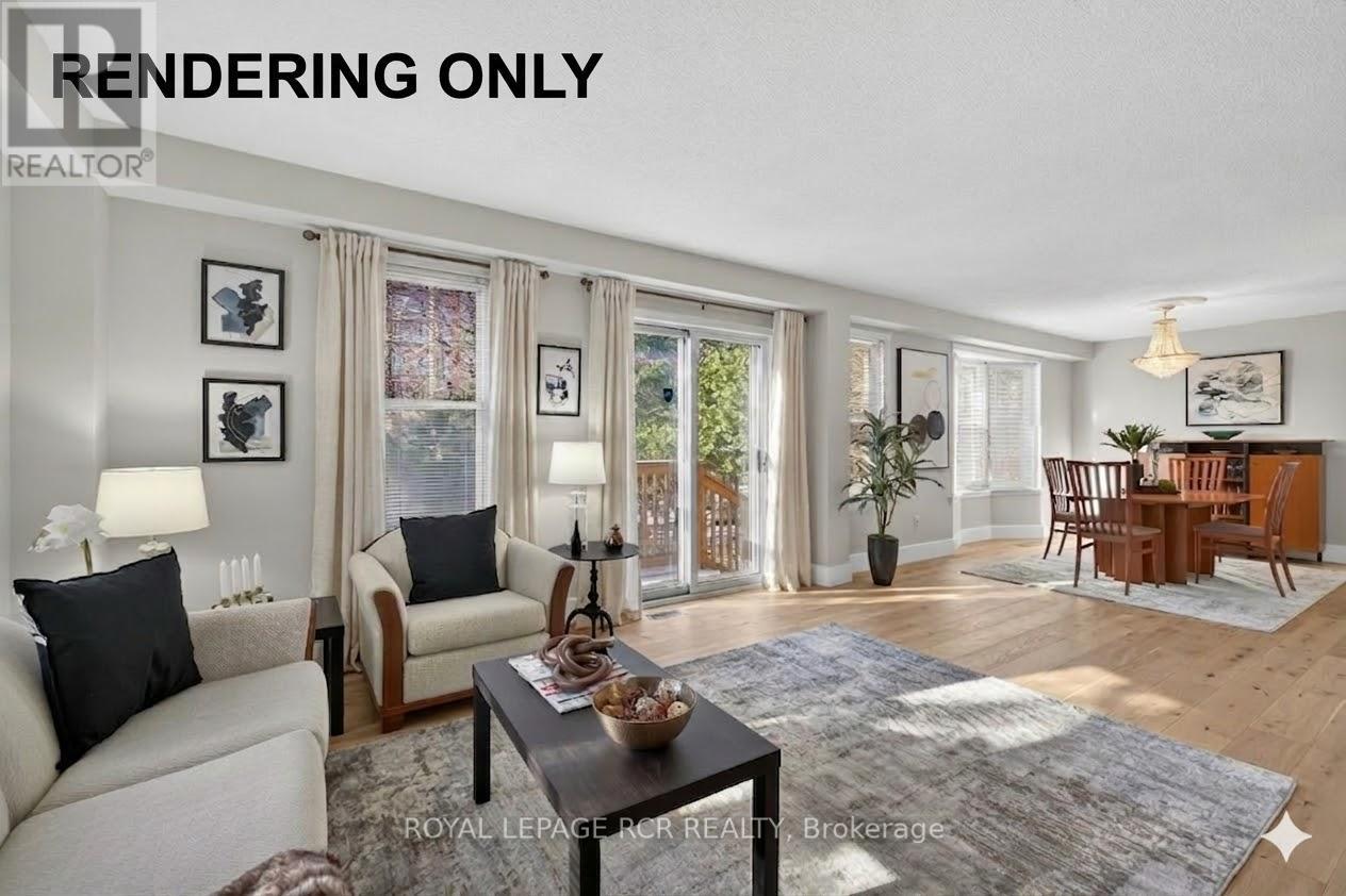 This is your chance to get into exclusive "Olde Thornhill" and put your mark on this fabulous corner unit townhouse. This residence offers approximately 2340 sq ft of living space including a fully finished basement. The main level walkout to a deck is accessed by both the Living Room and Dining Room. Large bright windows accent this space, and the Living Room actually has a charming electric fireplace. The main level kitchen is large and boasts a lovely breakfast room. The upper level has a massive primary bedroom with a walkout to its own balcony, that is also shared with the second family bedroom. Ample walk-in closets and a 4-piece ensuite bath complete the primary suite. The third bedroom on this level is spacious and also has a walk-in closet. Rounding out this property is a lower level recreation room with wood-burning fireplace, and there is even another bedroom on this level. Don't miss this opportunity. (id:64974)