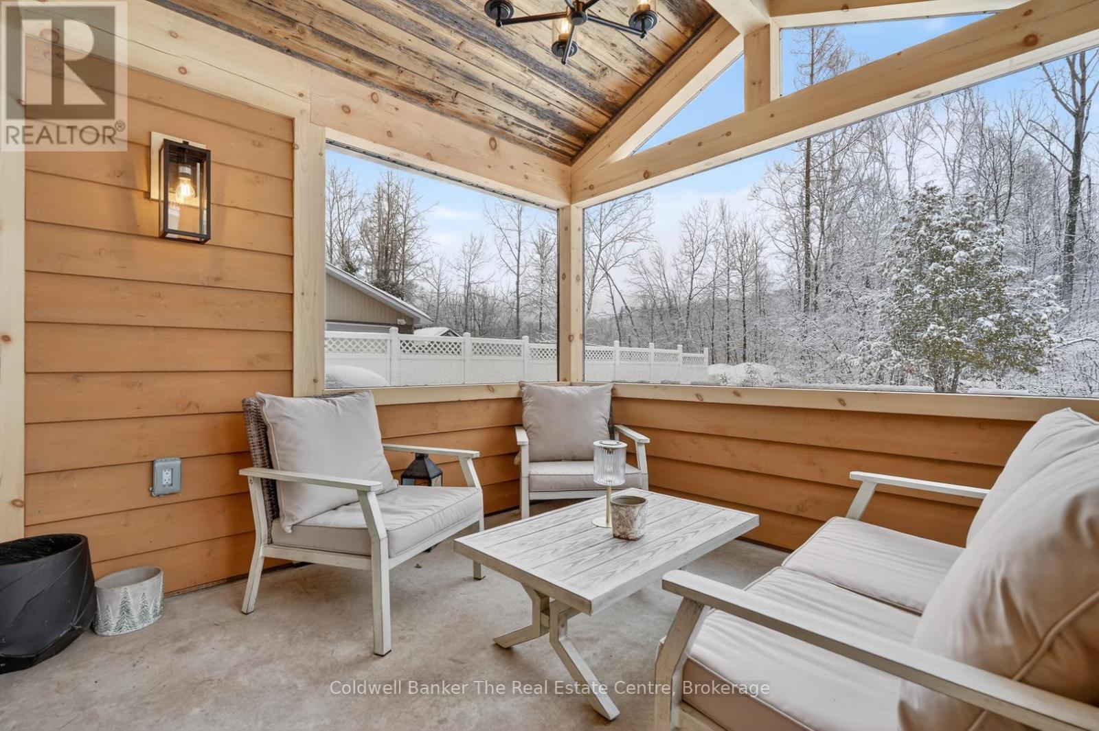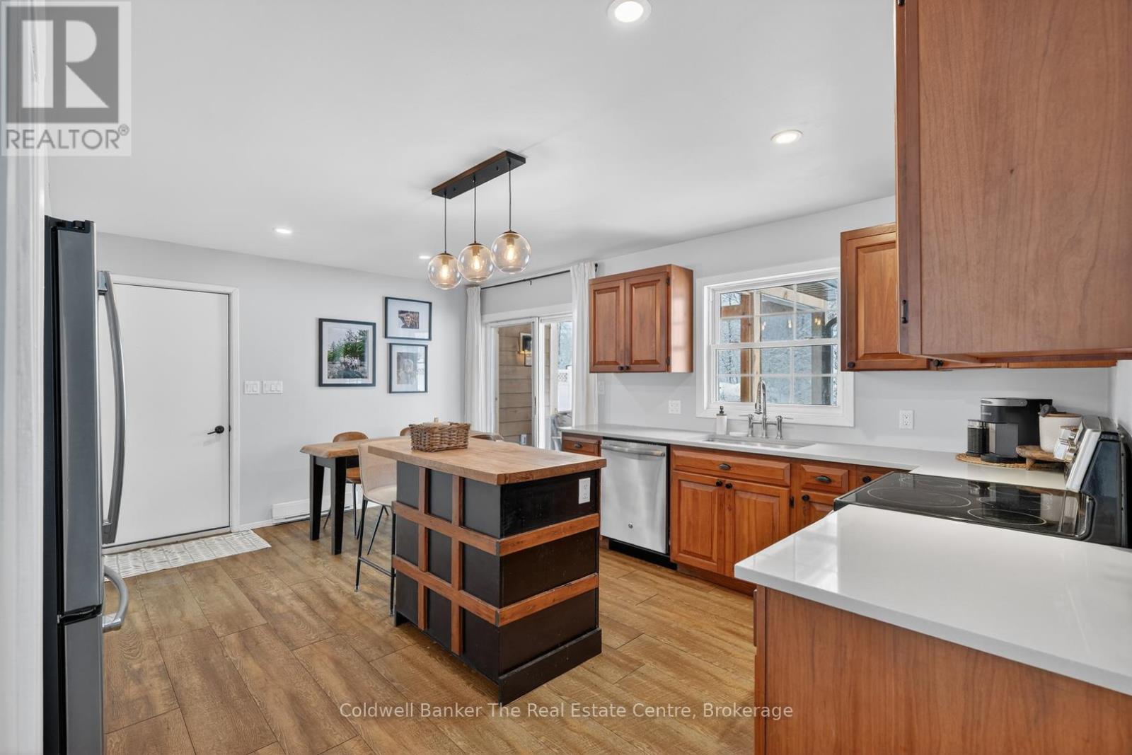 This beautifully maintained year-round bungalow is tucked away on a quiet street just steps from the heart of Minden, Ontario and the Gull River. Offering 3 bedrooms and 2 bathrooms, this immaculate home showcases true pride of ownership and provides the ease of one-level living in a setting that perfectly blends in-town convenience with scenic charm. The bright, open concept layout is ideal for everyday living and entertaining, featuring a custom cherry kitchen with an eat-in area, ample cabinetry, stainless steel appliances, and direct access to the attached garage for effortless grocery drop-offs. There is also a spacious laundry/pantry room just off the kitchen. The generous living and dining area easily accommodates a large table and is warmed by a cozy propane fireplace, creating an inviting space to gather with family and friends. The primary bedroom includes a walk-in closet and private ensuite, while the updated main 4-piece bath showcases stylish tile and subway tile wainscoting. Two additional bedrooms offer flexibility for family, guests, or a home office. Patio doors lead to a newly added 10 x 10 screened-in Muskoka room, perfect for morning coffee or relaxing evenings overlooking the very large, private, level backyard with perennial gardens and partial low-maintenance fencing. The oversized attached garage with workshop space provides excellent storage and room for hobbies. The updated exterior features new siding, painted brick, and improved insulation, helping enhance energy efficiency, comfort, and curb appeal. Serviced by municipal water and sewer, this low-maintenance home is ideal for buyers of any age with the added convenience of having everything you need on one level. Just a short walk to downtown Minden, shops, and restaurants, and only steps from the boat launch and access to the Gull River, you can easily enjoy boating, swimming, or floating down the river into Gull Lake all summer long! (id:64974)
