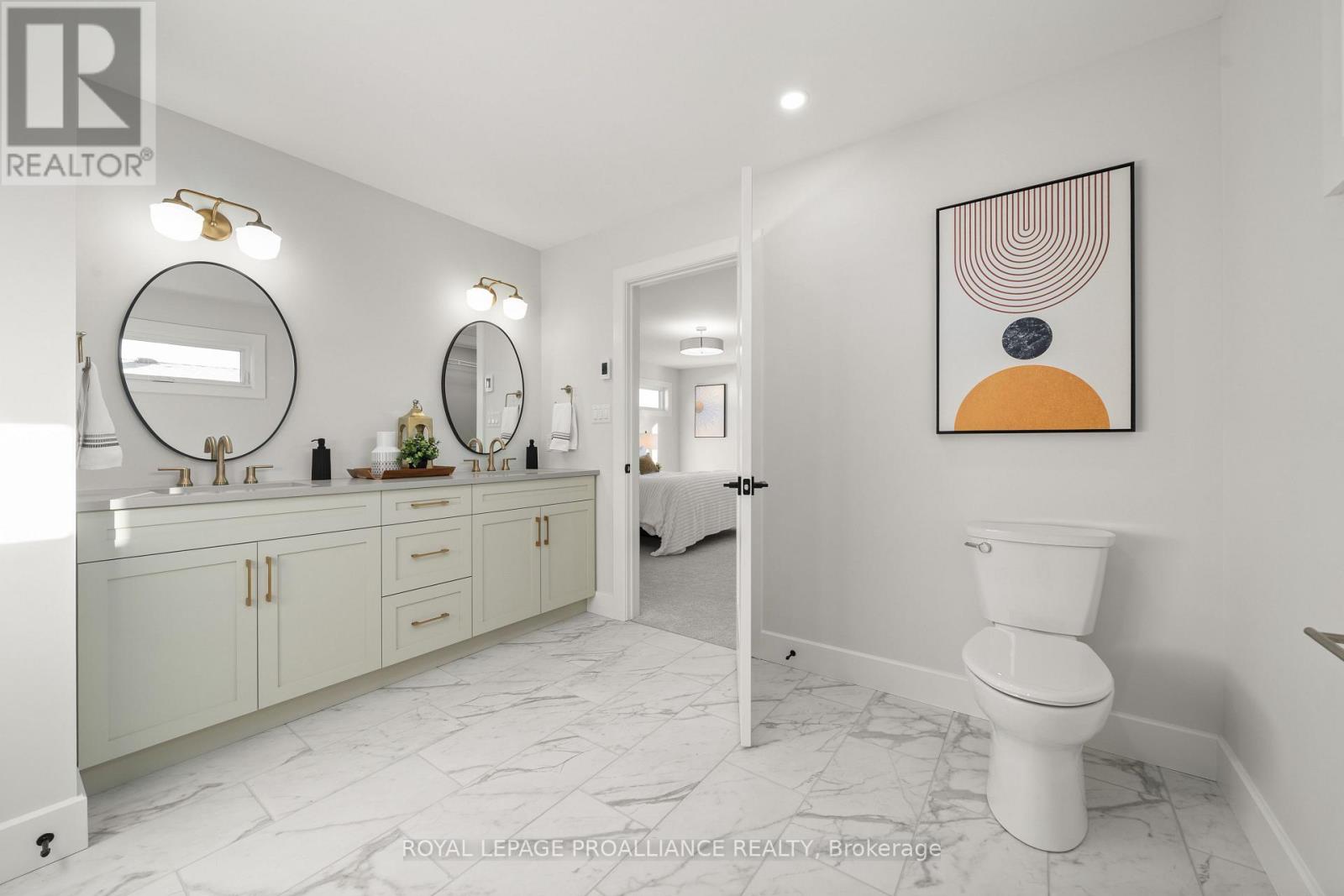 Experience modern living in the heart of Batawa with this brand-new, newly finished two-storey home by Merritt Homes-a trusted local builder known for quality craftsmanship and timeless design. This stunning 3-bedroom, 3-bathroom residence showcases the popular Galeere model, offering a fresh contemporary feel paired with the warmth and comfort every family is looking for. Step inside to a bright open-concept main level featuring clean lines, stylish finishes, and a seamless flow between the living, dining, and kitchen areas. A cozy fireplace anchors the living room, while the formal dining room creates the perfect setting for gatherings and entertaining. The spacious main-floor laundry room adds everyday convenience, and the extra-long double-car garage provides excellent storage opportunities in addition to the large utility room. Upstairs, you'll find three oversized bedrooms, each designed with generous proportions that are rarely found in new builds today. The primary suite is a true retreat with two walk-in closets and a beautifully finished spa-like ensuite. This home is built for comfort year-round with in-floor heating on the main level, central air conditioning, and forced-air heating on the second floor. Other notable features include a paved driveway, freshly sodded lawn, and the peace of mind of a 7-year new-home warranty. Located in one of the region's most desirable family communities, Batawa offers a truly unique lifestyle-skiing, biking, hiking trails, scenic hills, and the Trent River are right at your doorstep. Enjoy the strong sense of community this village is known for, all while being just 10 minutes from CFB Trenton. A perfect opportunity to own a brand-new home in a vibrant, outdoor-focused neighbourhood. (id:64974)