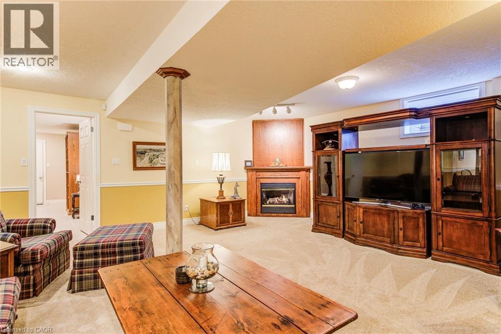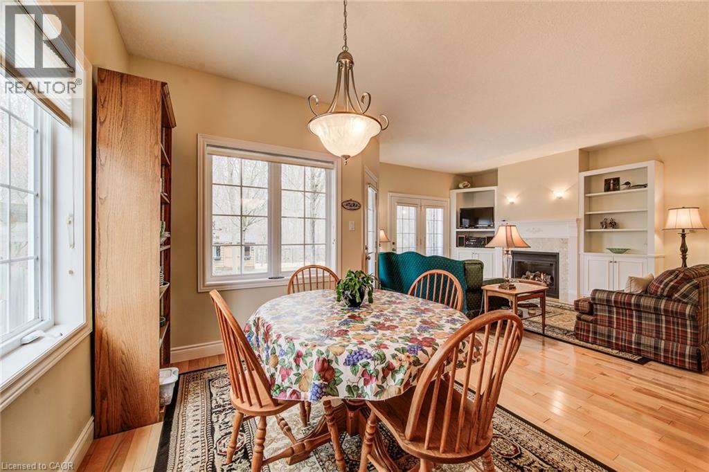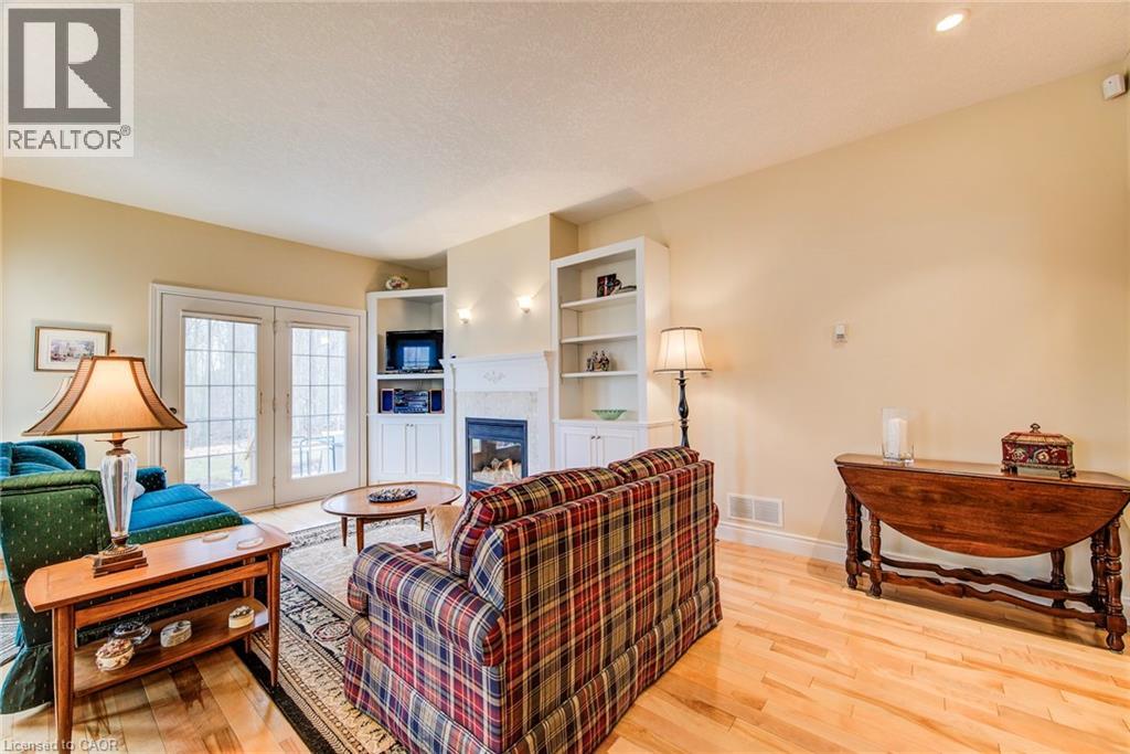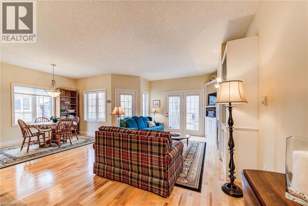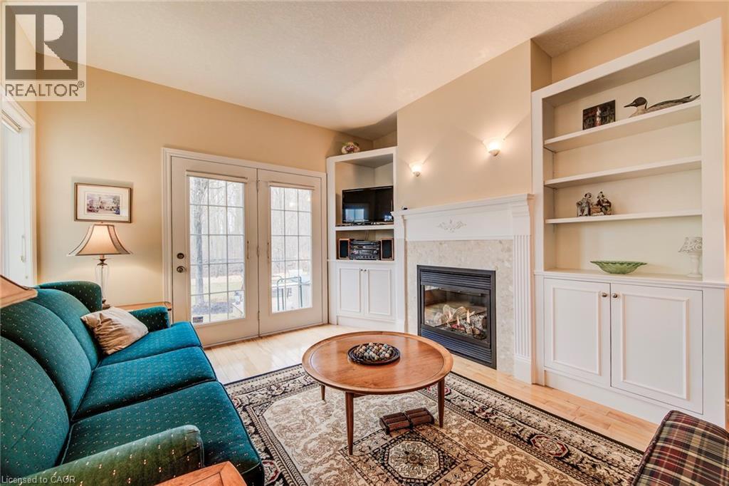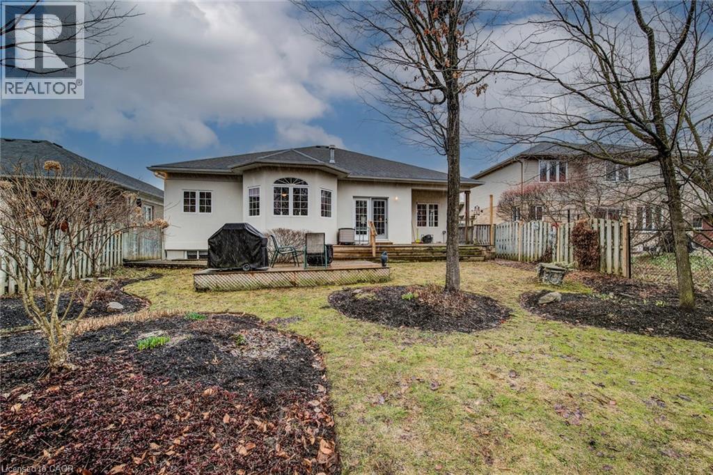 Curb appeal at its finest in this custom-built 3+1 bedroom, 3 bath bungalow with double-car garage, ideally situated on a desirable tree-lined street full of character. The striking stucco exterior makes a wonderful first impression, while inside, bright maple hardwood flooring flows through the living and dining rooms and into the kitchen, dinette, and great room. Designed with both comfort and entertaining in mind, the open-concept kitchen overlooks the dinette and family room, where a cozy gas fireplace and an abundance of windows provide beautiful views of the private, fully fenced, treed backyard. Sliding doors from the dinette lead to two decks, with a covered area creating the perfect setting for outdoor enjoyment. The spacious primary bedroom is bright and inviting, complete with a walk-in closet and 4-piece ensuite. Two additional bedrooms, a 4-piece main bath with large linen closet, and main floor laundry add to the home’s functionality. The finished basement extends the living space with a large rec room featuring a gas fireplace and bar, an additional bedroom, 3-piece bath, and cold cellar. Additional updates include a new furnace and A/C in 2024, plus a one-year-old water softener. Located in the welcoming full-service town of New Hamburg, close to the highway, trails, shopping, and restaurants, this is truly a must-see home. (id:64974)
