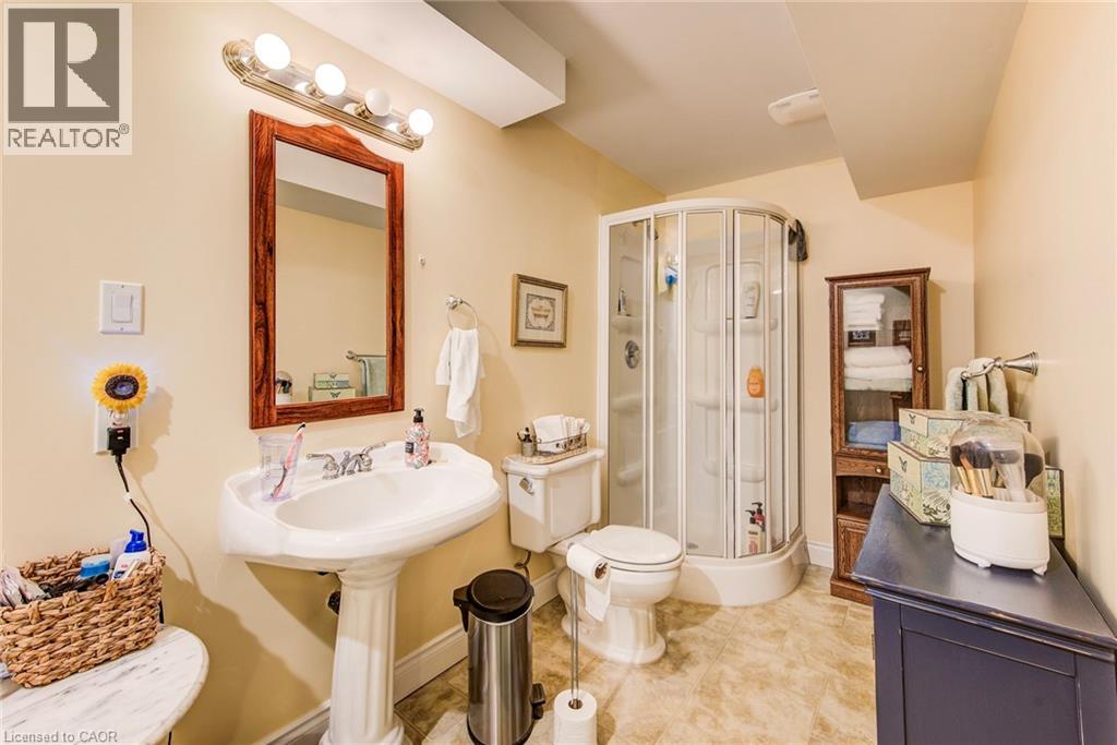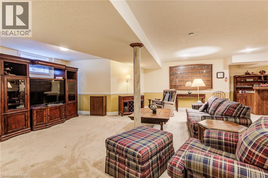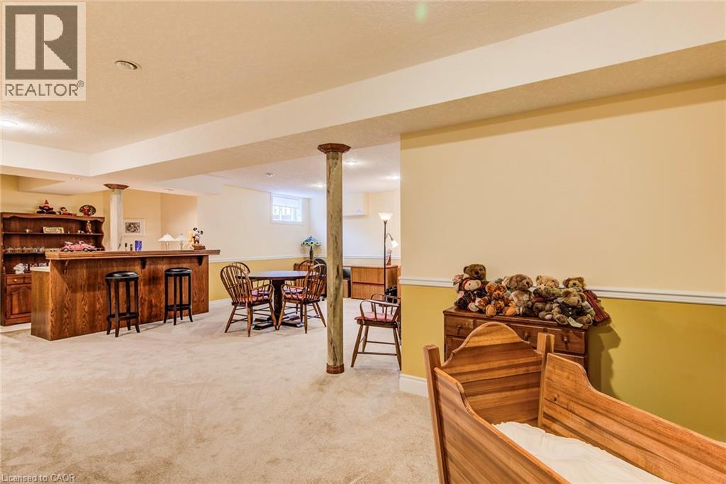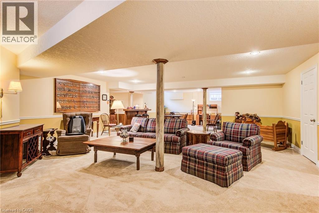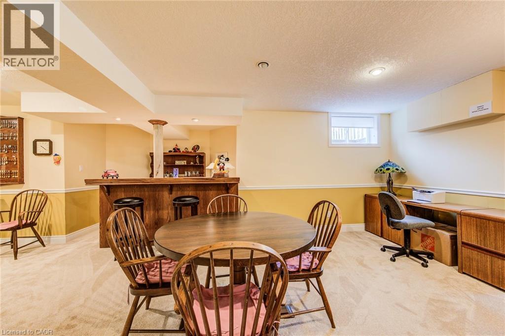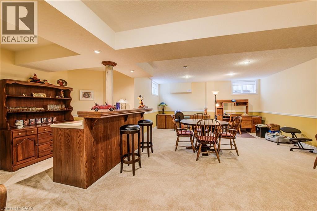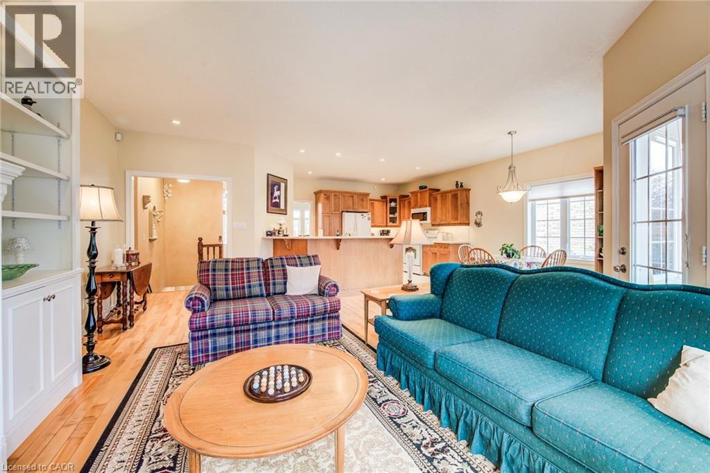 Curb appeal at its finest in this custom-built 3+1 bedroom, 3 bath bungalow with double-car garage, ideally situated on a desirable tree-lined street full of character. The striking stucco exterior makes a wonderful first impression, while inside, bright maple hardwood flooring flows through the living and dining rooms and into the kitchen, dinette, and great room. Designed with both comfort and entertaining in mind, the open-concept kitchen overlooks the dinette and family room, where a cozy gas fireplace and an abundance of windows provide beautiful views of the private, fully fenced, treed backyard. Sliding doors from the dinette lead to two decks, with a covered area creating the perfect setting for outdoor enjoyment. The spacious primary bedroom is bright and inviting, complete with a walk-in closet and 4-piece ensuite. Two additional bedrooms, a 4-piece main bath with large linen closet, and main floor laundry add to the home’s functionality. The finished basement extends the living space with a large rec room featuring a gas fireplace and bar, an additional bedroom, 3-piece bath, and cold cellar. Additional updates include a new furnace and A/C in 2024, plus a one-year-old water softener. Located in the welcoming full-service town of New Hamburg, close to the highway, trails, shopping, and restaurants, this is truly a must-see home. (id:64974)