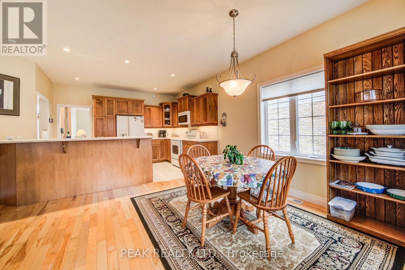 Curb appeal at its finest in this custom-built 3+1 bedroom, 3 bath bungalow with double-car garage, ideally situated on a desirable tree-lined street full of character. The striking stucco exterior makes a wonderful first impression, while inside, bright maple hardwood flooring flows through the living and dining rooms and into the kitchen, dinette, and great room. Designed with both comfort and entertaining in mind, the open-concept kitchen overlooks the dinette and family room, where a cozy gas fireplace and an abundance of windows provide beautiful views of the private, fully fenced, treed backyard. Sliding doors from the dinette lead to two decks, with a covered area creating the perfect setting for outdoor enjoyment. The spacious primary bedroom is bright and inviting, complete with a walk-in closet and 4-piece ensuite. Two additional bedrooms, a 4-piece main bath with large linen closet, and main floor laundry add to the home's functionality. The finished basement extends the living space with a large rec room featuring a gas fireplace and bar, an additional bedroom, 3-piece bath, and cold cellar. Additional updates include a new furnace and A/C in 2024, plus a one-year-old water softener. Located in the welcoming full-service town of New Hamburg, close to the highway, trails, shopping, and restaurants, this is truly a must-see home. (id:64974)