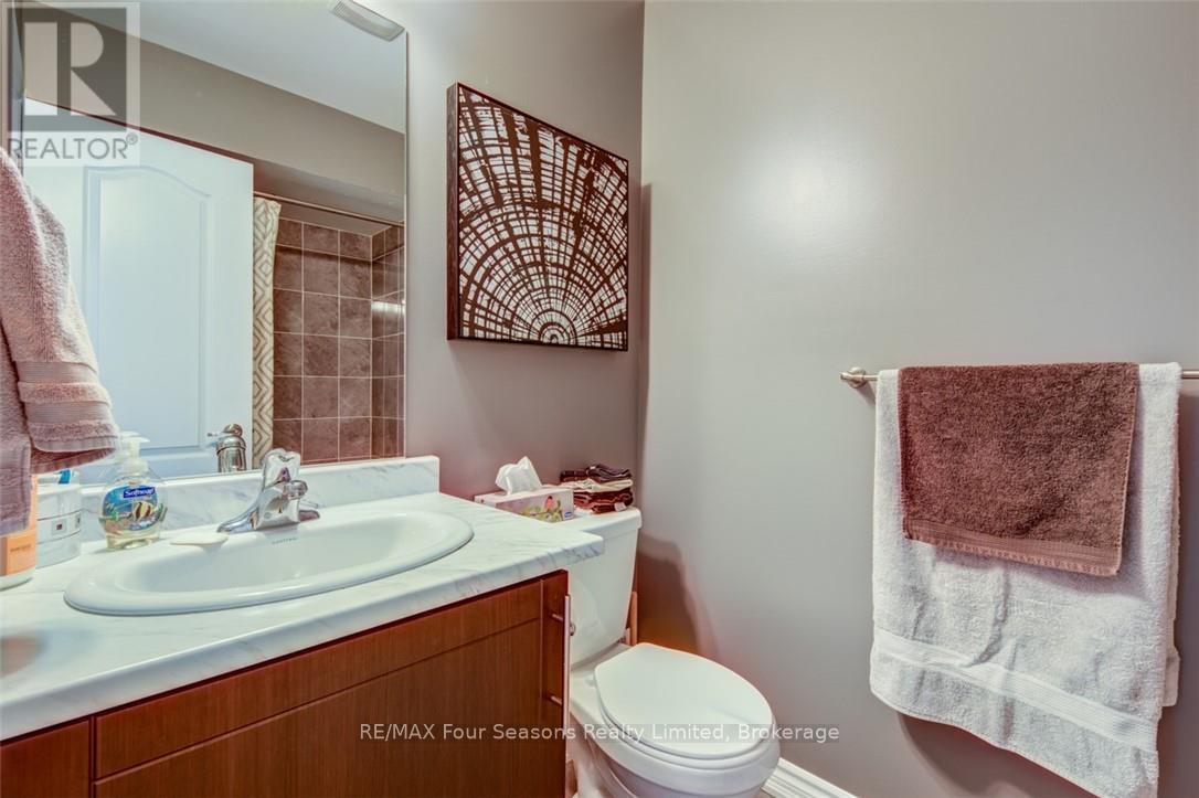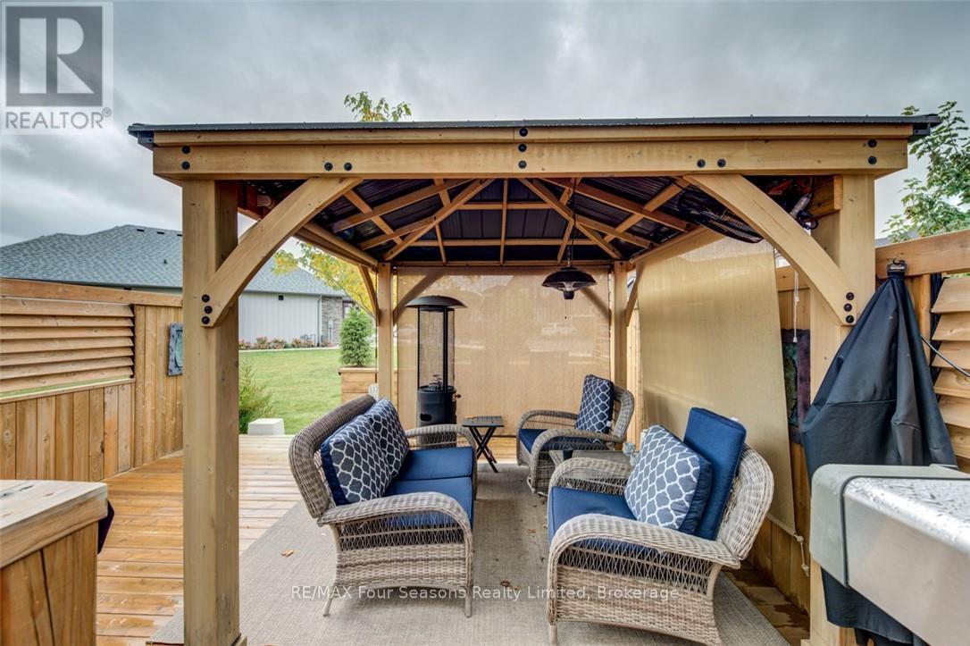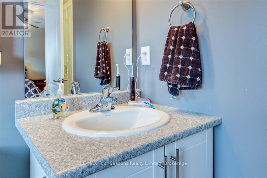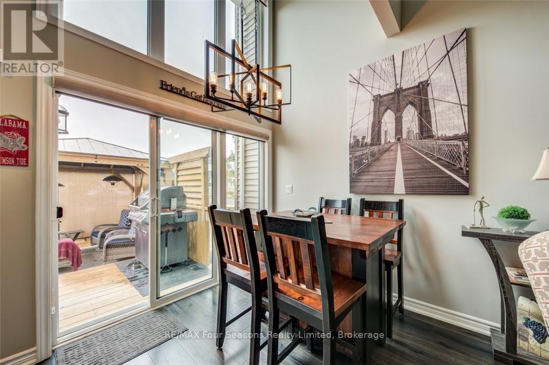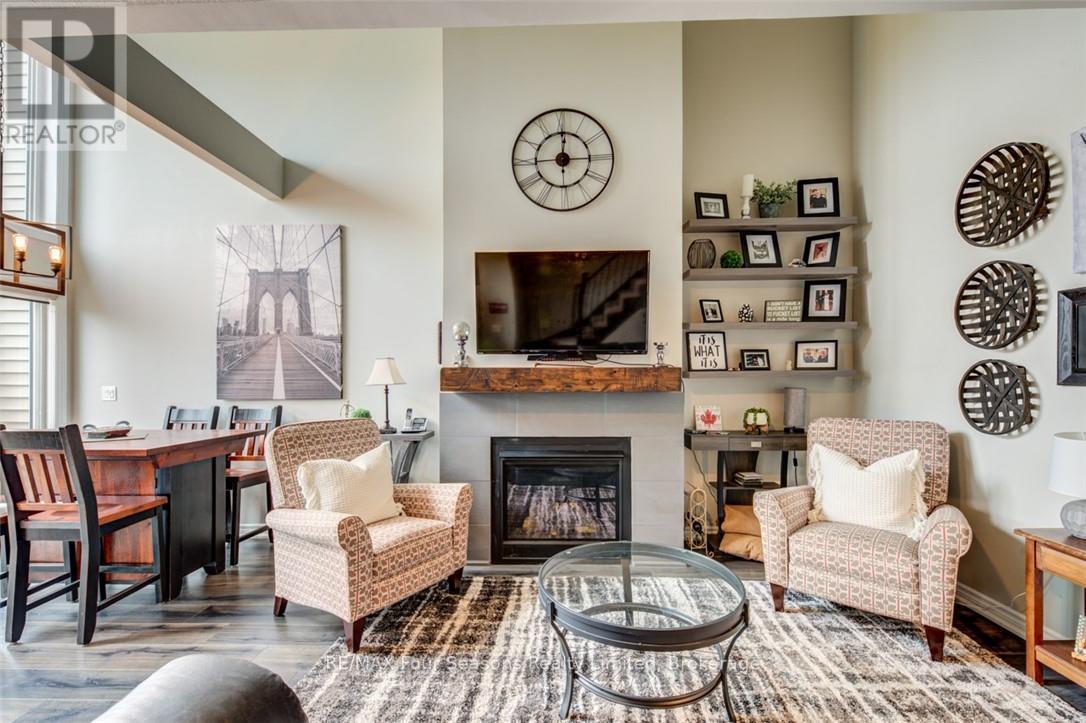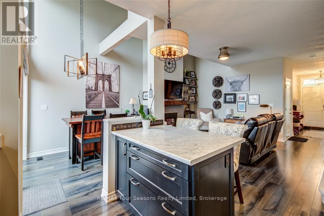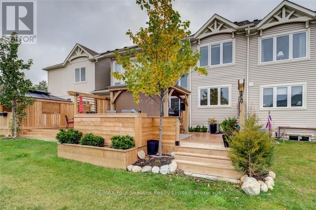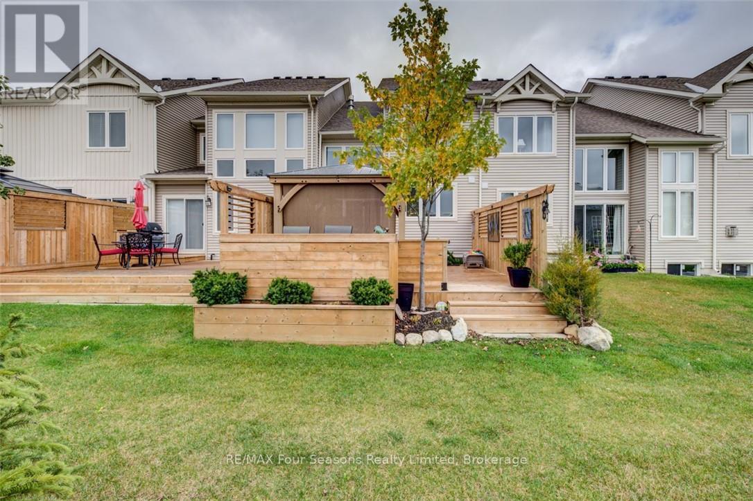 Blue Fairways freehold townhome nestled near Cranberry Golf Course on a premium lot. Just a seven minute drive to the ski hills but yet a 10 minute drive to Historic downtown Collingwood. This Pine Valley floorplan consists of 1216 above grade sq ft with another 419 on the lower level. Open plan main level with vaulted ceilings, gourmet kitchen with extended breakfast area, gas fireplace and engineered hardwood flooring. Dining area off the kitchen leads to a custom built deck which is offers privacy, shelter and entertainment in the warmer months. Second level offers a primary bedroom with ensuite, a further bedroom, 4 piece bathroom and laundry facilities. The lower level is finished with a large family room, currently set up as a bedroom with a 2 piece bathroom. Single car garage with inside entry. Directly behind the townhome is a park area and recreation centre with outdoor pool and indoor gym. Furniture and furnishings are available with the right offer. POTL fees are $165 per month, includes lawn maintenance, street maintenance and use of the rec centre. (id:64974)