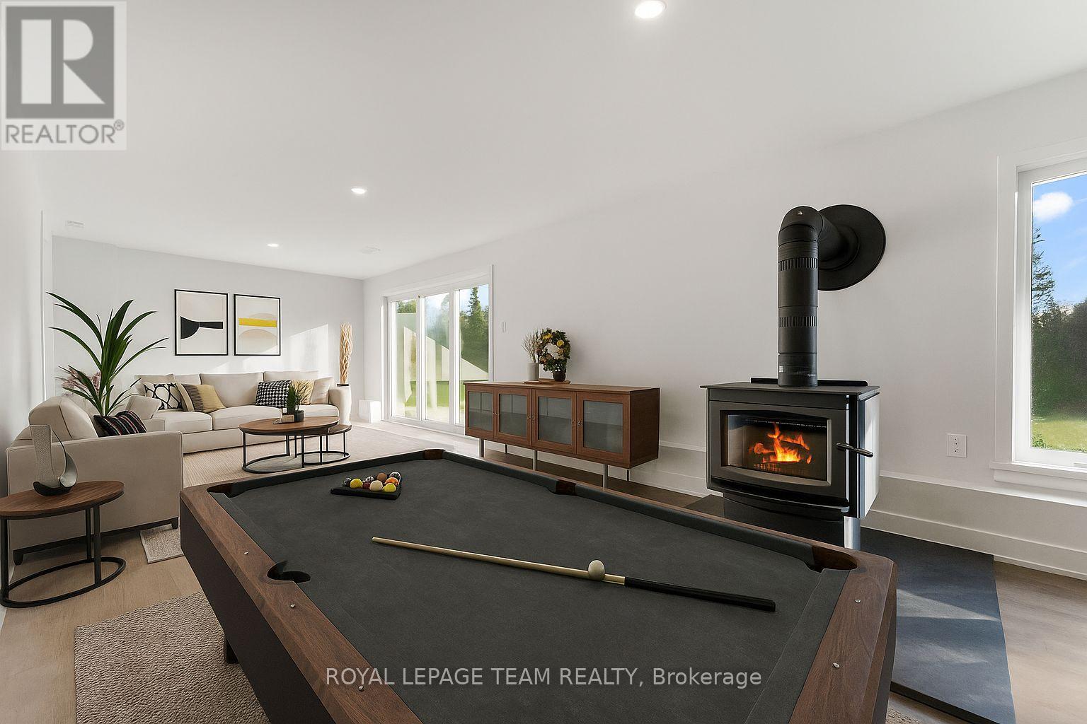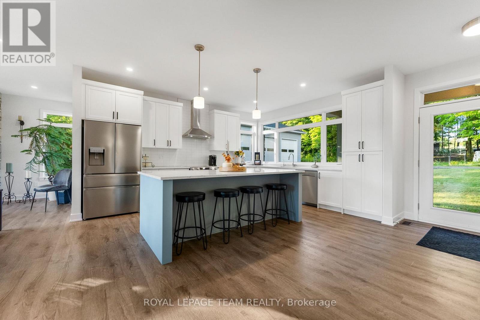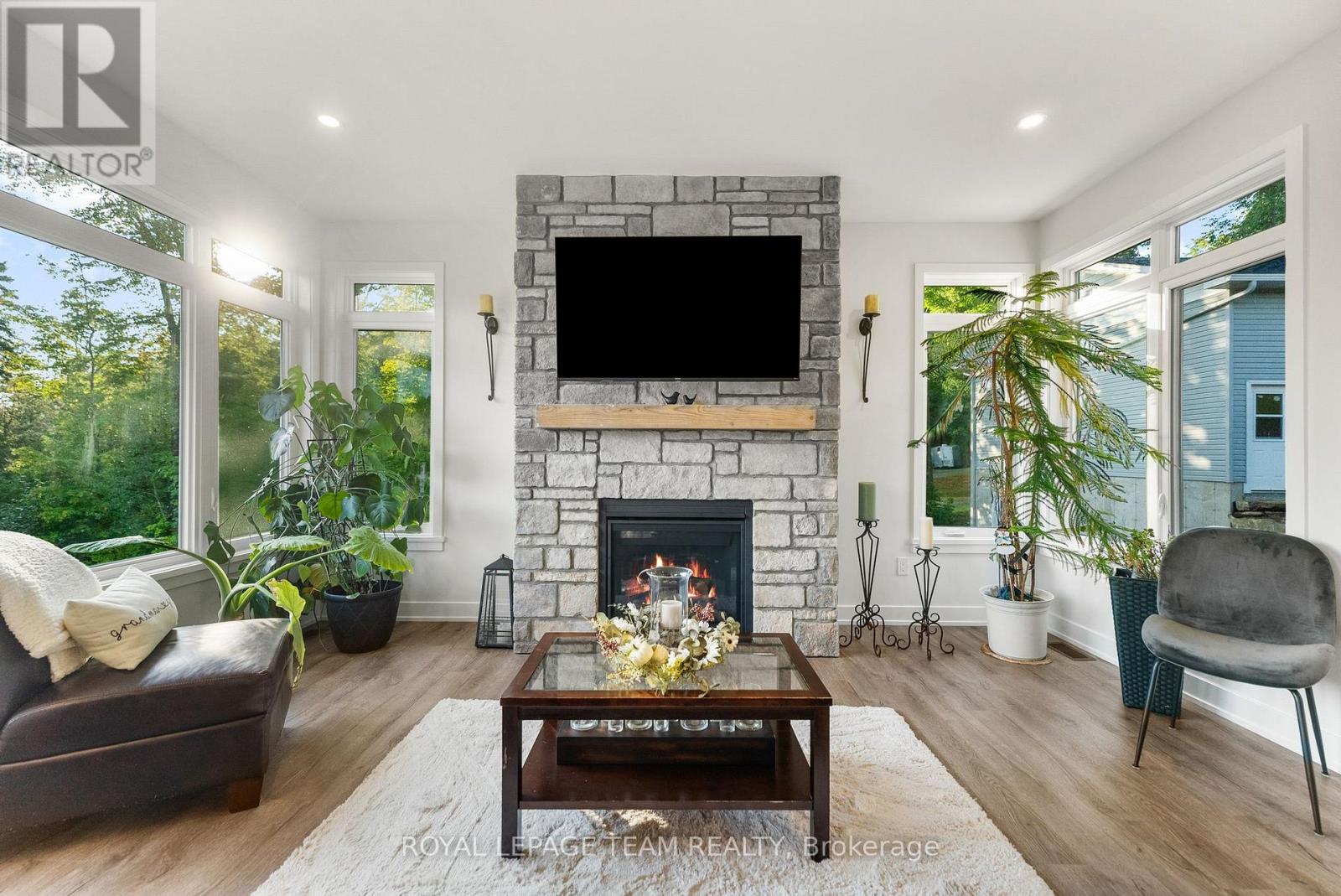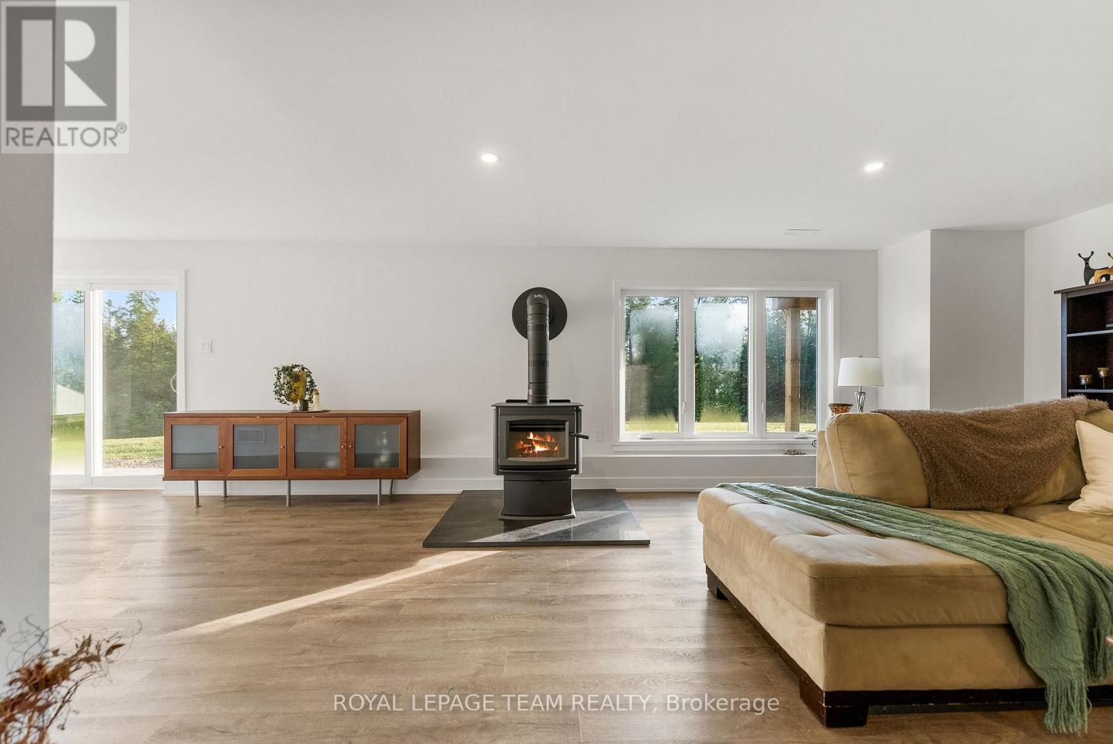 Located in the desirable community of Calabogie, just steps from the Calabogie Highlands Golf Course and a short drive to the Calabogie Motorsports Park, this home is a car enthusiast's dream! This immaculate 3 bed, 2 bath bungalow was built in 2023 by Mackie Homes and features high-end finishes throughout. The open-concept kitchen and dining area are highlighted by stunning quartz countertops and a floor-to-ceiling stone gas fireplace, creating a warm and inviting space to gather. The primary bedroom offers a luxurious ensuite and a walk in closet. 2 additional large bedrooms are offered on the main floor as well as main floor laundry station located centrally to the bedrooms. The fully finished basement offers additional living space complete with a wood-burning fireplace and a walk-out with access to the backyard( no rear neighbours) . In addition to the attached garage, this property boasts a newly built 3-car detached garage featuring 10 ft high doors and a 9000 lb hoist (included in the sale)perfect for working on vehicles or storing large equipment. Below the 3 car garage is access to a lower-level garage bay, ideal for storing recreational toys, tools, or lawn equipment. Enjoy the perfect balance of comfort, functionality, and lifestyle in one of Calabogie's most sought-after locations. Whether you are looking to spend more of your days at the golf course, the race track, the beaches, hiking the incredible trails, ATVing or skiing- Calabogie's 4 seasons of recreational fun provides opportunities for everyone! (id:64974)