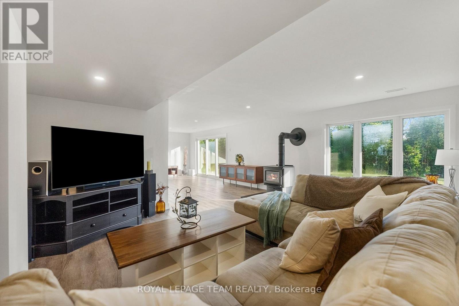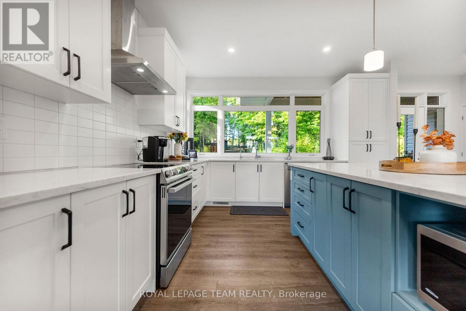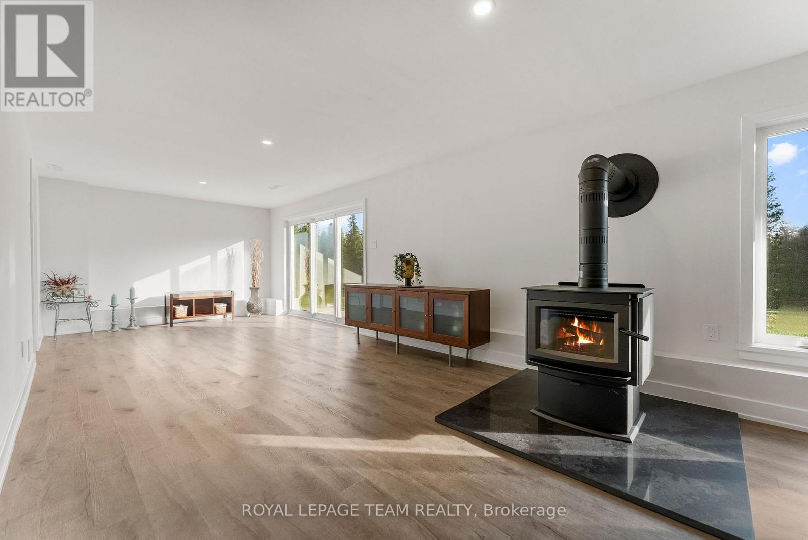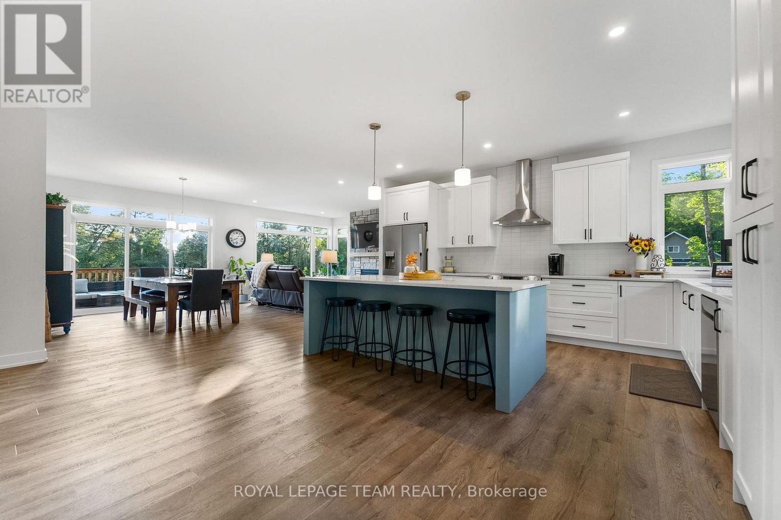 Located in the desirable community of Calabogie, just steps from the Calabogie Highlands Golf Course and a short drive to the Calabogie Motorsports Park, this home is a car enthusiast's dream! This immaculate 3 bed, 2 bath bungalow was built in 2023 by Mackie Homes and features high-end finishes throughout. The open-concept kitchen and dining area are highlighted by stunning quartz countertops and a floor-to-ceiling stone gas fireplace, creating a warm and inviting space to gather. The primary bedroom offers a luxurious ensuite and a walk in closet. 2 additional large bedrooms are offered on the main floor as well as main floor laundry station located centrally to the bedrooms. The fully finished basement offers additional living space complete with a wood-burning fireplace and a walk-out with access to the backyard( no rear neighbours) . In addition to the attached garage, this property boasts a newly built 3-car detached garage featuring 10 ft high doors and a 9000 lb hoist (included in the sale)perfect for working on vehicles or storing large equipment. Below the 3 car garage is access to a lower-level garage bay, ideal for storing recreational toys, tools, or lawn equipment. Enjoy the perfect balance of comfort, functionality, and lifestyle in one of Calabogie's most sought-after locations. Whether you are looking to spend more of your days at the golf course, the race track, the beaches, hiking the incredible trails, ATVing or skiing- Calabogie's 4 seasons of recreational fun provides opportunities for everyone! (id:64974)
