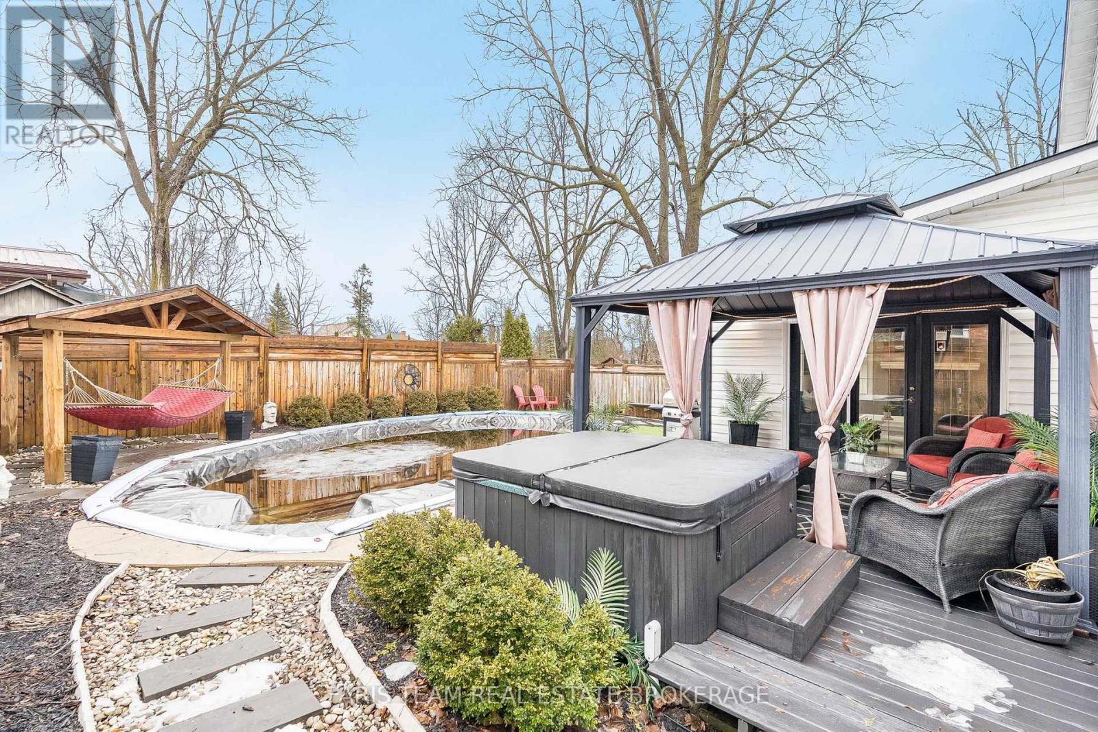 Top 5 Reasons You Will Love This Home: 1) Step into your own private backyard retreat where every detail is designed for enjoyment, from the deck with ample seating space to the relaxing hot tub, a charming gazebo for shaded gatherings, and a sparkling inground pool that creates the perfect setting for unforgettable summer days and evenings, plus additional updates include new pool liner, pool cover, and brand new hot tub cover 2) Designed with entertaining in mind, the home delivers a seamless flow from the open-concept eat-in kitchen into the warm and inviting family room with a walkout to the backyard, creating a natural connection between indoor and outdoor living that's perfect for hosting everything from lively gatherings to quiet nights at home 3) Filled with natural light from overhead skylights, the main level showcases a stunning family room anchored by a cozy gas fireplace, with generously sized principal rooms that bring together comfort and charm in a way that feels both elevated and welcoming 4) With four spacious bedrooms, three well-appointed bathrooms, and a versatile lower level recreation room, the home hosts plenty of room for growing families, visiting guests, or the flexibility to create a dedicated home office, adapting effortlessly to today's lifestyle needs 5) Ideally located in Lindsay's desirable North Ward, this home is nestled in a quiet, family-friendly neighbourhood with convenient access to nearby parks, schools, and everyday amenities. 1,481 above grade sq.ft. plus a finished lower level. (id:64974)
