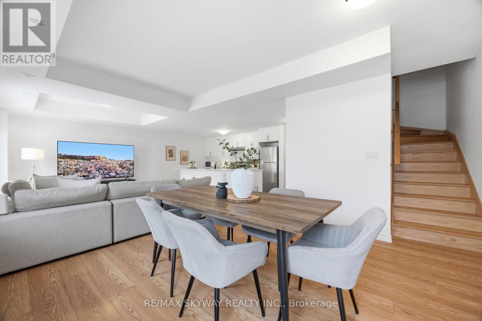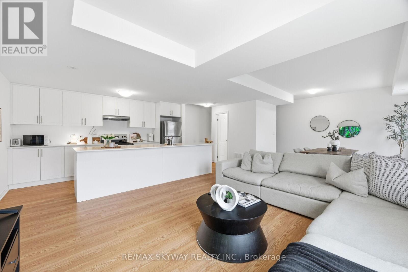 Welcome to this stunning 6-month-new executive 3-storey townhouse in the highly sought-after Southfields Village, Caledon. Offering approx. 1,690 sq ft as per builder's floor plan, this modern home features an elegant stone, brick & stucco elevation and an unbeatable location directly across from the Southfields Community Centre and skate park, and steps to all daily amenities. A spacious foyer with ceramic tiles leads to the bright open-concept great room combined with dining area, perfect for entertaining and everyday living. Walk out to an oversized balcony ideal for summer enjoyment. The modern kitchen boasts stainless steel appliances, ample cabinetry, a large centre island with breakfast bar, and generous counter space. A convenient powder room completes this level. Upstairs features a spacious primary bedroom with large window and 5-piece ensuite. Two additional well-sized bedrooms share an upgraded bathroom with frameless glass shower, and the second bedroom offers access to its own private balcony. A rare highlight is the fully private terrace for summers bbqs and gatherings, perfect for BBQs and outdoor gatherings. Includes 1-car garage plus 1 on driveway (2 total). Location is exceptional: directly across from Southfields Community Centre and skate park, steps to plaza with grocery stores, pharmacy, restaurants, and convenience stores. Walking distance to highly rated Southfields Village Public School, Bonnieglen Farm Park, access to Etobicoke Creek Trails, parks and pond. Close to the newly opened Mega Gym and conveniently located on a bus route, making commuting simple and accessible. (id:64974)