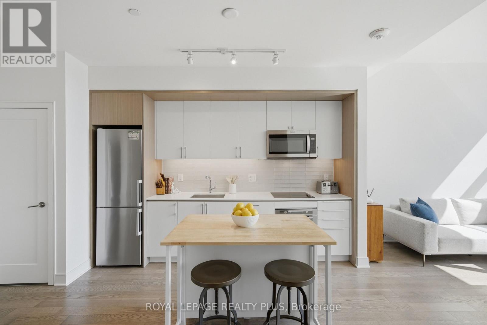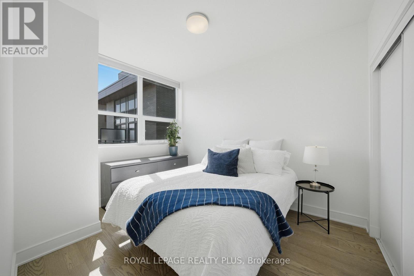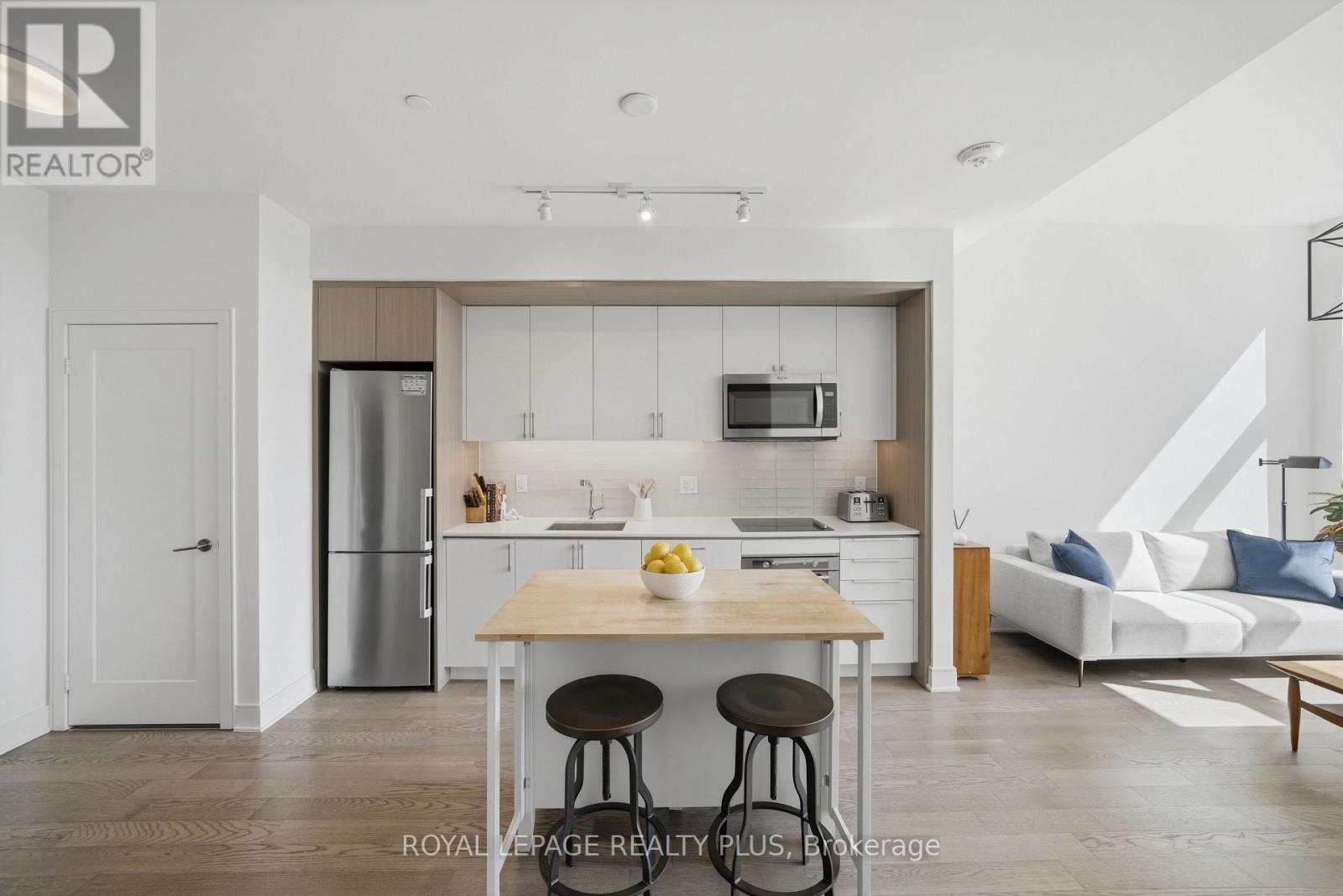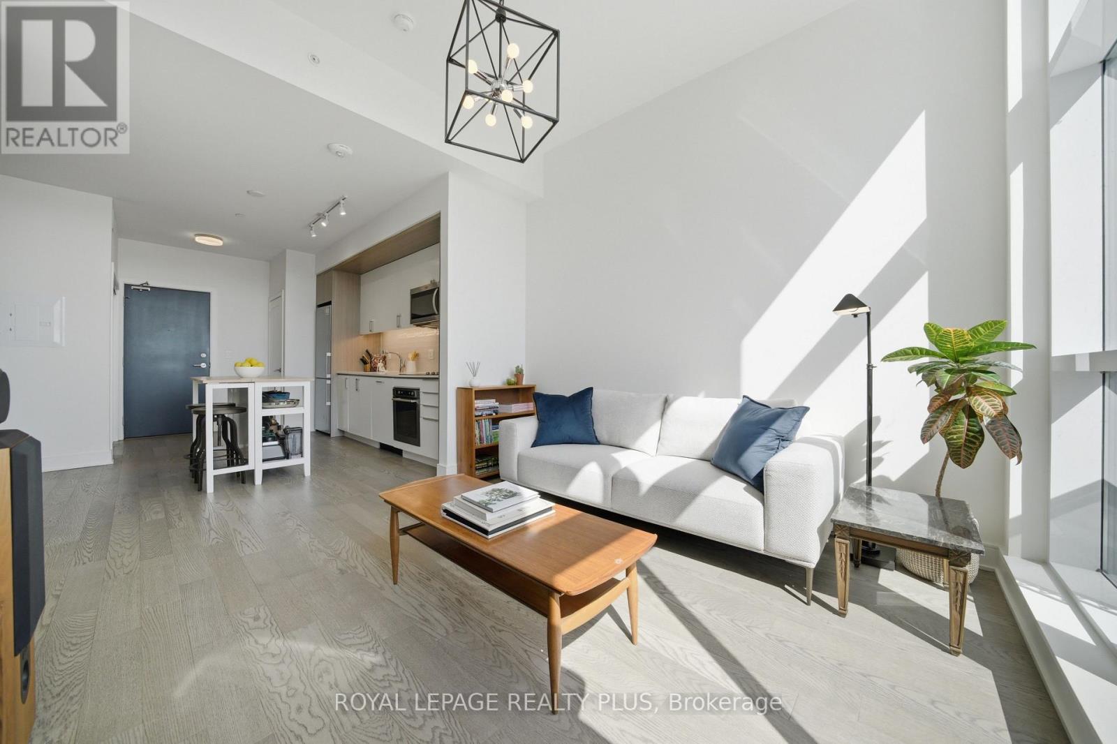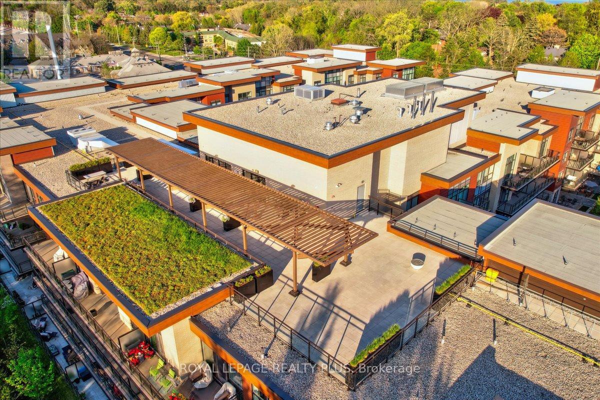 Welcome to penthouse living without the million-dollar price tag! Perched on the top floor of The Craftsman, this bright south-facing suite offers a rare opportunity to enjoy the privacy, natural light, and elevated feel of penthouse-level living at a far more accessible price point. Overlooking the quiet courtyard below, the space feels peaceful and tucked away, while soaring 12-foot ceilings in the living room create an openness that's hard to find in this price range. Inside, 5-inch engineered hardwood floors run throughout, complementing a clean, modern interior designed for both comfort and function. The kitchen is equipped with integrated stainless steel Whirlpool appliances and offers a practical layout that works just as well for everyday living as it does for entertaining. A separate den adds valuable flexibility for working from home, reading, or creating a dedicated space away from the main living area, and the suite is complemented by a modern 4-piece bath finished with premium Kohler fixtures. Positioned on the penthouse level with no neighbours above, this is the kind of home that lives differently from the typical condo, and it offers exceptional day-to-day convenience, located just steps from the elevator and close to the underground parking spot. The Craftsman is one of South Mississauga's most architecturally distinctive and community-oriented residences, known for its Frank Lloyd Wright-inspired design, beautifully landscaped courtyards, and premium amenities. Located in the heart of Clarkson Village, you're just a short walk to local cafés, shops, restaurants, and minutes from Clarkson GO for an easy commute downtown. Nearby highlights include Jack Darling Park, Rattray Marsh, waterfront trails, and countless neighbourhood amenities that make this one of the city's most desirable places to call home. Suite 440 is a rare chance to experience penthouse living in one of Clarkson's most sought-after buildings, for far less than you'd expect. (id:64974)