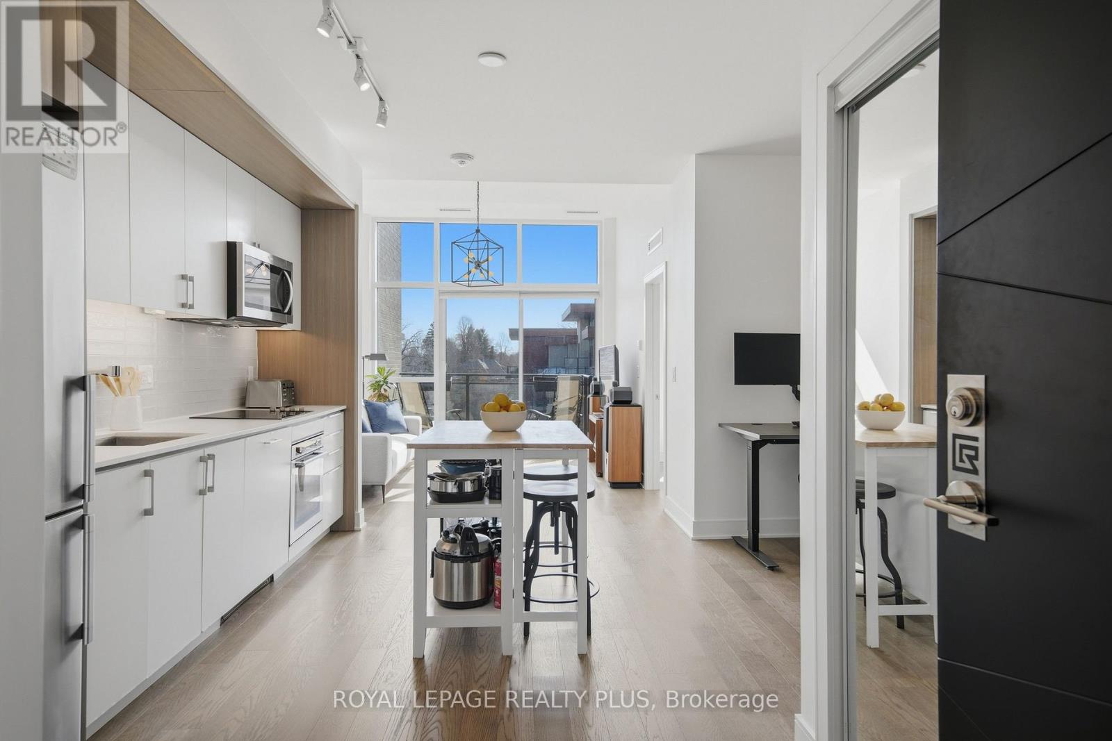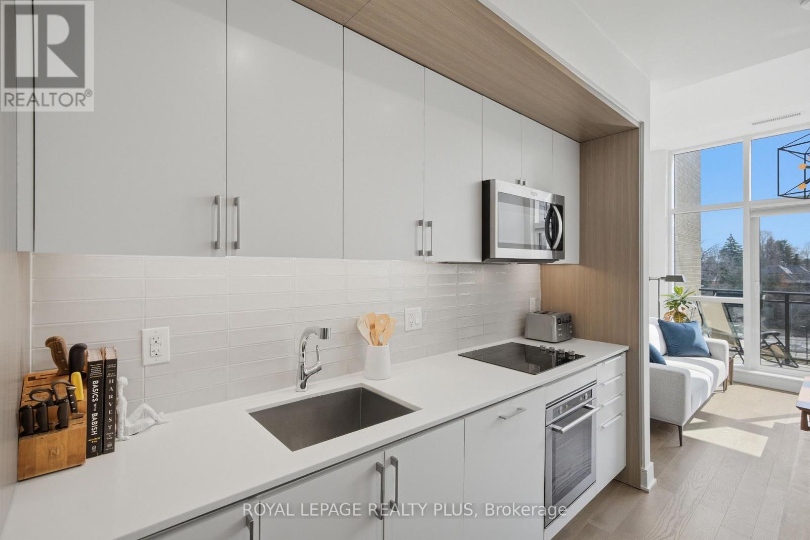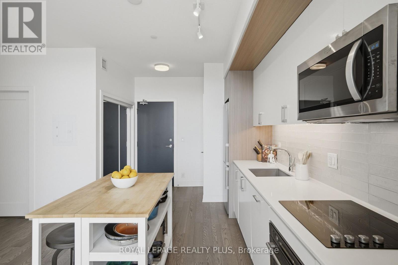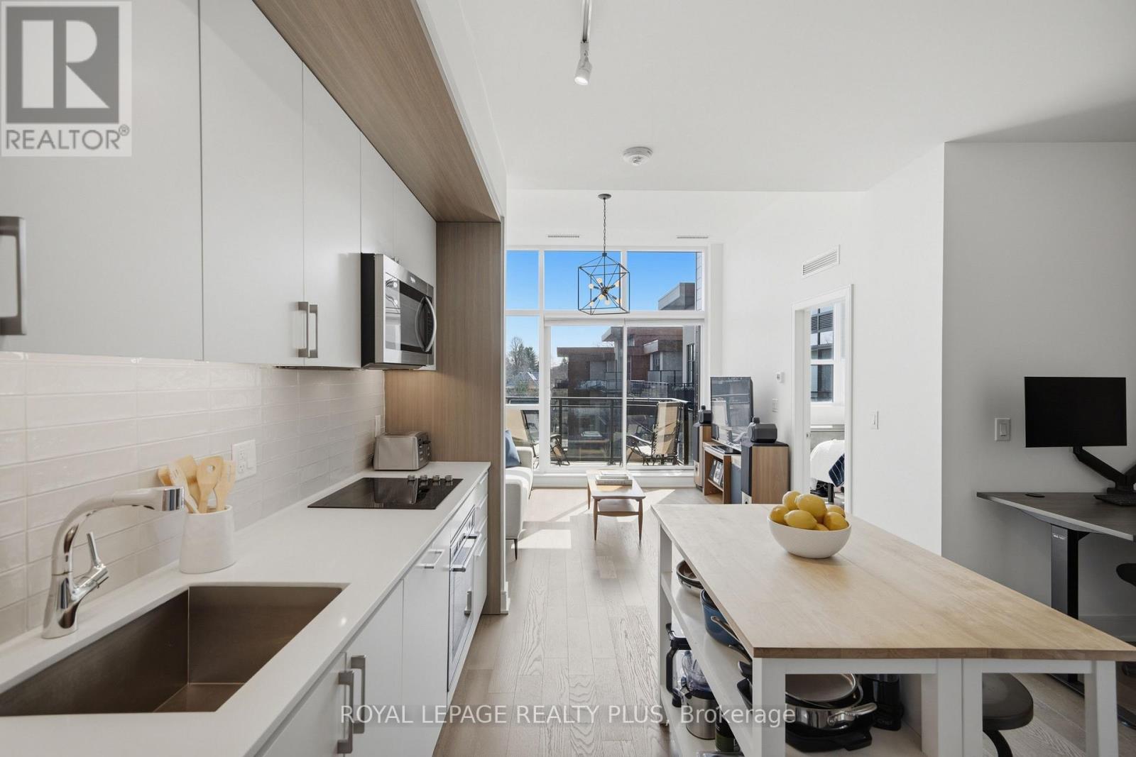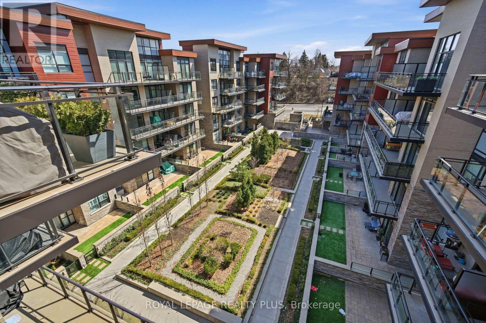 Welcome to penthouse living without the million-dollar price tag! Perched on the top floor of The Craftsman, this bright south-facing suite offers a rare opportunity to enjoy the privacy, natural light, and elevated feel of penthouse-level living at a far more accessible price point. Overlooking the quiet courtyard below, the space feels peaceful and tucked away, while soaring 12-foot ceilings in the living room create an openness that's hard to find in this price range. Inside, 5-inch engineered hardwood floors run throughout, complementing a clean, modern interior designed for both comfort and function. The kitchen is equipped with integrated stainless steel Whirlpool appliances and offers a practical layout that works just as well for everyday living as it does for entertaining. A separate den adds valuable flexibility for working from home, reading, or creating a dedicated space away from the main living area, and the suite is complemented by a modern 4-piece bath finished with premium Kohler fixtures. Positioned on the penthouse level with no neighbours above, this is the kind of home that lives differently from the typical condo, and it offers exceptional day-to-day convenience, located just steps from the elevator and close to the underground parking spot. The Craftsman is one of South Mississauga's most architecturally distinctive and community-oriented residences, known for its Frank Lloyd Wright-inspired design, beautifully landscaped courtyards, and premium amenities. Located in the heart of Clarkson Village, you're just a short walk to local cafés, shops, restaurants, and minutes from Clarkson GO for an easy commute downtown. Nearby highlights include Jack Darling Park, Rattray Marsh, waterfront trails, and countless neighbourhood amenities that make this one of the city's most desirable places to call home. Suite 440 is a rare chance to experience penthouse living in one of Clarkson's most sought-after buildings, for far less than you'd expect. (id:64974)