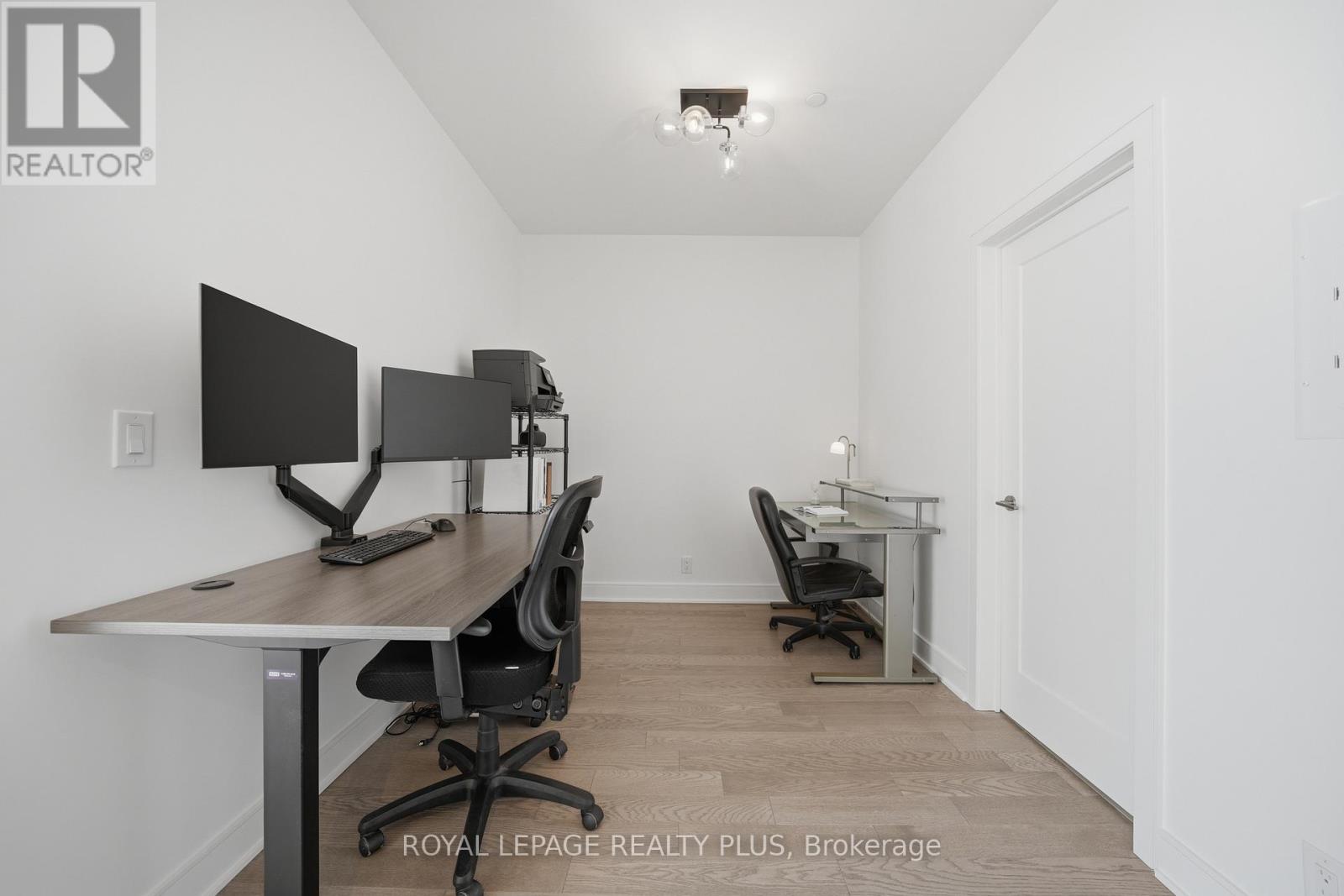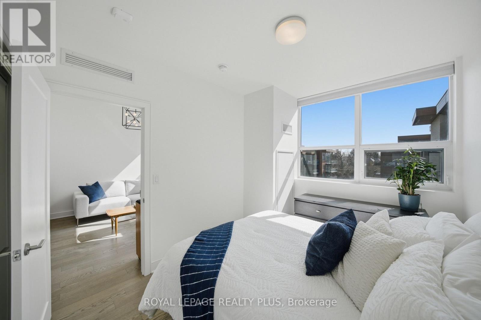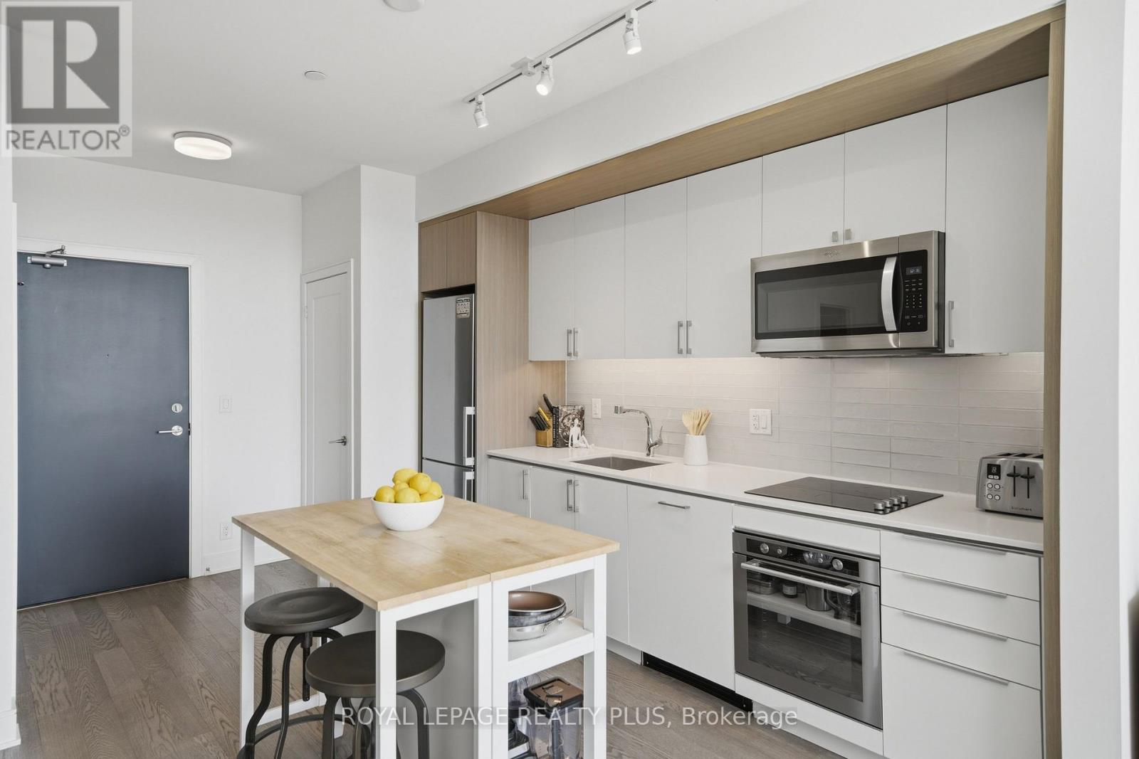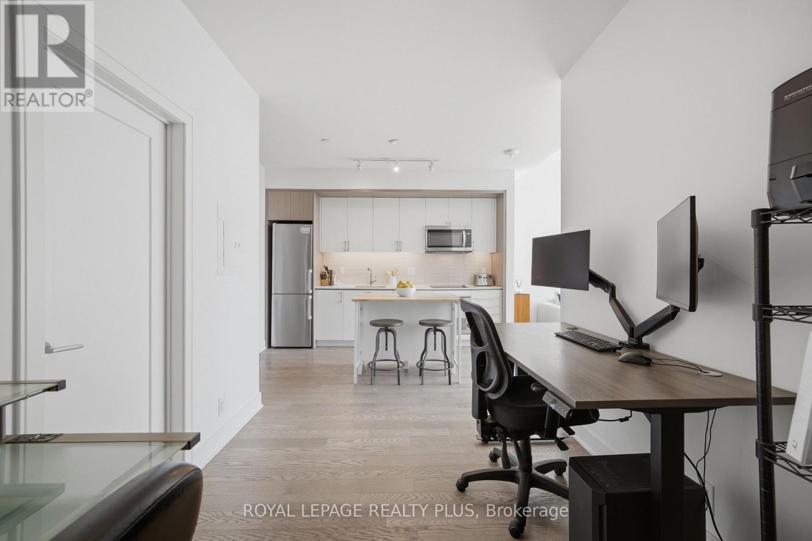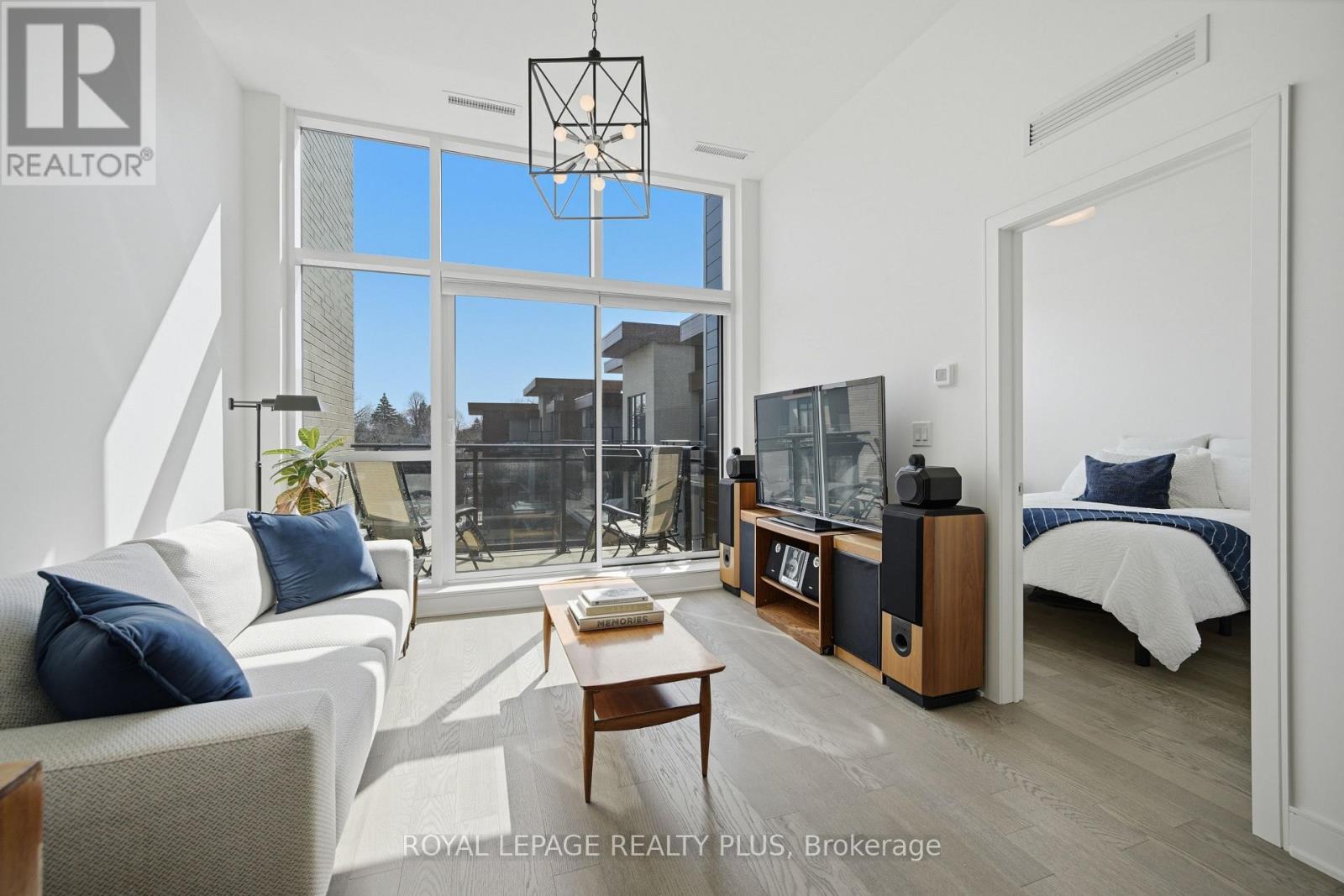 Welcome to penthouse living without the million-dollar price tag! Perched on the top floor of The Craftsman, this bright south-facing suite offers a rare opportunity to enjoy the privacy, natural light, and elevated feel of penthouse-level living at a far more accessible price point. Overlooking the quiet courtyard below, the space feels peaceful and tucked away, while soaring 12-foot ceilings in the living room create an openness that's hard to find in this price range. Inside, 5-inch engineered hardwood floors run throughout, complementing a clean, modern interior designed for both comfort and function. The kitchen is equipped with integrated stainless steel Whirlpool appliances and offers a practical layout that works just as well for everyday living as it does for entertaining. A separate den adds valuable flexibility for working from home, reading, or creating a dedicated space away from the main living area, and the suite is complemented by a modern 4-piece bath finished with premium Kohler fixtures. Positioned on the penthouse level with no neighbours above, this is the kind of home that lives differently from the typical condo, and it offers exceptional day-to-day convenience, located just steps from the elevator and close to the underground parking spot. The Craftsman is one of South Mississauga's most architecturally distinctive and community-oriented residences, known for its Frank Lloyd Wright-inspired design, beautifully landscaped courtyards, and premium amenities. Located in the heart of Clarkson Village, you're just a short walk to local cafés, shops, restaurants, and minutes from Clarkson GO for an easy commute downtown. Nearby highlights include Jack Darling Park, Rattray Marsh, waterfront trails, and countless neighbourhood amenities that make this one of the city's most desirable places to call home. Suite 440 is a rare chance to experience penthouse living in one of Clarkson's most sought-after buildings, for far less than you'd expect. (id:64974)