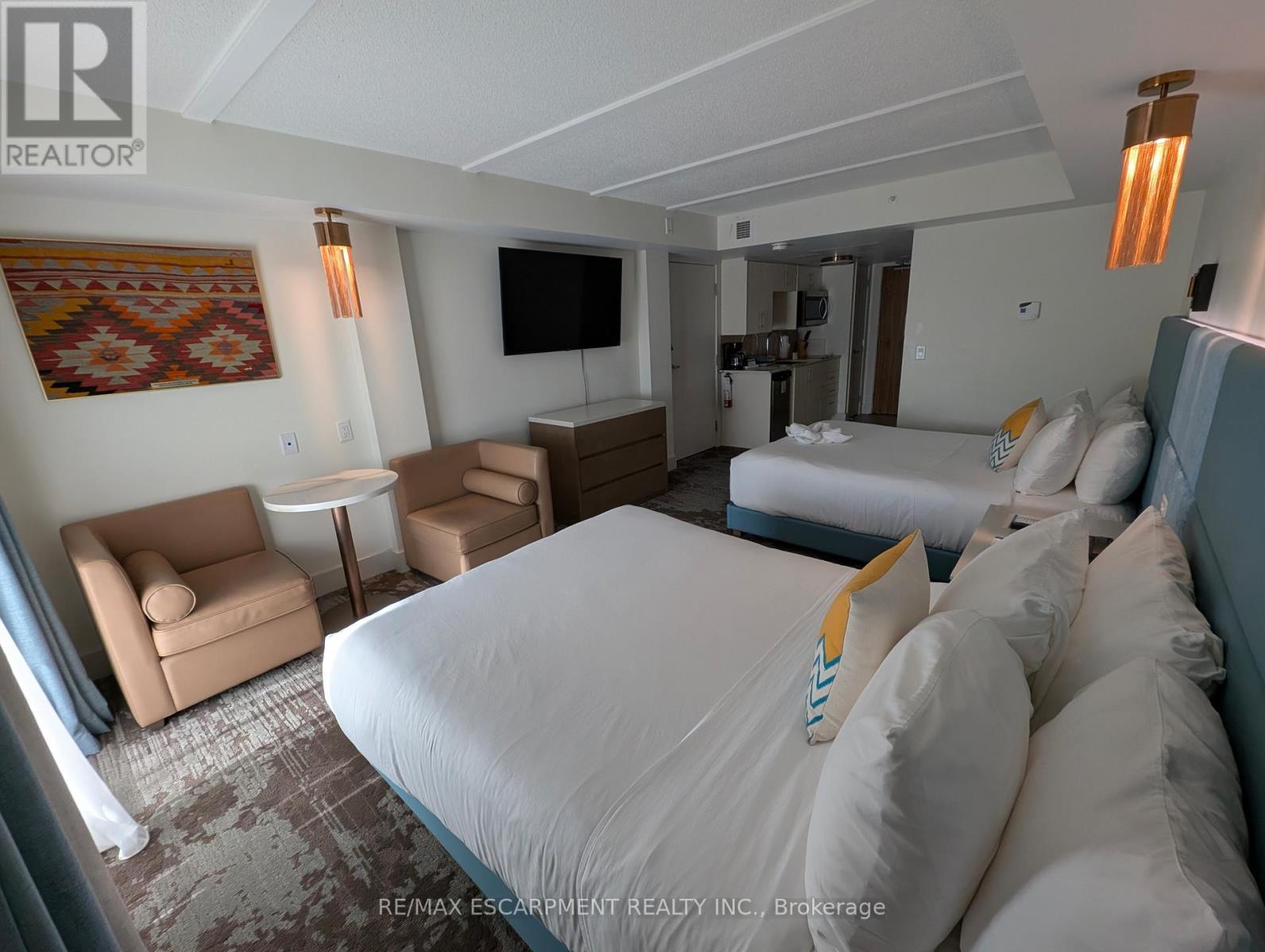 Start your Collingwood getaway each year with fixed Weeks 1, 2 and 14 in this spacious mountain-view resort suite at Living Water Resort & Spa.Suites 4403 & 4405 combine to offer approximately 1,200 sq ft in a versatile lock-off layout, allowing use as one large two-bedroom, two-bath retreat or two fully self-contained spaces. The primary suite features a king bedroom with private ensuite, full kitchen, in-suite laundry and comfortable living area, while the adjoining studio includes two queen beds, kitchenette and its own balcony access. Ideal for hosting guests or flexible use. Unused weeks may be placed into the resort rental pool or exchanged within the ownership program, offering flexibility year to year. Ownership is fully managed by the resort for a convenient, maintenance-free experience. The 2026 annual fee is $3,277.61 and includes property taxes, utilities, insurance, maintenance and management. Enjoy on-site amenities including pool facilities, spa services, waterfront dining, marina access and easy proximity to downtown Collingwood, Blue Mountain, trails, beaches and Georgian Bay. A practical way to secure consistent annual vacation time in one of Collingwood's premier waterfront resort locations. (id:64974)