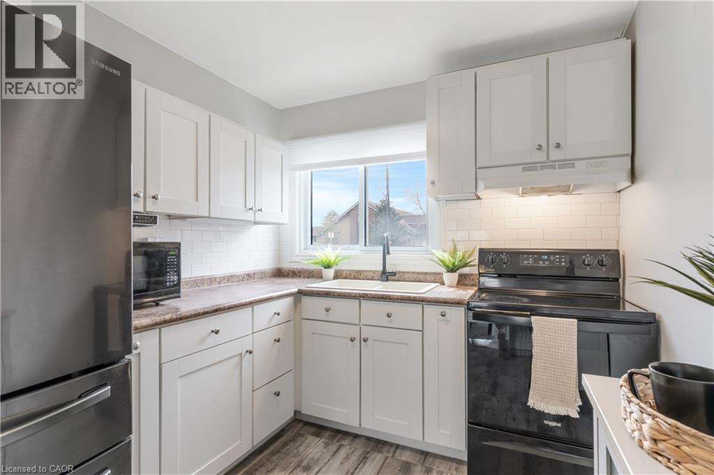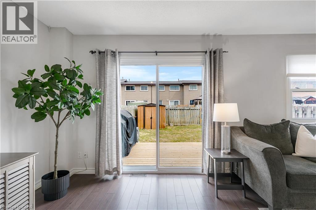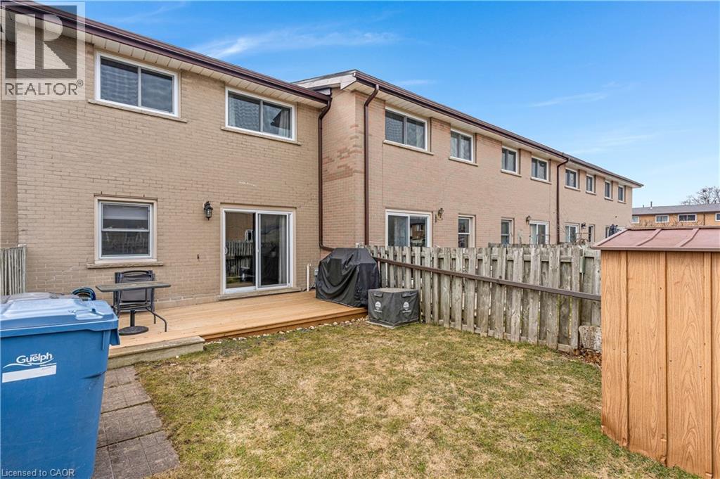 Welcome to this beautifully updated 3-bedroom, 2-bathroom townhome located in Guelph’s desirable north end. This move-in ready home has seen numerous recent upgrades including fresh paint (2026), finished basement (2026), updated laminate flooring, newer windows and doors (2022), furnace (2021), fridge (2023), washer and dryer (2023), roof (2024), and a new deck (2025). The finished basement provides additional living space perfect for a rec room, home office, or gym. Conveniently located close to schools, parks, shopping, public transit, and major commuter routes. Condo fees include cable and internet with Rogers, adding extra value and convenience. Ideal for first-time buyers, families, or investors. (id:64974)