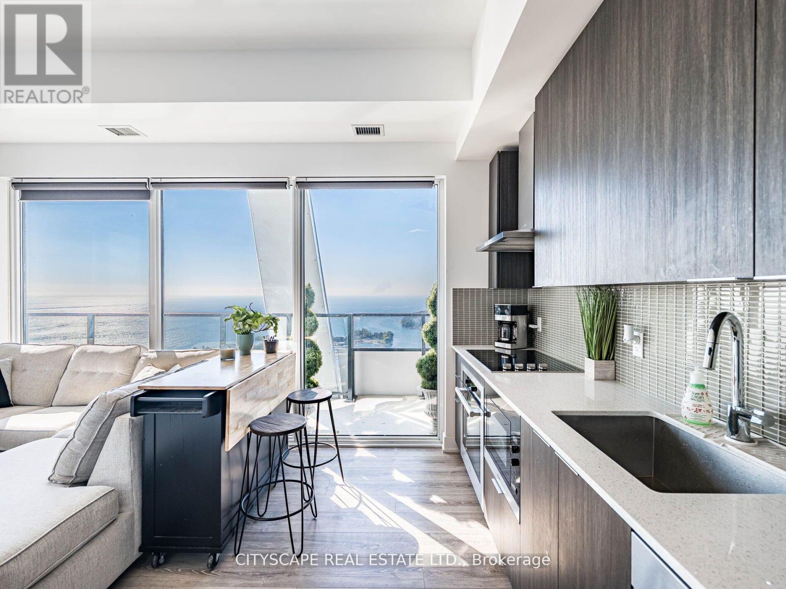 Welcome to Unit 4410 at Eau Du Soleil - a stunning 2 Bed, 2 Bath corner suite with breathtaking views of Lake Ontario, the Toronto Skyline, and CN Tower. Enjoy floor-to-ceiling windows, soaring ceilings, and a bright, open-concept layout designed to maximize natural light and the unmatched vistas. Modern kitchen with sleek finishes and built-in appliances flows into a spacious living/dining area and walk-out to your private balcony in the sky. Primary bedroom features large windows, closet, and a spa-like ensuite.Includes 1 parking, 1 locker, bike storage, a private cigar humidor locker & wine locker - rare and premium extras. Residents on the 44th floor and above enjoy exclusive access to a private party room/sky lounge with even more incredible views.Building offers 5-star amenities: saltwater pool, full gym, yoga studio, rooftop terrace, guest suites, 24-hr concierge & more. Steps to waterfront trails, parks, TTC, and minutes to downtown.Luxury Living Above the Clouds - This View Will Never Be Obstructed! (id:64974)