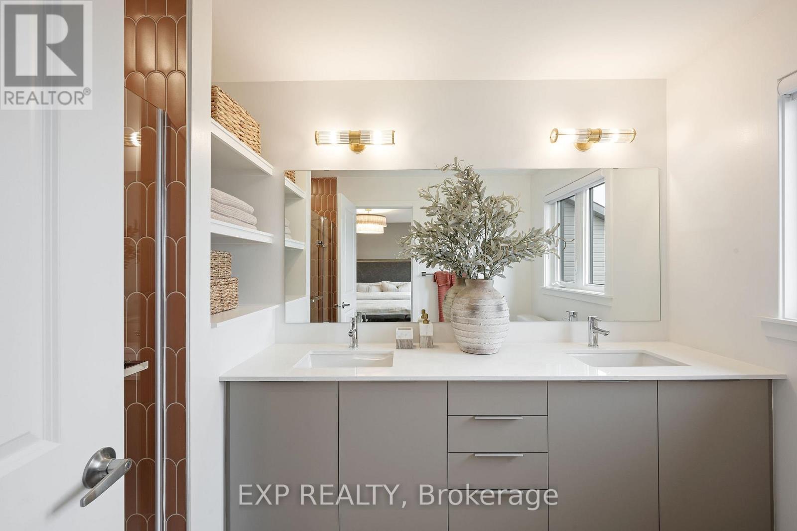 Welcome to this stunning brand-new 3-bedroom luxury townhome located on a quiet cul-de-sac in a fully established neighbourhood in Riverside South ( no ongoing construction). With 9ft ceilings on the main floor, this home showcases high-end finishes throughout, including upgraded hardwood flooring on the main level, smooth ceilings, pot lights, and a large window at the back of the house to allow loads of natural light to flow into the home. The gourmet kitchen features upgraded quartz countertops, sleek tile backsplash, brand-new luxury stainless steel appliances, and a large island with an extended breakfast bar. For added convenience and organization, there is a large walk-in pantry off the kitchen with shelving. Upstairs, you'll find a generously sized primary bedroom, complete with a walk-in closet and a serene primary ensuite with a double-sink vanity, quartz countertops, a walk-in shower, and built-in shelving. All bathrooms feature upgraded tile floors and upgraded quartz counters for a consistent, upscale look. The staircase at the back of the house leads to a large, finished family room in the basement, which provides ample extra living space for movies, games, or quiet relaxation. With the modern linear electric fireplace, there is added warmth to the space for winter days or nights. Additional features include central air conditioning, a humidifier on the furnace, and an HRV system for year-round comfort. Ideally located near schools, shopping, and transit, this home offers a perfect blend of style, comfort, and convenience in a completed, quiet neighbourhood. Interior photos are of a model home; finishings, paint, light fixtures, appliances & upgrades vary. (id:64974)