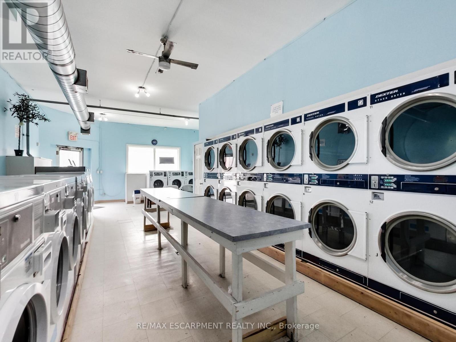 Great 3-unit investment property including an operating Laundromat business. Property located on the corner of Francis St and Wellington St N. Easy access to QEW via Nikola Tesla. Close to all amenities, West Harbour Go Station, Tim Hortons Field, Restaurants, Schools, Public Transit, Hospital, and Bennetto Community Centre. Property consists of income producing Laundromat approximately 1000 sq ft. as well as 2 residential apartments. Above is nicely finished 2 bedroom residential unit that is approximately 890 sq ft with an outside terrace. There is a second residential unit; a 410sf bachelor apartment on the ground floor. Full basement and parking at rear of the building. The Laundromat and equipment are included in the sale but it is a cash business with no financials. Both residential units are currently vacant to facilitate an easy sale. Be part of the Long-term revitalization of Hamilton's North End. (id:64974)