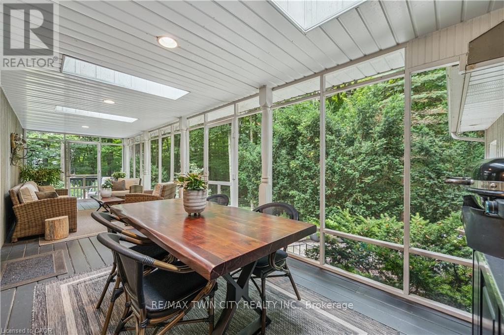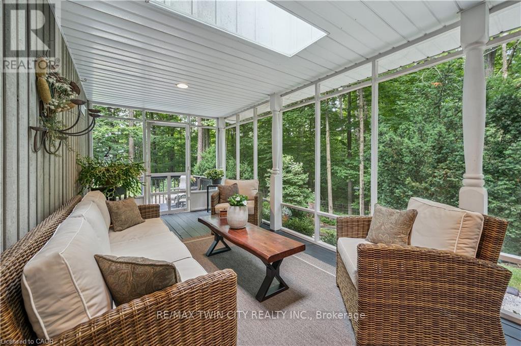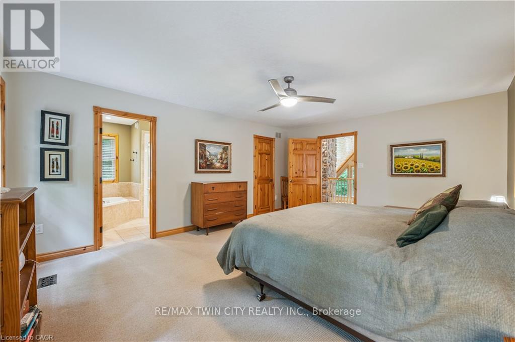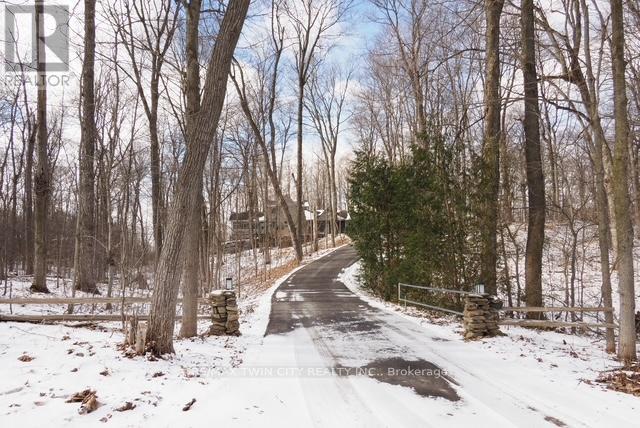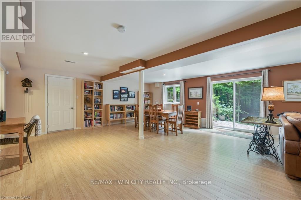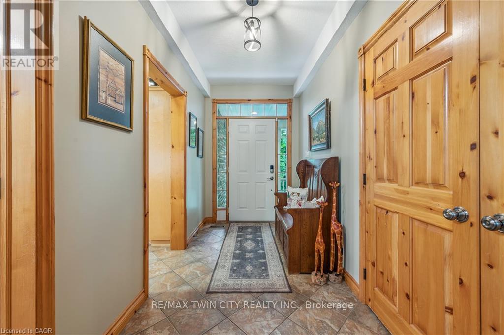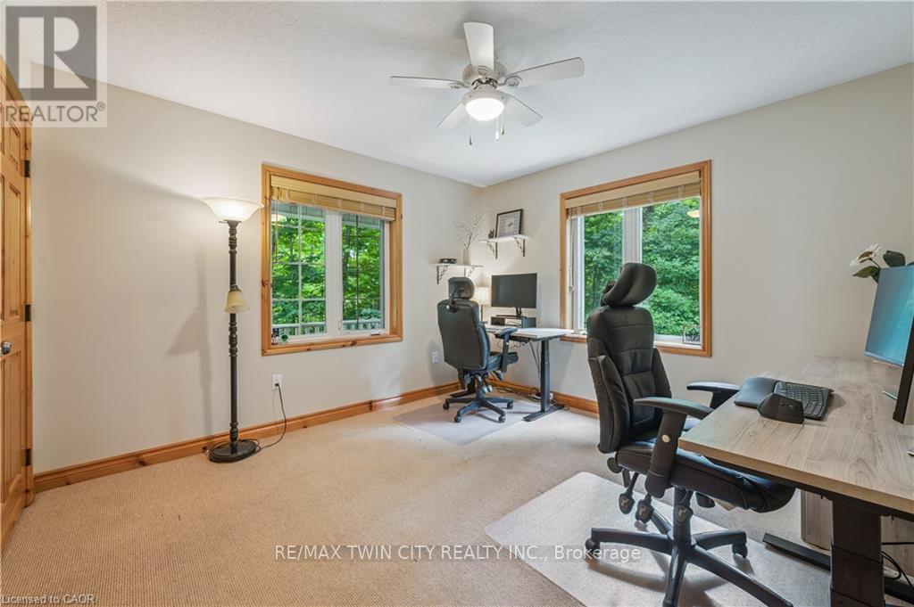 A Private Country Retreat ~ Welcome to your own piece of paradise-a stunning country estate set on nearly 1.4 acres of pristine land, where nature, luxury, and comfort converge. This exquisite home boasts a soaring 24-foot cathedral ceiling in the great room, framed by floor-to-ceiling windows that offer breathtaking views of the surrounding forest, manicured gardens, and a tranquil ornamental pond. Step outside to explore your private trails or relax in the peaceful sitting area - a nature lover's dream, right in your own backyard. Inside, timeless craftsmanship is on full display. Solid maple hardwood flooring, a dramatic floor-to-ceiling stone fireplace, and rich pine doors and trim create a warm and welcoming atmosphere throughout. The spacious kitchen is a chef's delight, featuring custom maple cabinetry, quartz countertops that seem to stretch endlessly, stainless steel appliances, and a propane stove. The open-concept layout flows beautifully from the kitchen into a formal dining room, which overlooks the great room and leads to a screened in California room with skylights - the perfect spot to enjoy morning coffee, meals or evening conversation, bug-free. Upstairs, the primary suite is a serene retreat with a generous walk-in closet, a four-piece ensuite, and a cozy loft with a sitting area and workspace. The main level includes two additional bedrooms and a full bathroom, plus a convenient laundry room and mudroom with access to an oversized two-car garage. A separate staircase leads to the fully finished walkout basement, featuring a massive recreation room with a wood-burning stove, a fourth bedroom, utility space, and a hobby room. Just a short drive to Guelph and with easy access to the 401 for commuters, this exceptional home offers the best of country living with the convenience of the city nearby. Experience the tranquility and fall in love with the lifestyle. (id:64974)