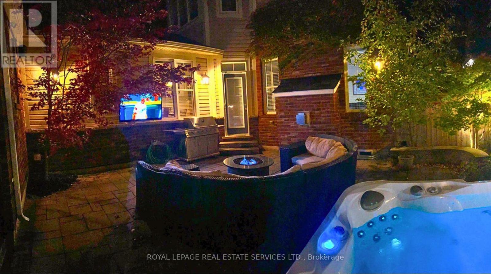 Luxurious Corner-Lot Home fronting a protected Forest & Escarpment views! Welcome to this elegant 2,291 sq ft Mattamy Energy-Star detached home in Milton's prestigious Scott neighborhood. Freshly painted top-to-bottom (2026), this open-concept layout features premium espresso maple hardwoods, upgraded overhead rounded archways, and colonial window inserts for abundant natural light. The gourmet eat-in kitchen boasts an expansive island, espresso cabinetry, Giallo Ornamental granite, and high-end stainless appliances. A stylish barn door leads to the laundry with storage-lift Samsung appliances. Retreat to the primary suite featuring California Closets and a spa-like ensuite with an oversized glass shower. The private 20'x24' courtyard is a true sanctuary, framed by mature Silver Maples and Japanese Maples, featuring a 6-person Sunrise Hydro Massage Spa, 50,000 BTU gas firepit, 50" LG outdoor TV, and Yamaha speakers. The grounds offer incredible curb appeal with multi-zone timed landscape lighting, an interlocking path with stone benching, and a 3-zone digital sprinkler system. The ultimate heated double garage features a 50" Samsung Smart TV, workshop cabinetry, 240V service, and natural gas hookups. Additional highlights include a custom 8'x22' wired/vented shed, Nest thermostat, Trane AC, central vacuum, and a 4-camera Swann surveillance system. The unfinished basement offers oversized windows and a cold cellar. Keyless entry on all doors. Includes: all kitchen appliances, washer/dryer, courtyard & garage TVs, hot tub, fire pit, surveillance system, garage heater, and all wall mounts. Ideally located near trails and the Tremaine overpass, this home offers unparalleled sophistication and tranquility. (id:64974)