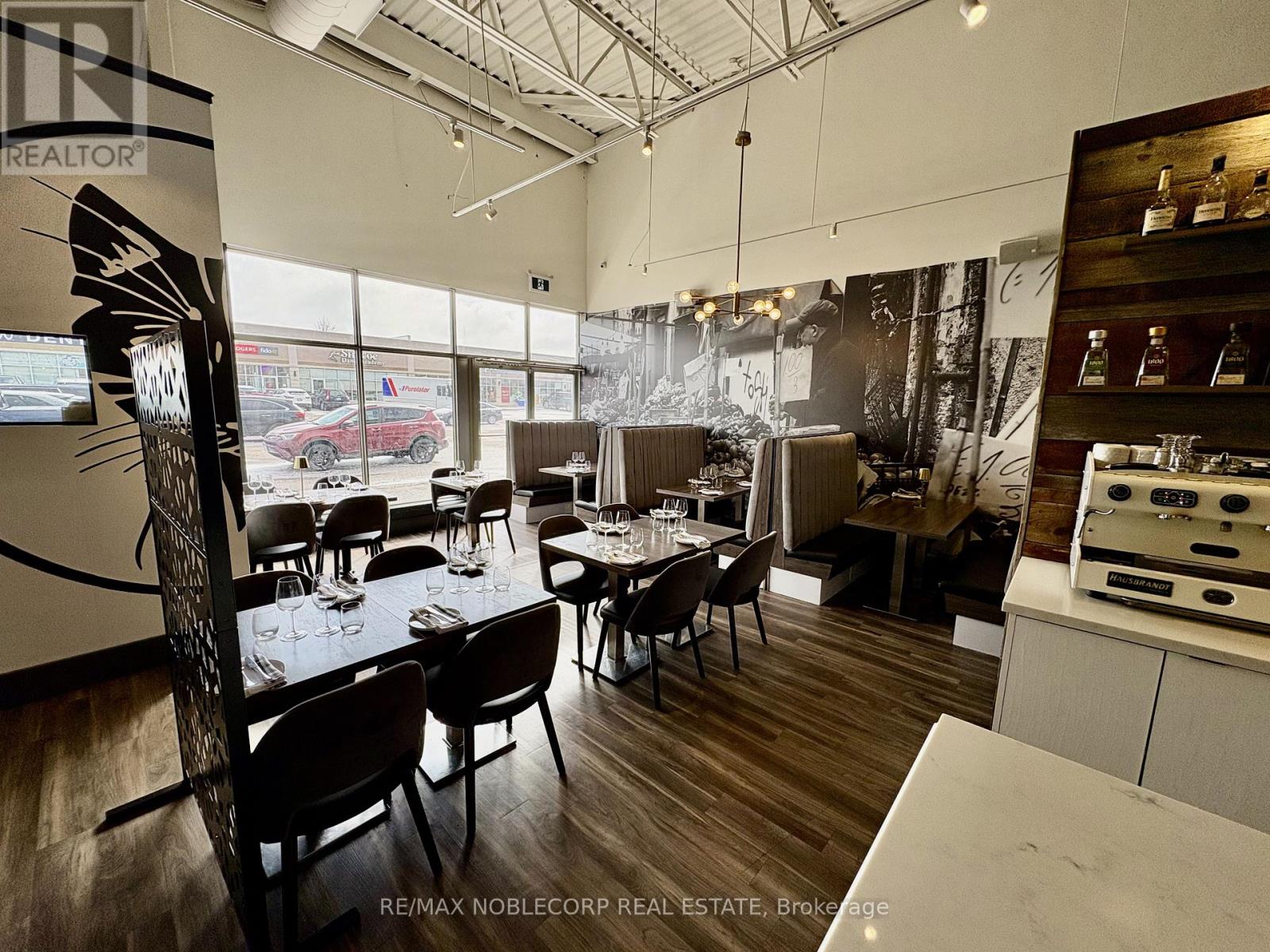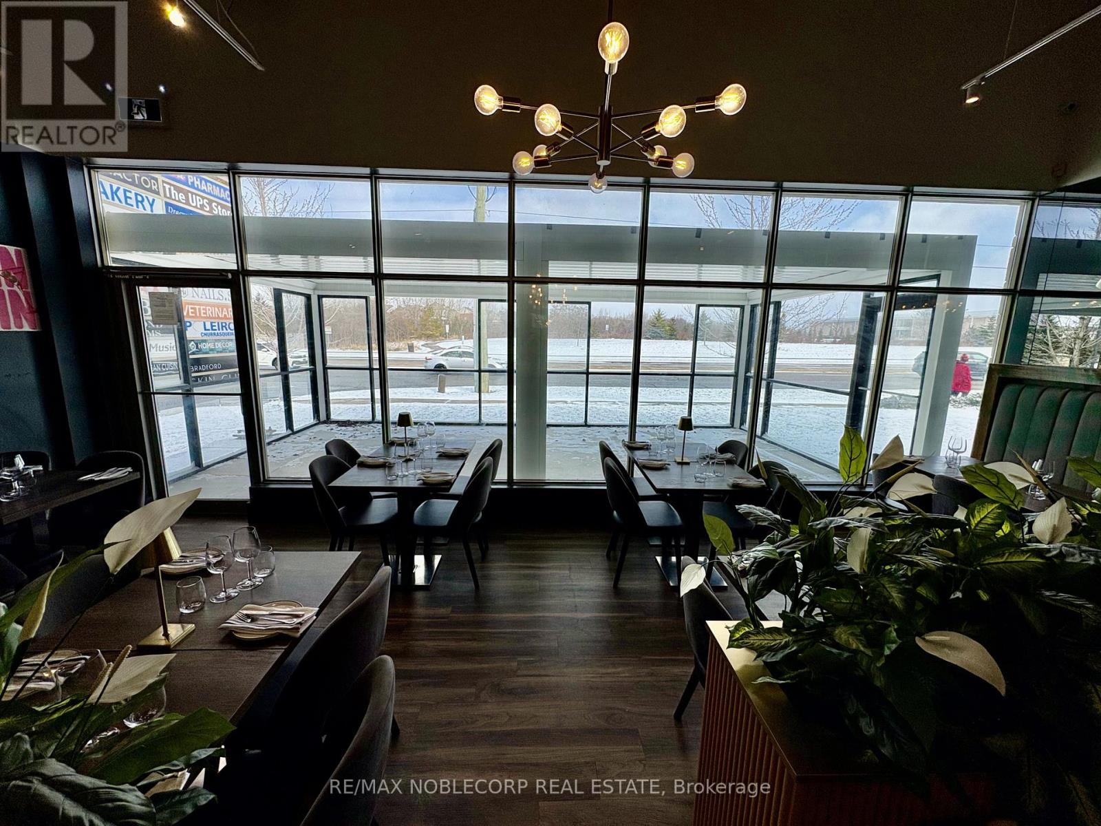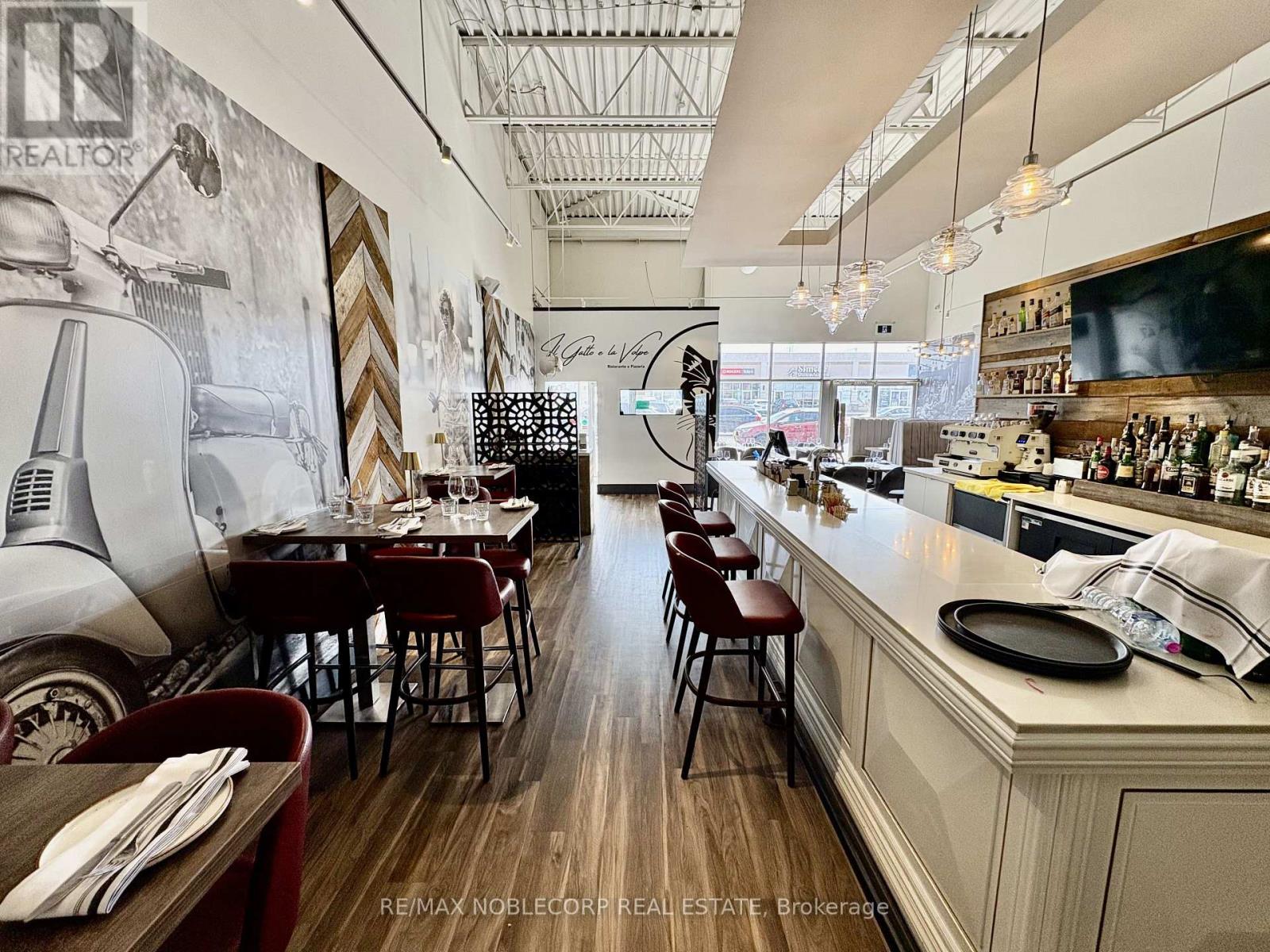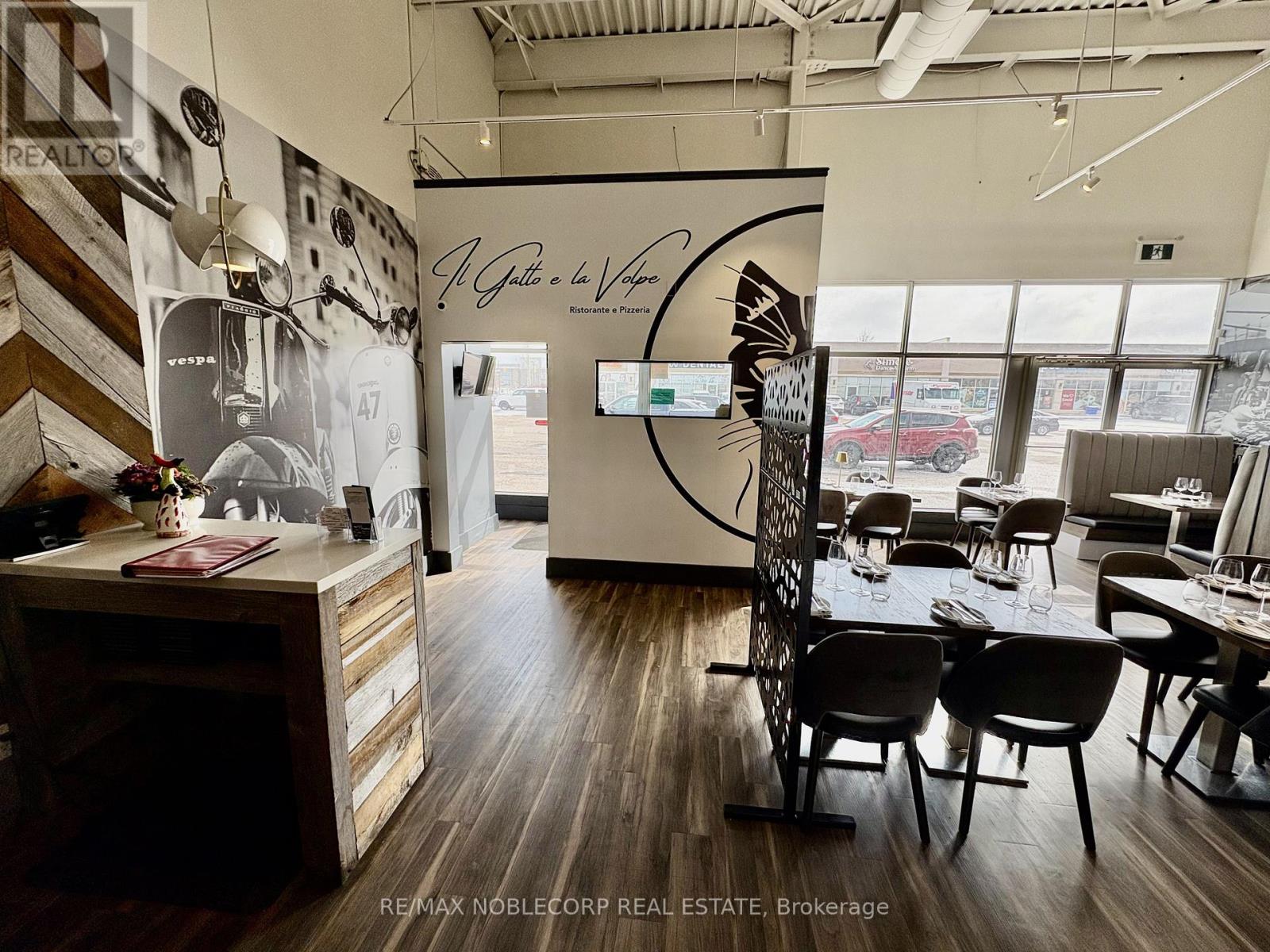 An exceptional opportunity to acquire a fully built-out, turn-key restaurant located in the heart of Bradford (Re-brand welcome). This Restaurant offers an upscale dining experience within a beautifully designed 3,475 sq. ft. unit, featuring a brand-new glass-enclosed patio that extends the dining area and provides an elegant, year-round space for guests. The restaurant is equipped with a top-of-the-line commercial-grade kitchen and includes approximately $700,000 in trade fixtures and equipment, showcasing the quality and attention to detail invested in the buildout. A liquor license is already in place, allowing a seamless transition for the new owner to continue operations immediately.The property is positioned along busy Holland Street, directly across from the new City Center development, providing high visibility and constant traffic flow. The plaza is anchored by established tenants, including The Beer Store, Pet Valu, Hakim Optical, Rogers, and Pizzaville, ensuring strong foot traffic and consistent exposure. The location also offers ample on-site parking and convenient access to Highway 400, making it a highly accessible and desirable destination for both local and regional clientele. The current lease has 4 years remaining with an additional 5-year option, providing long-term stability for the next operator. Rent is $11,000 per month, inclusive of TMI and HST. This is an excellent opportunity for an experienced restaurateur or investor seeking a high-quality, fully equipped restaurant in one of Bradford's most prominent commercial corridors. With premium fixtures, a modern enclosed patio, and a strong neighbouring tenant mix, Il Gatto e laVolpe represents a rare, ready-to-go restaurant acquisition with everything in place for immediate success. * TAXES ARE N/A* (id:64974)