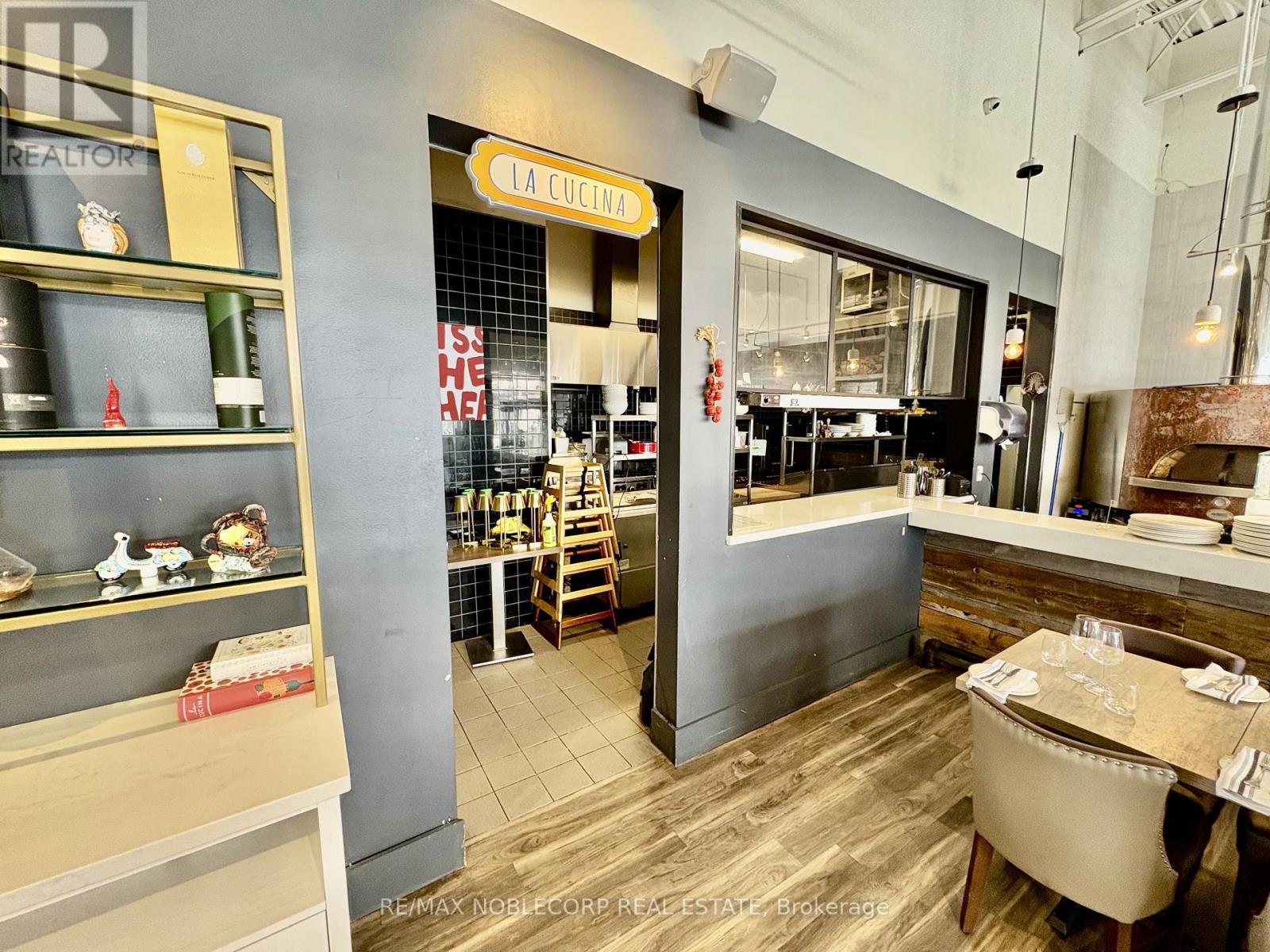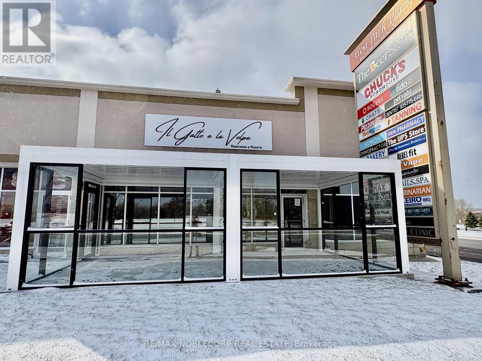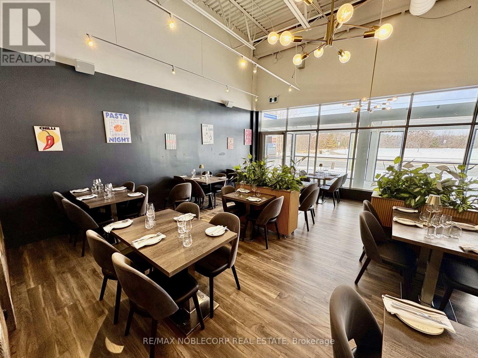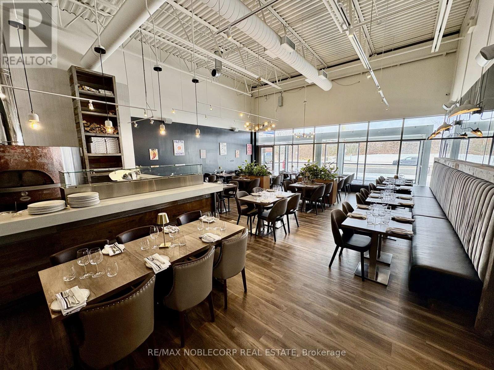 An exceptional opportunity to acquire a fully built-out, turn-key restaurant located in the heart of Bradford (Re-brand welcome). This Restaurant offers an upscale dining experience within a beautifully designed 3,475 sq. ft. unit, featuring a brand-new glass-enclosed patio that extends the dining area and provides an elegant, year-round space for guests. The restaurant is equipped with a top-of-the-line commercial-grade kitchen and includes approximately $700,000 in trade fixtures and equipment, showcasing the quality and attention to detail invested in the buildout. A liquor license is already in place, allowing a seamless transition for the new owner to continue operations immediately.The property is positioned along busy Holland Street, directly across from the new City Center development, providing high visibility and constant traffic flow. The plaza is anchored by established tenants, including The Beer Store, Pet Valu, Hakim Optical, Rogers, and Pizzaville, ensuring strong foot traffic and consistent exposure. The location also offers ample on-site parking and convenient access to Highway 400, making it a highly accessible and desirable destination for both local and regional clientele. The current lease has 4 years remaining with an additional 5-year option, providing long-term stability for the next operator. Rent is $11,000 per month, inclusive of TMI and HST. This is an excellent opportunity for an experienced restaurateur or investor seeking a high-quality, fully equipped restaurant in one of Bradford's most prominent commercial corridors. With premium fixtures, a modern enclosed patio, and a strong neighbouring tenant mix, Il Gatto e laVolpe represents a rare, ready-to-go restaurant acquisition with everything in place for immediate success. * TAXES ARE N/A* (id:64974)