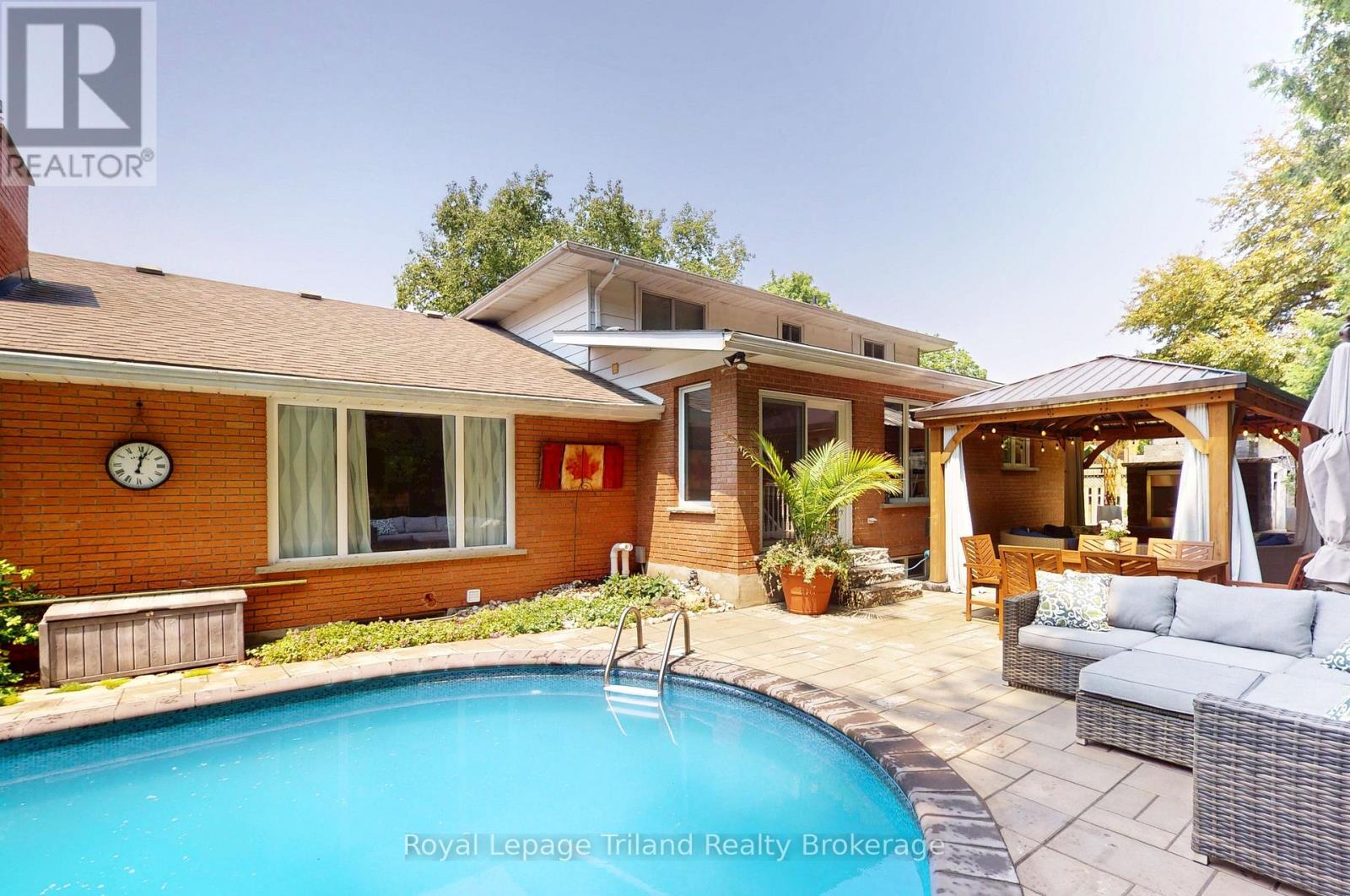 Welcome to tree-lined Lee Avenue, where this 2,500 sq.ft., 4-bedroom, 4-bathroom home with a double car garage offers the perfect blend of comfort and outdoor enjoyment. The fully fenced, private backyard is designed for unforgettable gatherings with family and friends, featuring a heated inground pool with trendy wooden cabana, a built-in outdoor gas fireplace,textured stone patio, and still plenty of green space for kids and pets to run free. For bigger adventures, Roth Park and scenic conservation trails are just steps away at the end of the road. Inside, the main floor features two inviting living areas, including a cozy family room with a gas fireplace overlooking the stunning backyard. The spacious dining room comfortably seats twelve, while terrace doors off the kitchen lead directly to the pool and patio for seamless indoor-outdoor living. The kitchen offers a panoramic view of the backyard, keeping you connected to all the action. Second living room on the main floor provides the ideal space for hobbies and hosting extra family. Upstairs, youll find four good sized bedrooms, including a generous primary suite complete with a walk-in shower ensuite.The fully finished basement adds even more living space with a large family room, a cozy den, a fourth bathroom, and abundant storage throughout. Stop by and explore this welcoming neighbourhood, just moments from parks, conservation trails, and with convenient access to KW-Cambridge & London. Come see this showstopper for yourself! (id:64974)