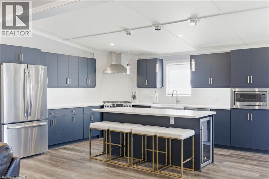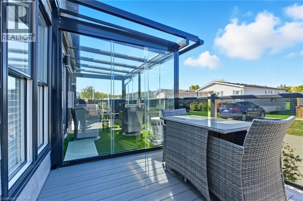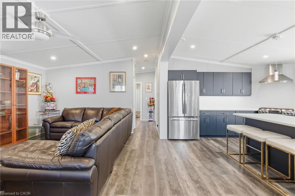 Welcome to 4449 Milburough Line, #28 Ash Street in Burlington — a beautifully maintained 2-bedroom, 2-bathroom home located in the quiet and friendly community of Lost Forest Park. Less than five years old, this modern home features an open-concept layout with an oversized two-tone custom kitchen island, perfect for entertaining. The spacious kitchen offers ample storage, while the separate dining area and built-in electric fireplace create a warm and inviting atmosphere. A dedicated office space provides privacy for work or hobbies, and pot lights throughout add a bright, contemporary touch. Step outside to a stunning Lumon-enclosed 3-season sunroom, perfect for relaxing, hosting guests, or stargazing on clear nights. Lost Forest Park offers peaceful surroundings and a strong sense of community, complete with amenities like an in-ground swimming pool, horseshoe pits, and beautifully landscaped grounds. Whether you’re looking to downsize or simply enjoy a tranquil lifestyle with the convenience of modern updates, this home offers the perfect year-round retreat. (id:64974)