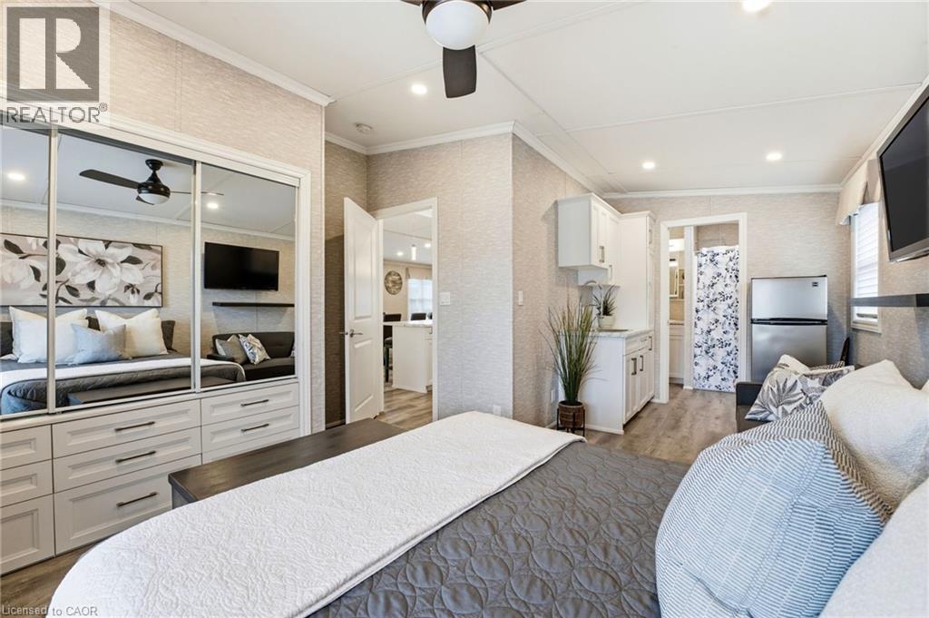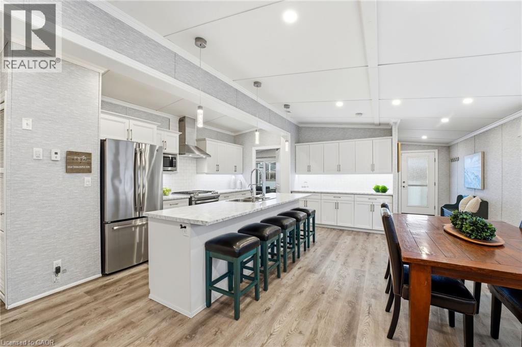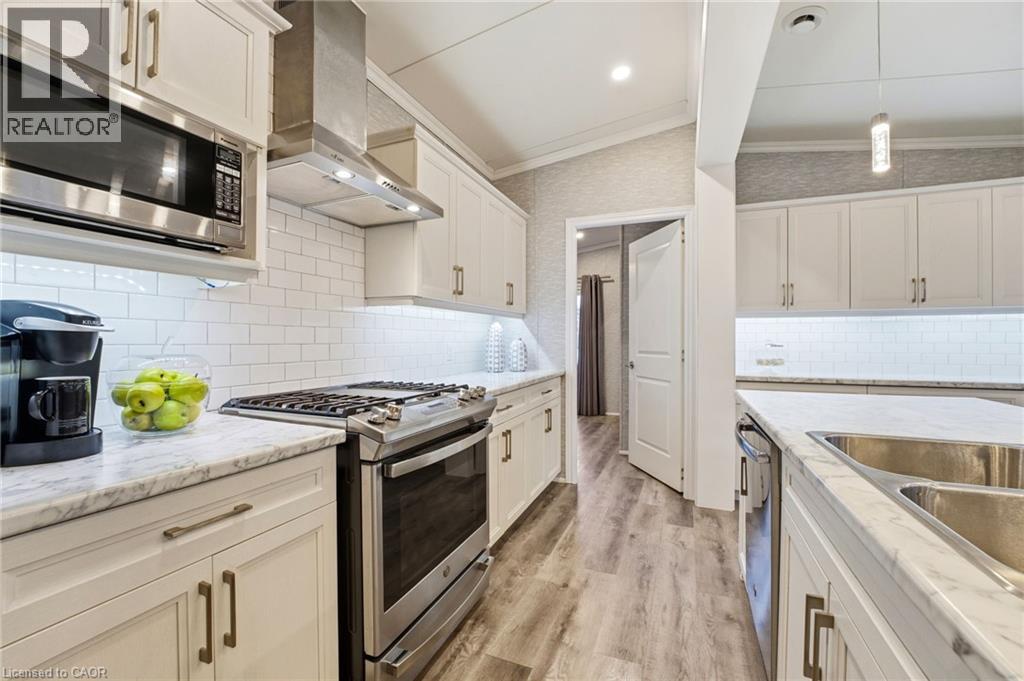 Discover one of Burlingtons best kept secrets, Lost Forest Park. An exclusive, gated community offering a truly unique, low maintenance lifestyle tailored for the most discerning buyers. Surrounded by nature and designed for privacy and comfort, this is a rare opportunity to experience refined living in a serene setting. This is the model you have been waiting for, showcasing a spacious, bright, open concept layout complimented by elegant finishes throughout. The designer like kitchen is crafted for entertaining and definitely the heart of the home. Featuring a 10 foot island, abundant and well appointed white cabinetry, stainless steel appliances, pendant lighting and a tasteful backsplash. This rare floor plan offers ample space for dining and gathering alike. Thoughtfully designed, offering two bedrooms, each with its own private ensuite. One bedroom provides in-law potential, complete with sitting room, sink, fridge and private bathroom. Completing the space an in-suite laundry room. Indulge on the expansive porch, a retreat perfect for savouring peaceful mornings or unwinding in the evening. Lost Forest Park presents a rare blend of tranquility and community in a resort inspired setting. Residents enjoy access to thoughtfully curated amenities including a seasonal pool, horseshoe pits, a community centre with activities and meticulously maintained grounds. Designed for comfort and ease, this enclave the opportunity to downsize gracefully or embrace a more maintenance free lifestyle. Conveniently located in North Burlington, minutes from Waterdown, shopping, trails, golf and highway access. (id:64974)
