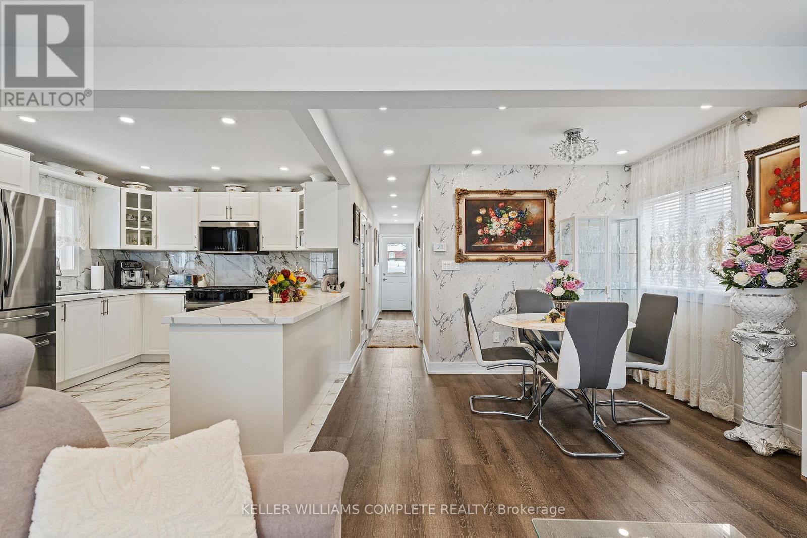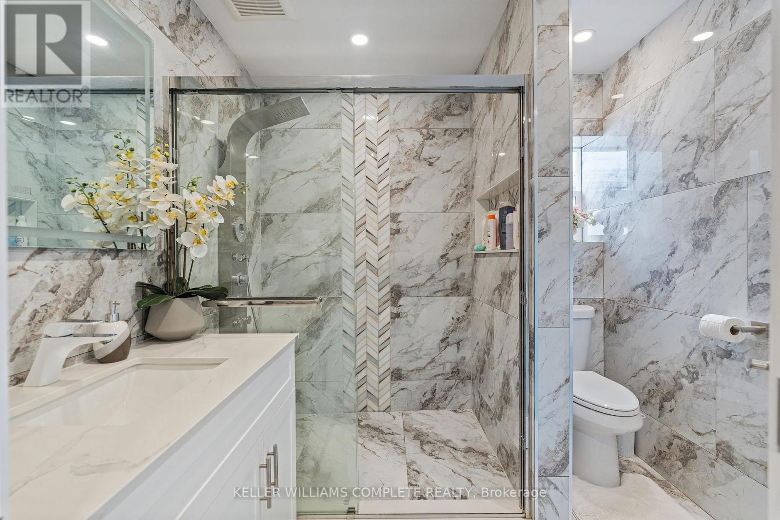 Step inside this fully renovated Niagara Falls bungalow and experience a perfect blend of modern style and comfort. The open-concept main level boasts bright living and dining space highlighted by a showpiece high-gloss media wall and smart LED lighting. Entertain with ease in the designer kitchen featuring polished marble-look tile flooring, quartz countertops, sleek cabinetry, and stainless steel appliances. The main bathroom feels like a spa with its contemporary fixtures and smart mirror, serving the two beautifully remodeled bedrooms on this level. The main level transitions seamlessly into a fully finished lower level - an entertainer's dream space. The expansive rec room invites movie nights and game days with its custom bar. A private guest suite (third bedroom) and a stylish second bathroom make this floor ideal for visitors or extended family. Outside, unwind or entertain in the large fenced backyard, complete with a patio area perfect for BBQs and summer gatherings. A private driveway provides convenient off-street parking. Situated on a quiet dead-end street, this home is minutes from schools, parks, shopping, and transit. Enjoy the best of both worlds - a tranquil neighbourhood setting with quick access to all the amenities and attractions Niagara Falls has to offer. This turn-key home delivers smart features, designer finishes, and an unbeatable lifestyle location! (70155382) (id:64974)