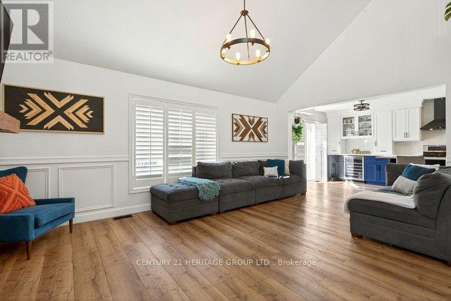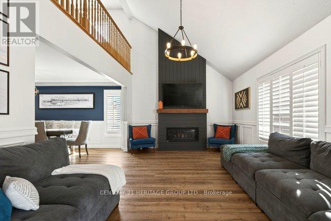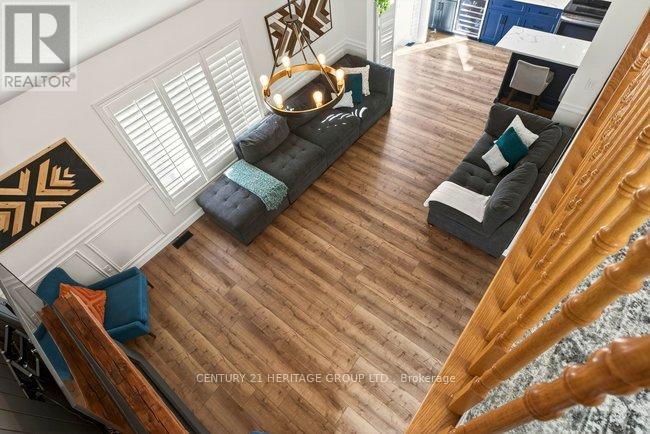 Sophisticated, spacious, and undeniably striking; this 4-bedroom, 2.5-bath residence is the kind of home that doesn't just impress, it lingers. From the moment you step inside, soaring vaulted ceilings and a sculptural helical staircase set the tone; equal parts architectural statement and everyday luxury. The dining room is effortlessly elegant, ready to host everything from intimate dinners to full-blown celebrations (yes, you'll actually use it).At the heart of the home, a chef-inspired, eat-in kitchen delivers both beauty and brilliance... designed for real life, but styled like a dream. Upstairs, a sunlit loft offers that coveted flex space for a home office, lounge, or your next "I deserve this" moment.Set on a rare 130' deep lot, this property brings the space, and then some, with parking for four, a double-car garage, central vacuum, and an unfinished basement that's basically a blank cheque for your future plans.Tucked into a location that truly delivers, you're minutes to parks, schools, shopping, highway access, and the new GO Train station-because convenience should look this good.This isn't just a move. It's an upgrade. (id:64974)