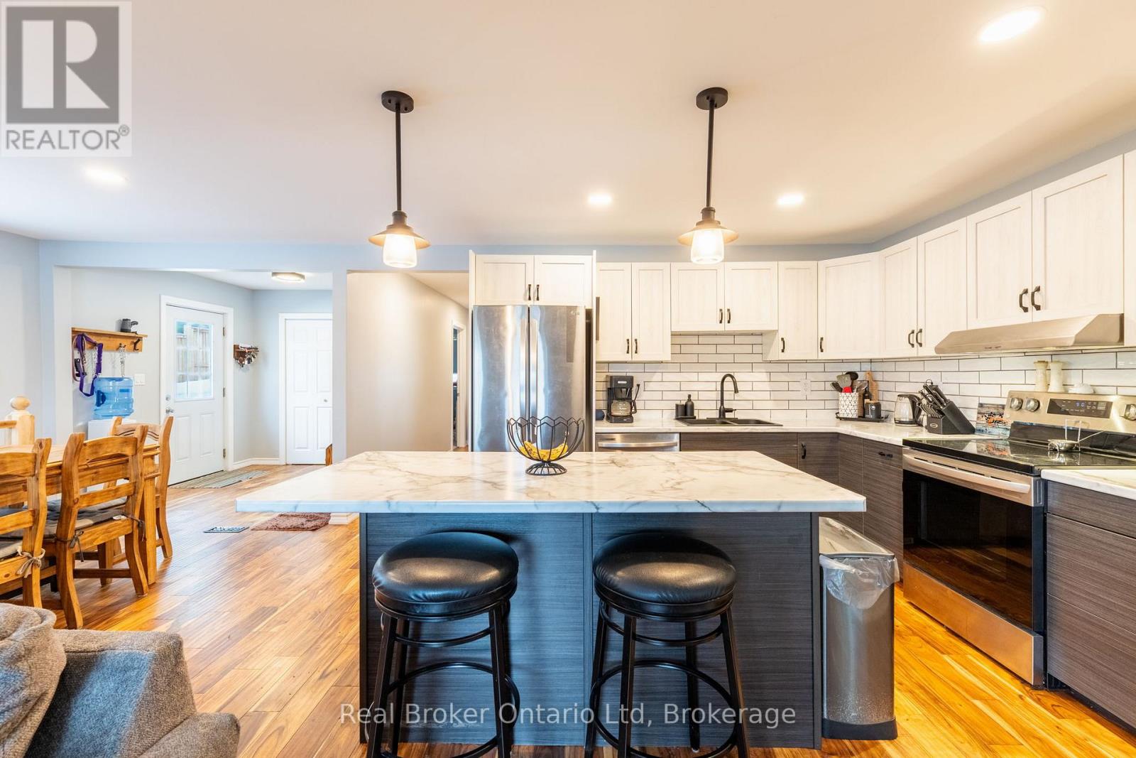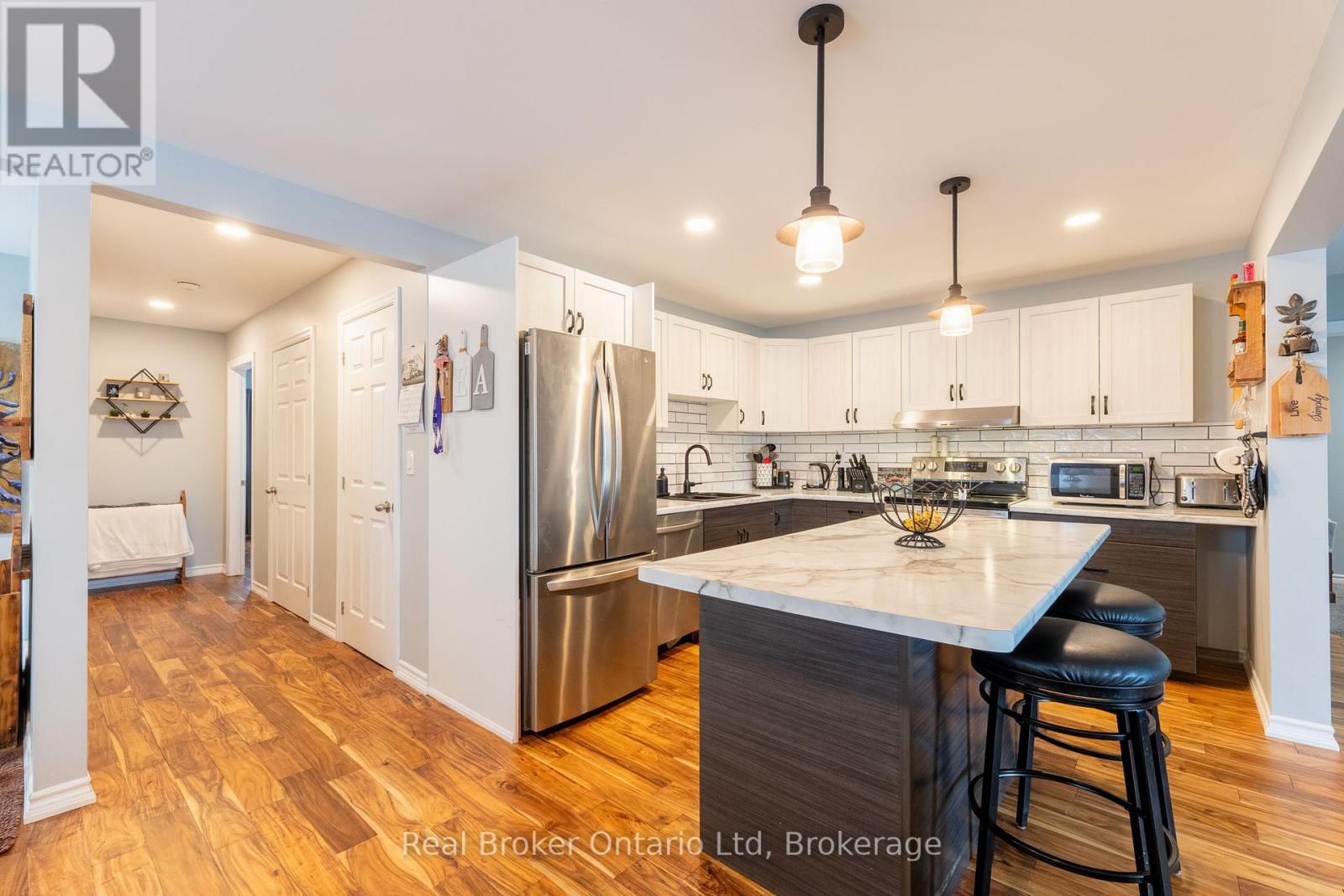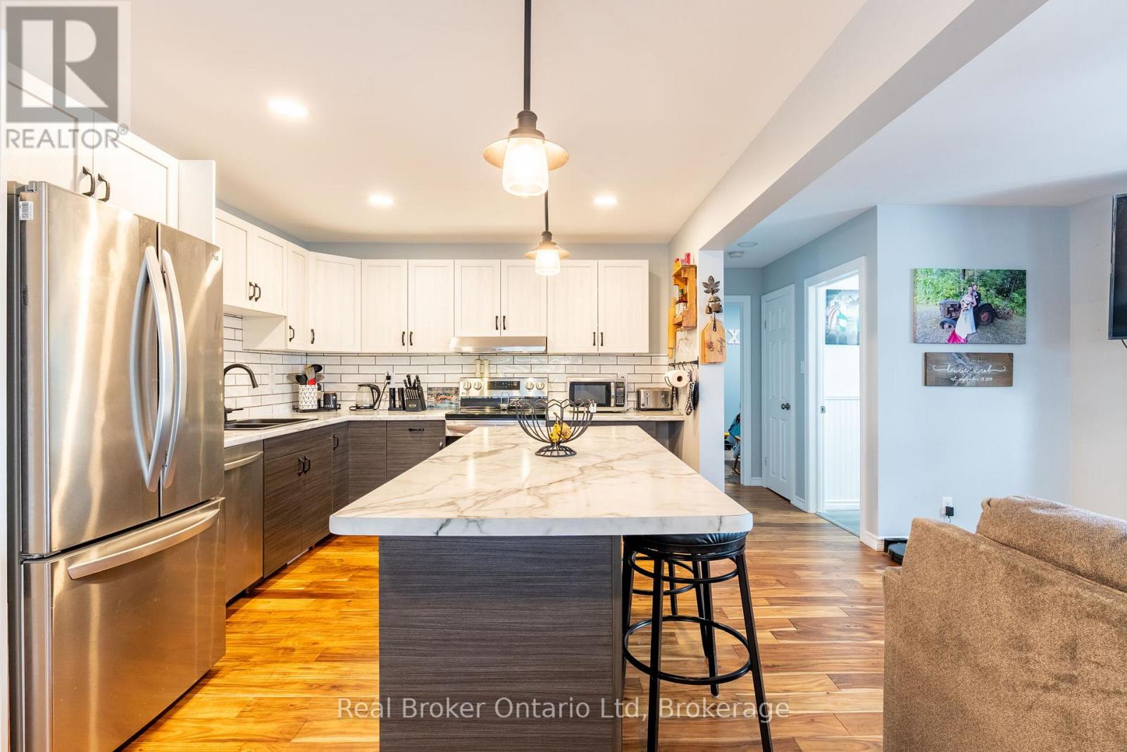 Welcome to North Ward living at its finest-where space, style, and lifestyle come together effortlessly. Set on an incredible 66' x 327' lot, this beautifully designed ranch bungalow offers over 1,500 sq ft of bright, open-concept living that instantly feels like home. From the moment you walk in, you're greeted by a seamless flow between the kitchen, complete with a central island, and the inviting living room that opens onto the front deck-perfect for morning coffees or evening unwinds.The primary suite is your private retreat, featuring a spa-inspired 4-piece ensuite and direct walkout to the backyard-your own peaceful escape just steps away. The main level is completed with three additional spacious bedrooms and a stylish 3-piece bath, offering room for family, guests, or a home office setup.Downstairs, the expansive basement delivers incredible versatility with a large rec room, bonus den, 2-piece bathroom, and plenty of storage-ideal for growing families, entertaining, or creating your dream space.Step outside and you'll truly appreciate the depth of this property. The oversized lot offers endless potential, ample parking, and a newer 24' x 24' detached garage-partially insulated and equipped with 100 amp service-perfect for hobbyists, car enthusiasts, or extra workspace.This is more than just a home-it's a lifestyle opportunity in one of Orillia's most sought-after neighbourhoods.Don't miss your chance to make it yours. (id:64974)