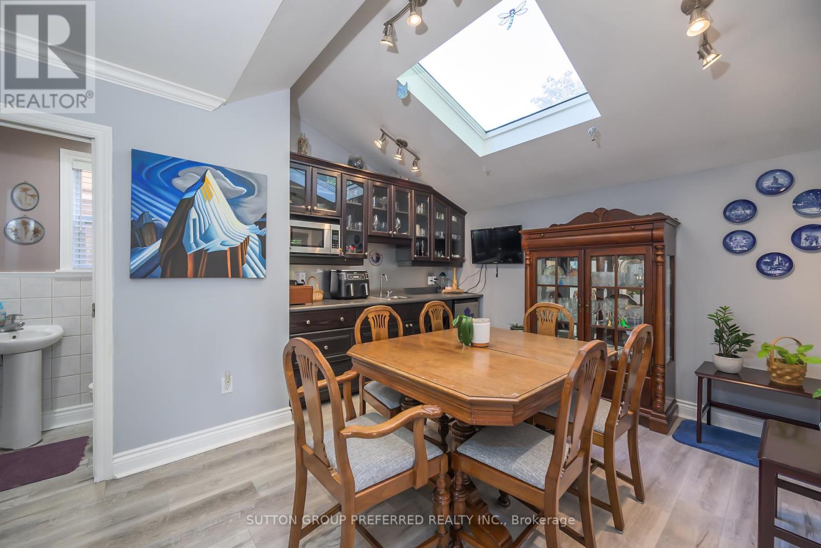OLD EAST BEAUTY! Updated spacious 3 bedroom and 1.5 bathroom 2 storey home. Large eat-in kitchen. Good sized living room. Separate family room area. Hardwood flooring in living/dining room. Lower level laundry, outside access to the lower level, workshop area, lots of storage space, 200 amp panel, Furnace and c/air approx 10 years old, roof approx 12 years old. Windows updated. Sewer lines updated to the street. Detached garage has been turned into an amazing man cave set up with a bar - easily used as a garage/workshop again. Great side/rear deck and patio. Large shed. Great home - close to Western Fair market, The Factory, restaurants, Old East Village, bus routes and easy access to Downtown London. (id:64974)