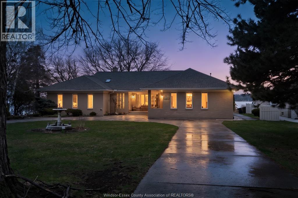 Panoramic Luxury Meets Parkside Serenity Discover an unparalleled waterfront lifestyle at 4470 Riverside Drive East, a stunning ranch-style residence situated on one of Windsor’s most coveted stretches of land. Boasting 100 feet of prime river frontage, this property offers a rare combination of expansive lot size, privacy, and unobstructed, sweeping views of the Detroit River, the iconic city skyline, and the lush greenery of Belle Isle. This home features a spacious and functional layout designed to maximize its world-class location: 3 Generous Bedrooms and 3 Bathrooms. Large formal living and dining rooms flow seamlessly into an oversized family room and a bright, airy sunroom—perfect for morning coffee while watching the ships pass by. Fully finished basement provides additional living space, ideal for a home theatre, gym, or guest suite. Nestled directly next to Goose Bay Park, ensuring no neighbours to the west and a permanent connection to nature. Features a solid breakwall (seawall rebuilt in 2019) providing peace of mind and protection for your shoreline. A circular driveway leads to an oversized 2.5-car heated garage, offering ample space for vehicles and a workshop. Equipped with a full-home backup generator. Professional sprinkler system fed directly from the river. Specifically situated to capture the vibrant sunsets over the Detroit skyline. 4470 Riverside Drive isn't just an address; it’s a front-row seat to the best Windsor has to offer. Enjoy immediate access to the waterfront trail system, local yacht clubs, and the refined dining of the East Windsor corridor. (id:64974)