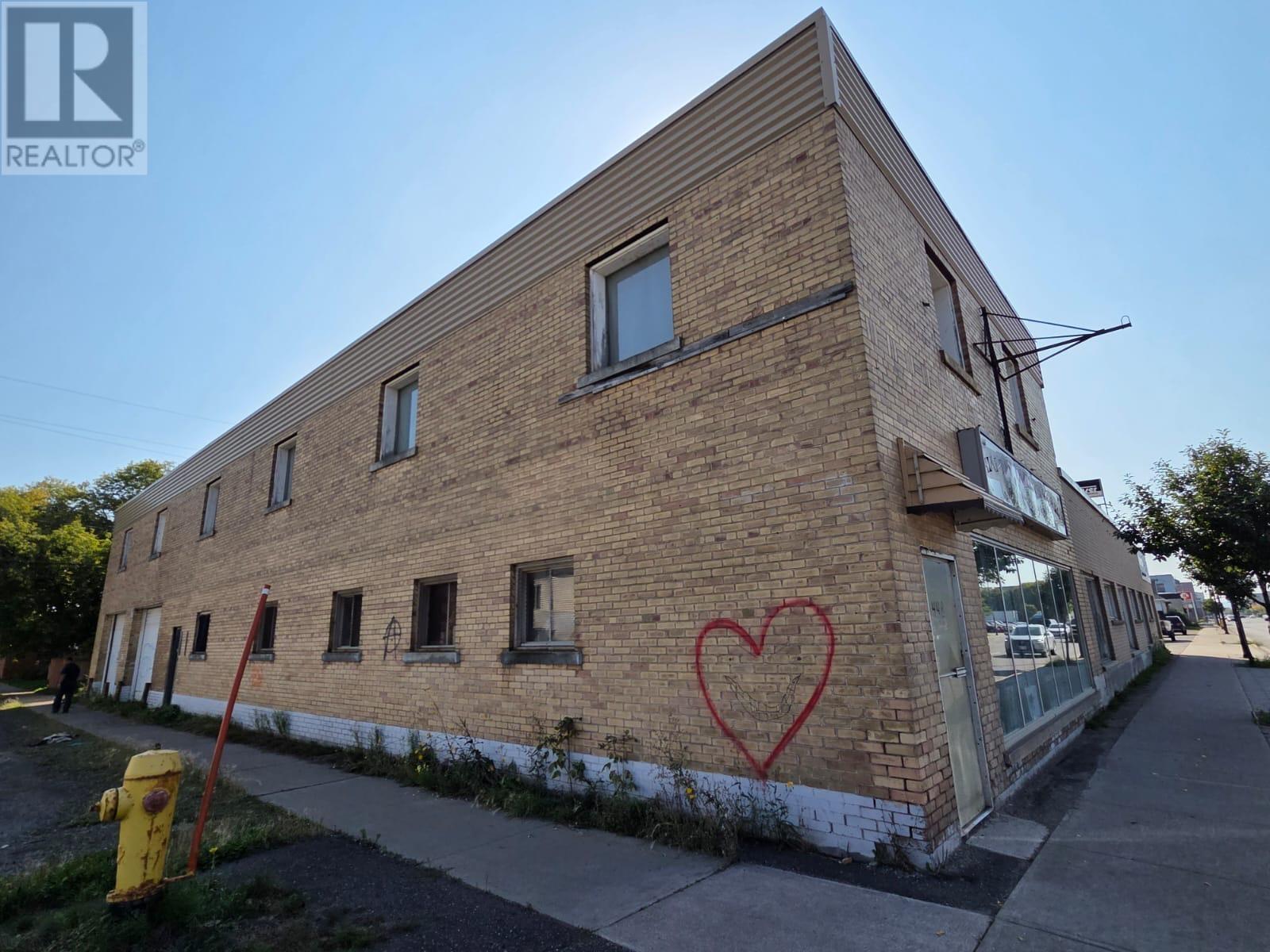 INCREDIBLE OPPORTUNITY to own a versatile commercial building in Thunder Bay’s well-established East End neighbourhood! Situated on a spacious 325 x 104 ft lot with excellent street exposure, this SC-zoned property offers a total of 22,119 sq. ft. across the main and second floors. The area is a thriving mix of residential, multi-family, commercial, institutional, and mixed-use properties, located just 2.2 km from the Intercity Shopping Centre, big box retailers, restaurants, and more. Built in 1954 on a concrete slab foundation, the building features brick veneer and metal siding, with a north tar & gravel roof and a south rubber roof—both in good condition. Inside, you’ll find 4x200-amp services with 4 separate meters, providing flexible options for multiple uses or tenants. Ample on-site parking ensures convenience for staff and customers alike. A prime location in the downtown south core with strong traffic flow and high visibility—don’t miss this chance to secure a landmark property with endless potential! (id:64974)
