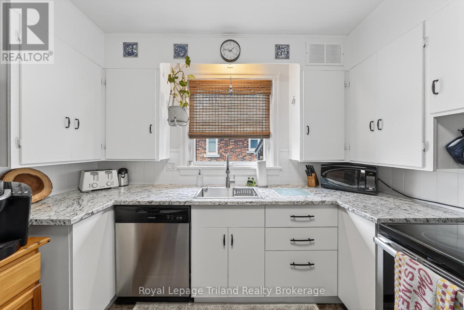 A fantastic listing in a mature, beautiful part of Woodstock. Welcome to 449 Brant Street. This brick 1.5 story home has had many tasteful renovations in the past few years. The present owners have updated many key features in their 13 years calling this home. There are 4 good sized bedrooms, 2 on the main floor and 2 on the upper level, all with windows and closets. If you don't need 4 bedrooms the primary bedroom was a Diningroom, flooring underneath the carpet matches Kitchen and hall if someone wants to have more dining space. There is a modern 4pc bath on the main floor. The windows on the main floor and basement replaced 2022. The windows upstairs are vinyl as well. The furnace and central air 2019. Roof 2020. Main sewer replacement 2021. Kitchen counter, tap and Dishwasher 2026. Some newer vinyl flooring as well done in 2014, bedroom carpets 2023 and basement floors in 2024. The owned water softener 2021. This home is completely move in ready. There is a carport as well as a very large fenced backyard. This is the Northdale School area which is very desirable. Whether a buyer wants/needs a main floor bedroom, and bath or a young family is looking for a large beautiful yard with 3 levels finished and 4 bedrooms, this fits the bill. A convenient private double wide driveway that easily holds 4 cars. Downsizing, upsizing or first time buyers you won't want to miss this one in a superb location lovingly cared for by its present owners. (id:64974)