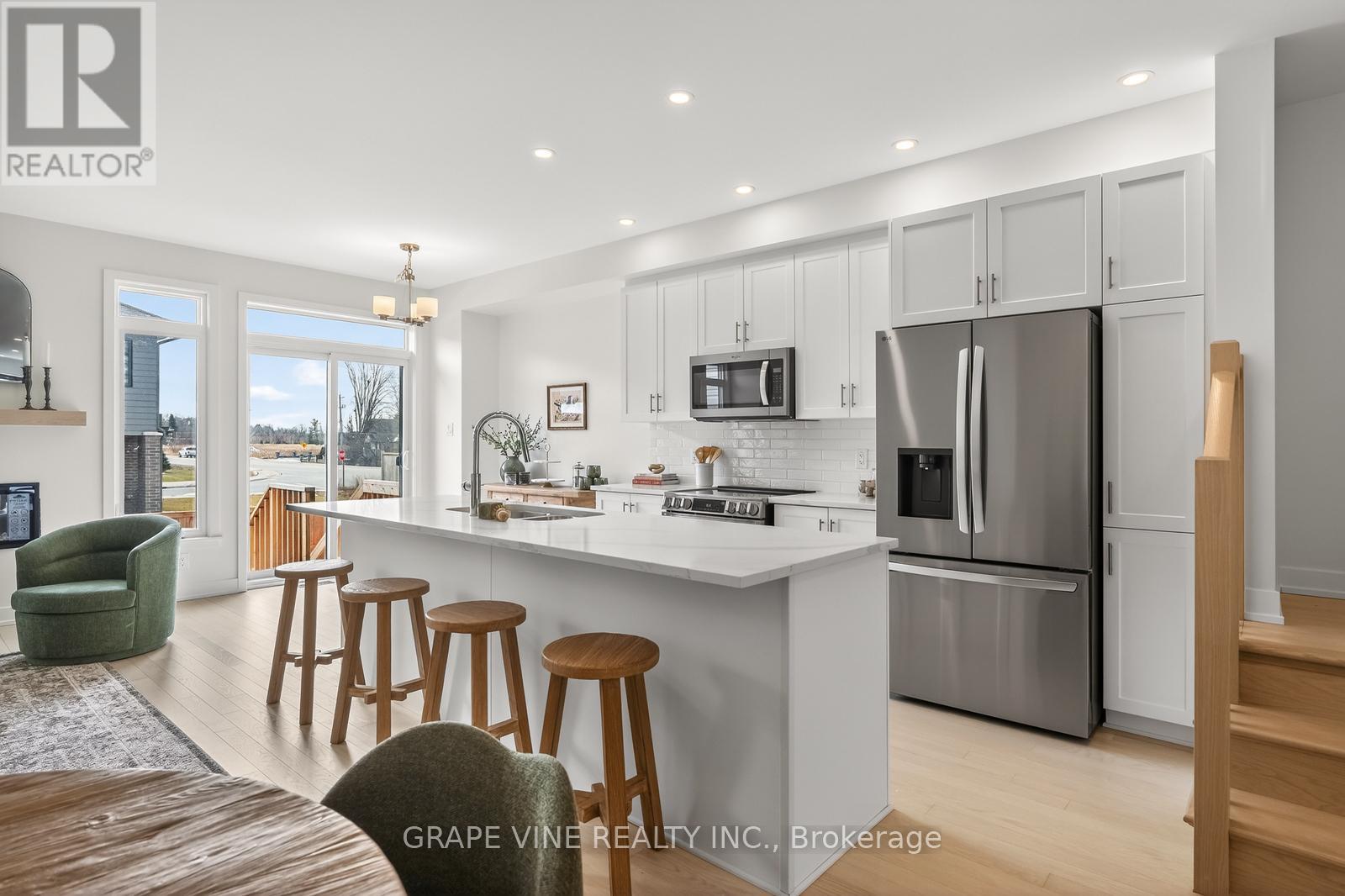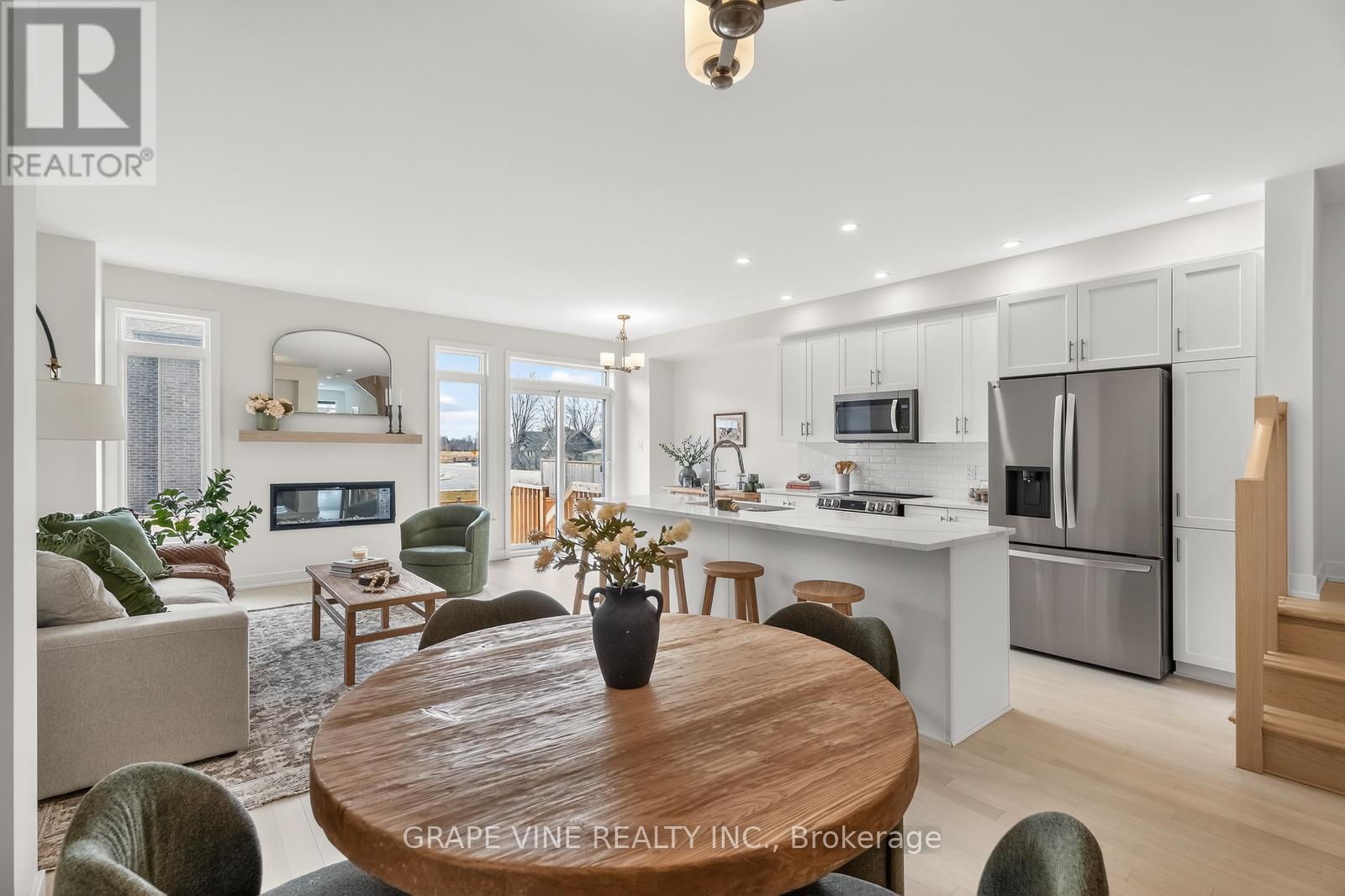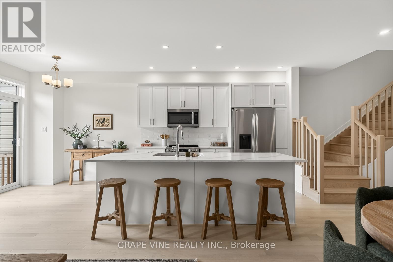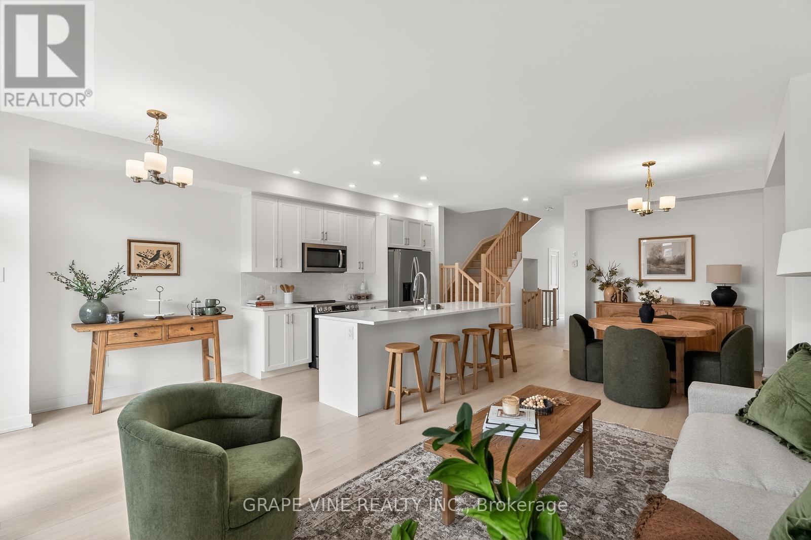 Welcome to this stunning, move-in ready townhome by Claridge Homes, offering 1,835 sq ft of thoughtfully designed living space in the sought-after Riverside South community. Featuring 3 spacious bedrooms and 2.5 bathrooms, this popular Sussex model blends modern style with everyday functionality. The bright, open-concept main floor is perfect for entertaining, showcasing elegant hardwood flooring, a stylish upgraded kitchen with quartz countertops, designer backsplash, and quality finishes throughout. The seamless flow between the kitchen, dining, and living areas creates an inviting space for both relaxing and hosting. Upstairs, you'll find generously sized bedrooms, including a comfortable primary retreat complete with ensuite bath. The home also includes a hardwood staircase, upgraded ceramic tile in key areas, and contemporary finishes that elevate the overall design. Enjoy added value with over $20,000 in upgrades, plus the convenience of central air conditioning and a well-planned layout ideal for families, professionals, or first-time buyers. Located in a vibrant, family-friendly neighbourhood close to parks, schools, shopping, and transit, this home offers the perfect combination of comfort, style, and location. Don't miss your opportunity to own one of Claridge's most popular and award-winning townhome designs. (id:64974)