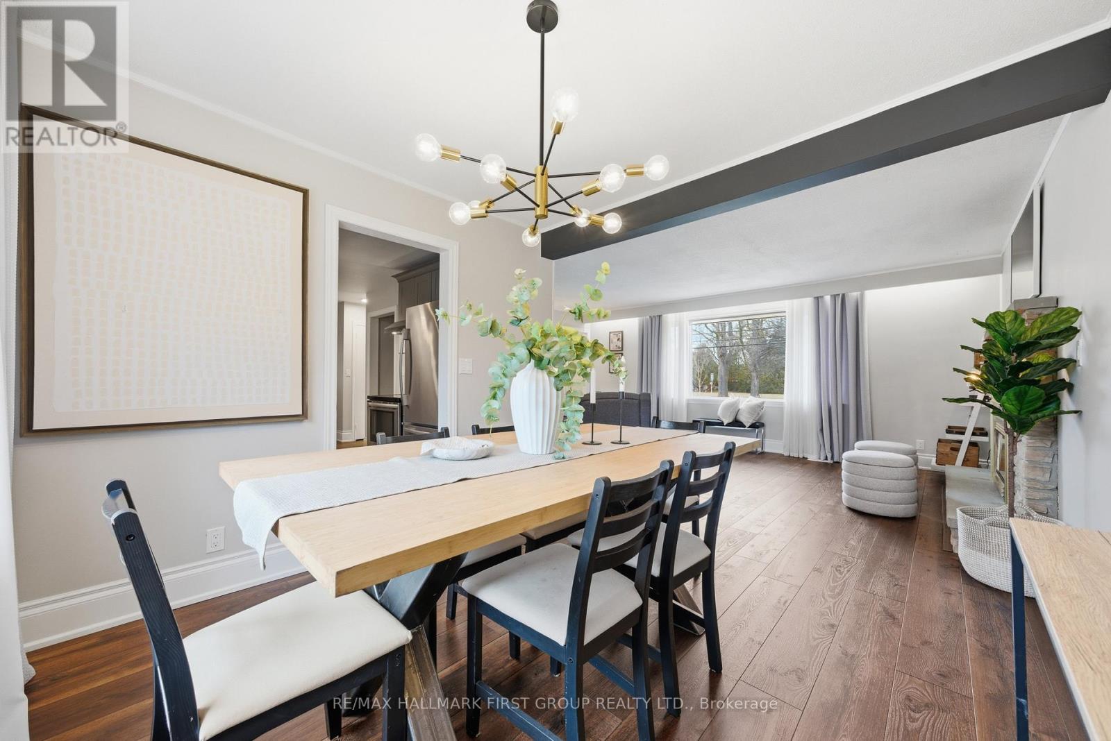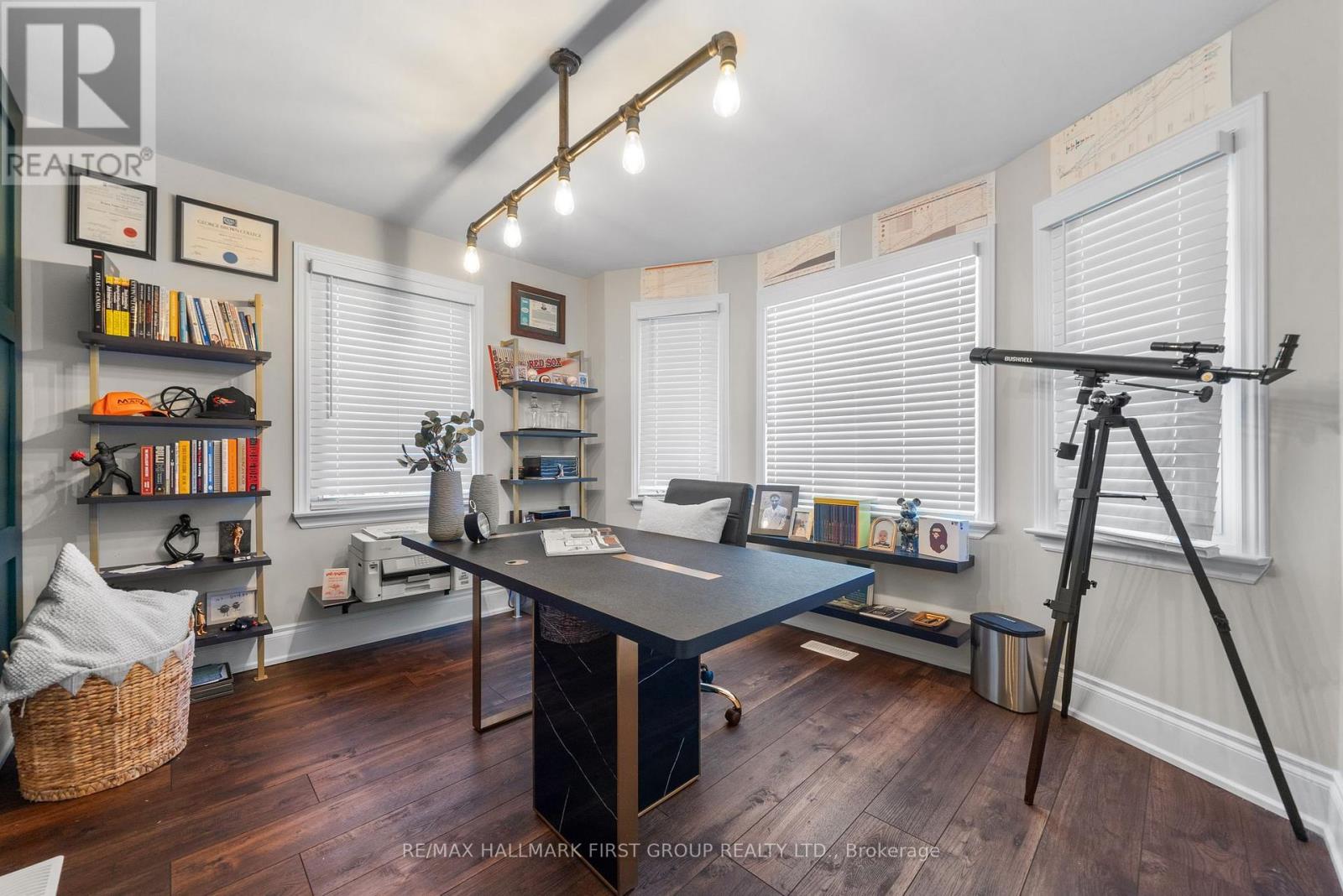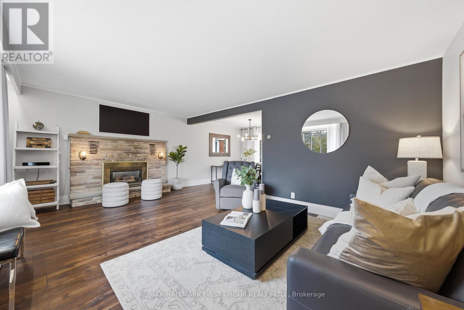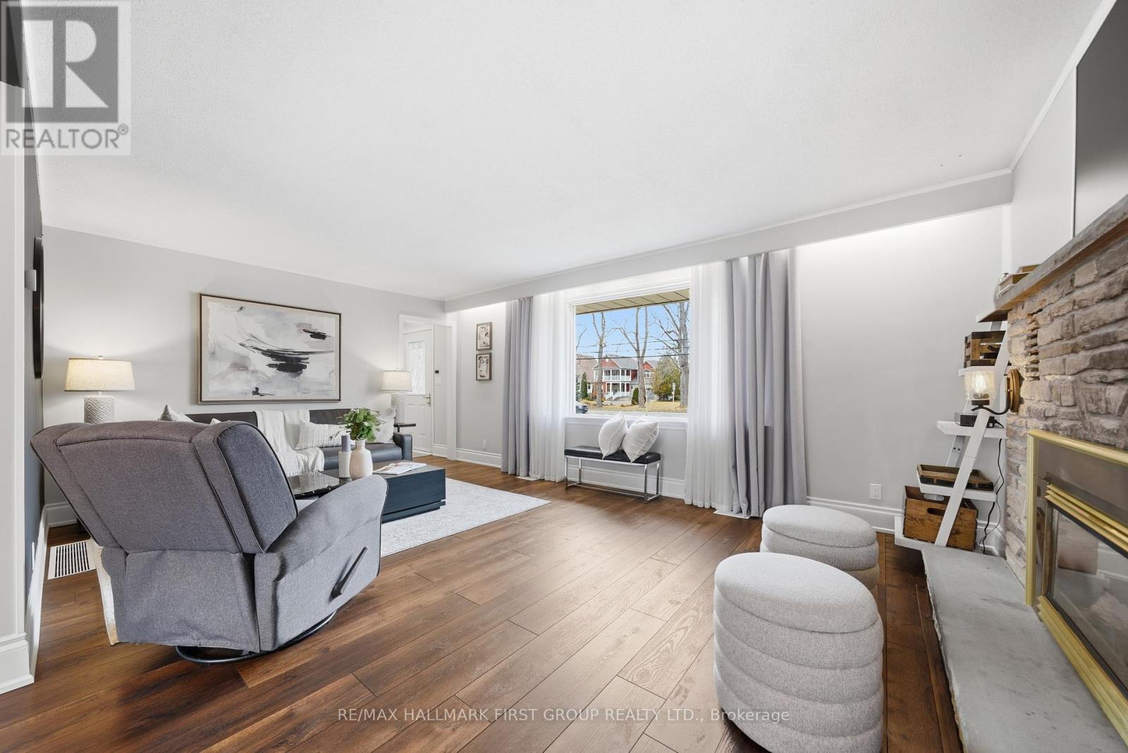 Perfectly suited for downsizers or those seeking comfort, convenience, and low-maintenance living, this thoughtfully updated 1.5 storey home sits on a bright, sunny lot with a welcoming brick exterior-just minutes from Cobourg's beach, downtown amenities, and Highway 401. Designed with ease in mind, the home offers true main floor living within its flexible 4 or 5 bedroom layout. The south-facing eat-in kitchen is filled with natural light, featuring stainless steel appliances and seamless access to a 4-season sunroom overlooking a mature, private backyard and expansive deck-ideal for relaxed mornings or quiet afternoons. The main level also includes a formal dining room, a spacious living room with laminate flooring and a built-in Napoleon gas fireplace, along with a main floor primary bedroom, dedicated home office, 4-piece bathroom, and extensive storage-everything you need on one level. Upstairs, two generously sized bedrooms and an additional full 4-piece bath provide comfortable space for visiting family or guests. The finished basement extends your living space with a cozy rec room featuring a second Napoleon gas fireplace, an additional bedroom, a convenient 2-piece bath, and abundant storage.Practicality continues outside with a single, insulated attached garage equipped with a built-in wall heater and man door to the backyard-perfect for hobbies year-round. The 75 x 200 yard offers two garden sheds (one with a concrete slab and shingled roof), a riding lawn mower (2020-included), and ample parking for added flexibility. With thoughtful upgrades and an ideal Cobourg location, this home offers a seamless transition into a lifestyle that's both easy and enjoyable. Notables: 200 amp service, generator quick connection, roof (2020), 2-stage furnace & AC (2013), owned hot water tank (2012), 2022 home inspection on file. (id:64974)