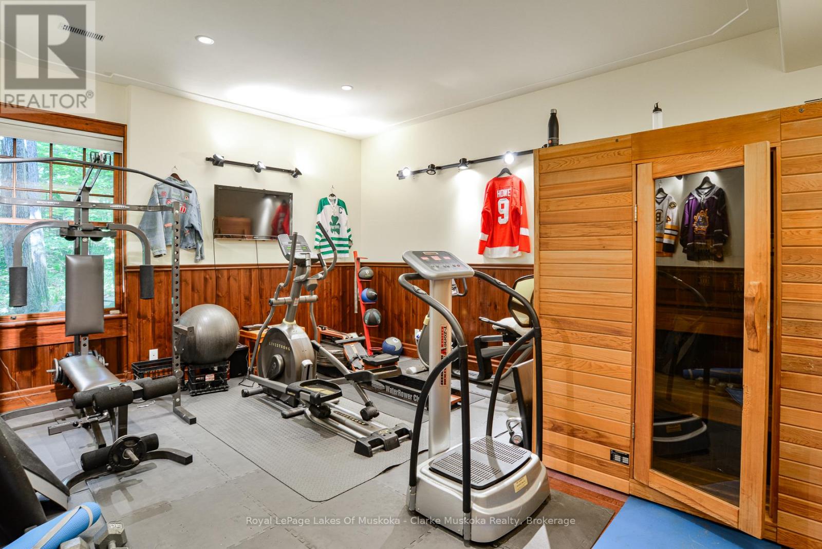 Experience Muskoka living with this beautiful 4-bedroom, 4-bath bungalow situated on 98.43 feet of frontage on Marion Lake. Offering breathtaking views of the calm waters, this property combines comfort, recreation, and convenience in one remarkable package. Inside, the home is designed for both relaxation and entertainment, featuring an indoor gym, private sauna, and a built-in bar perfect for hosting friends and family. The spacious layout provides plenty of natural light, while the two-car garage ensures practicality and storage. Set in a prime Port Carling location, this property sits directly across from the prestigious Port Carling Golf Club, placing world-class recreation right at your doorstep. Just minutes away, you'll find everyday essentials including Foodland, the LCBO, a health clinic, hardware store, and the local post office, making this the perfect balance of privacy and accessibility. Whether its enjoying peaceful lakefront mornings, working out at home, or hitting the greens, this home delivers the ultimate Muskoka lifestyle. (id:64974)
