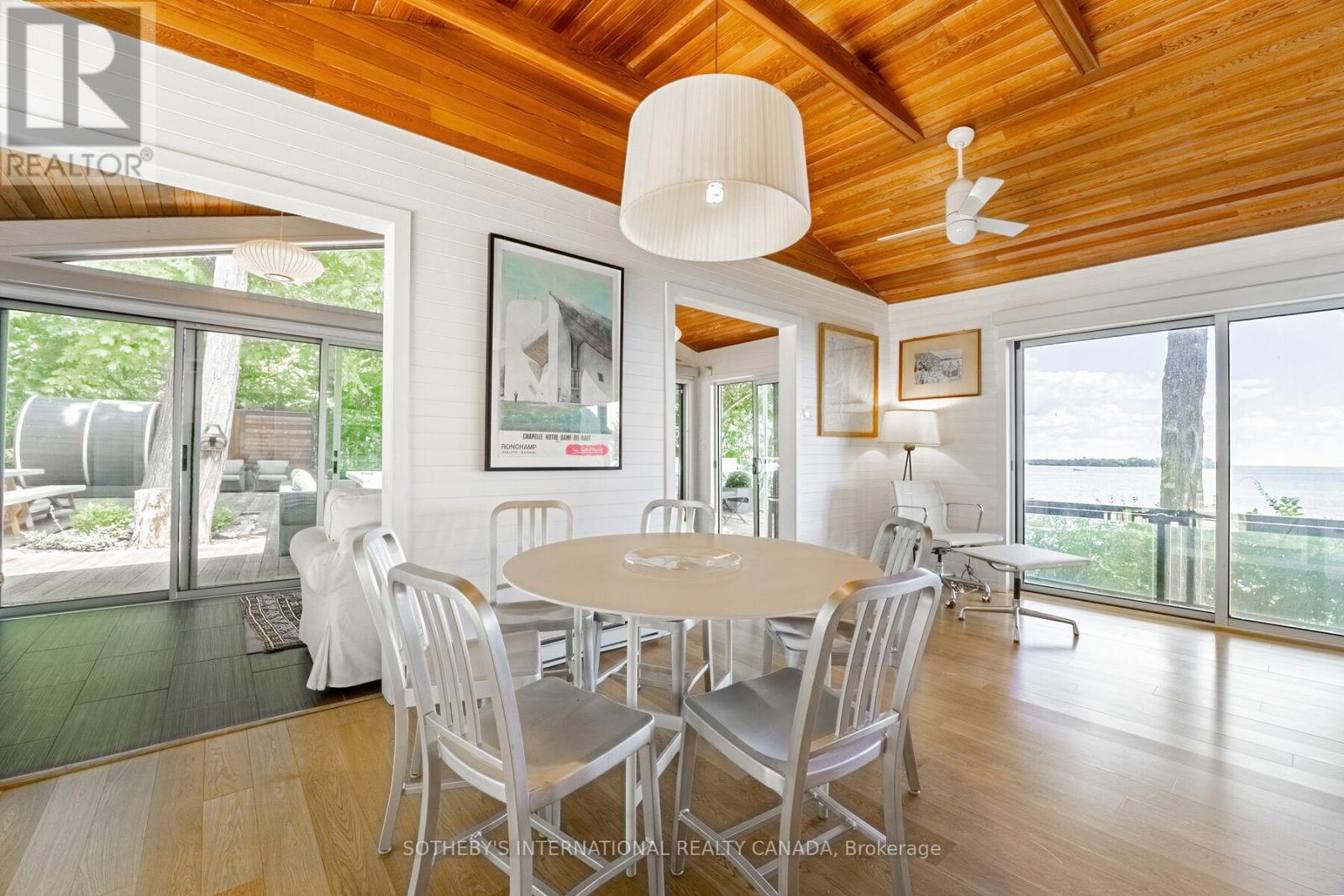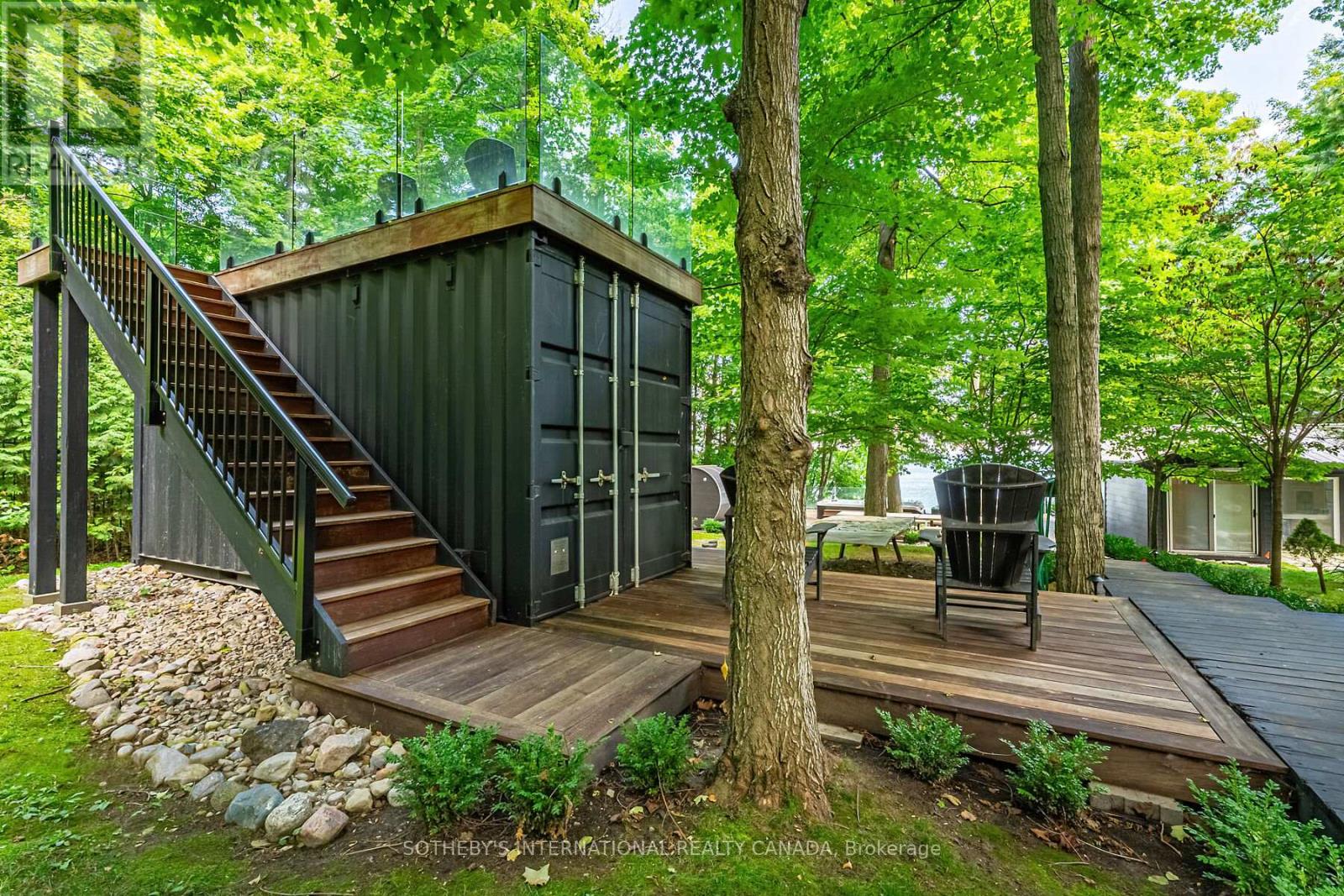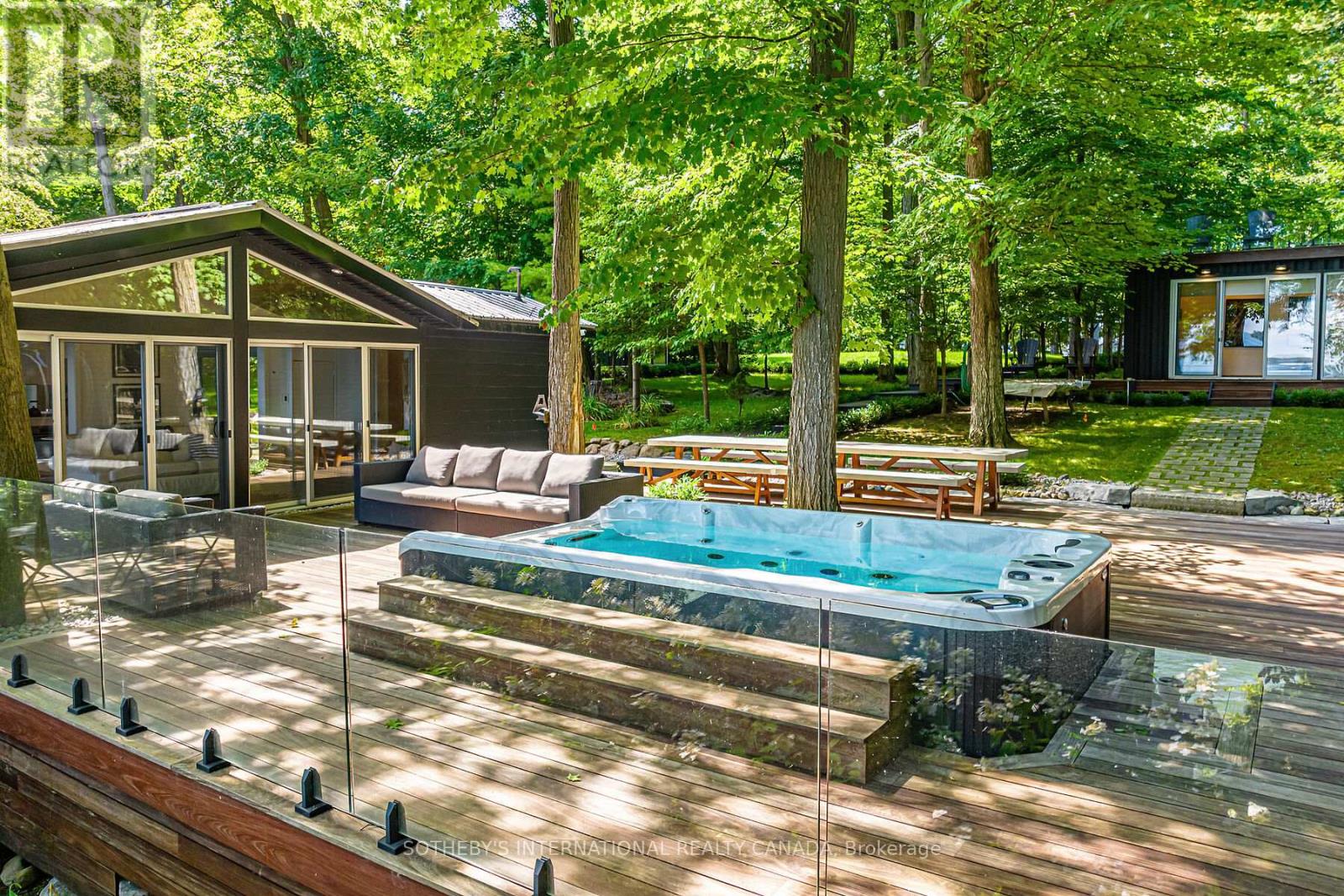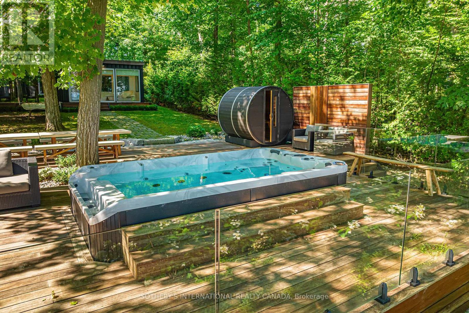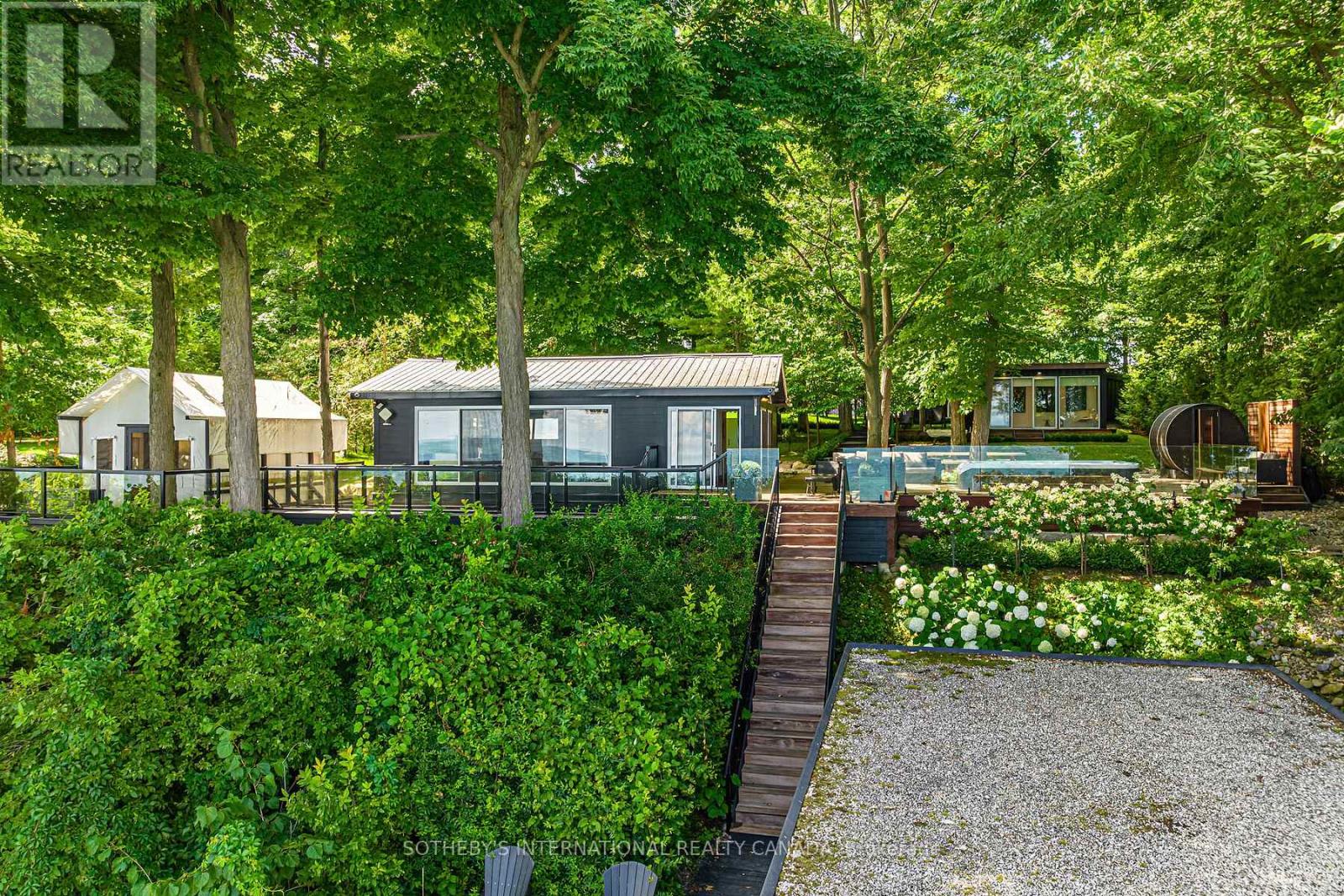 233 ft of waterfront double lot! Join the shipping container lifestyle revolution! Original and updated Lake Simcoe waterfront cottage andboathouse anchor the family compound. Also built over 1.2 acres are three purpose-built luxury shipping containers (one queen bed studio + four bed kidscabin + fitness studio (which could be extra bedroom) combined with two 2-piece bathrooms, shower, laundry room (total 3.5 bath). The property sleeps12 and breaks up into five private areas with its own terraces and landscaping. Everything from outdoor sauna, hot tub, roof decks, firepit, retractable 50 ftboat deck and glamping tent included! $200k invested in 2023 in various upgrades including a brand-new septic system. 600' cedar hedge & 12 ft highwrought iron fencing encloses the property. Let the dogs and kids run free! Perfect Wi-Fi and top of the line security system with multiple cameras. Fullyfurnished (perfect mix of mid-century and contemporary cottage) and move-in ready. All the work has been done for you! Be in total privacy less than 2hours from Toronto. VTB available for qualified buyers. (id:64974)
