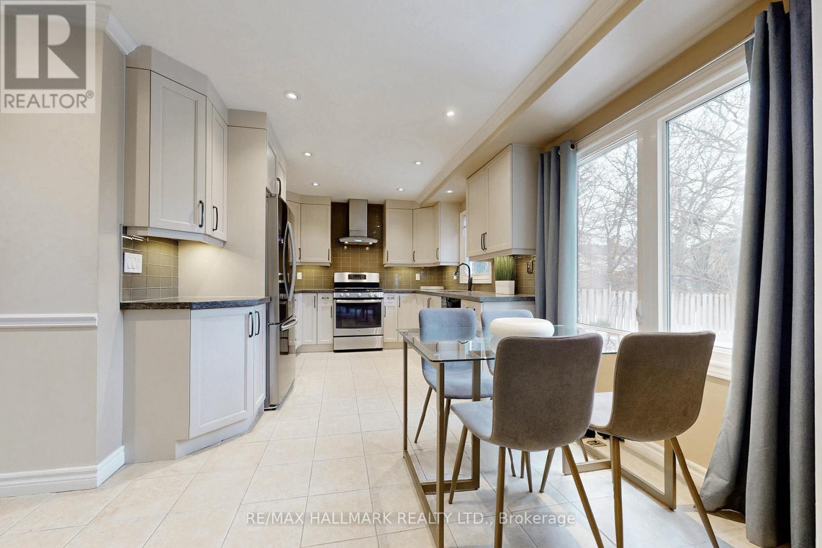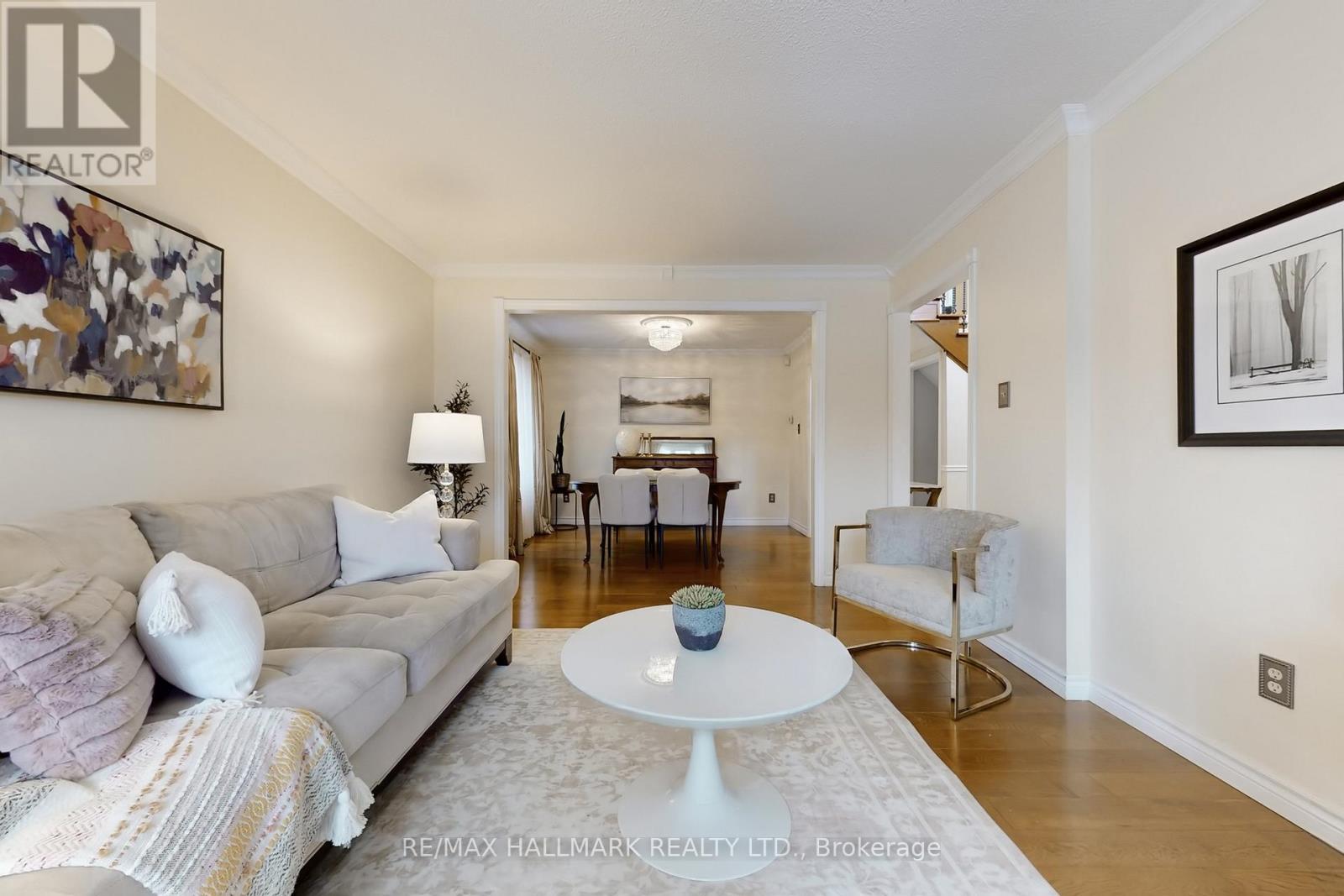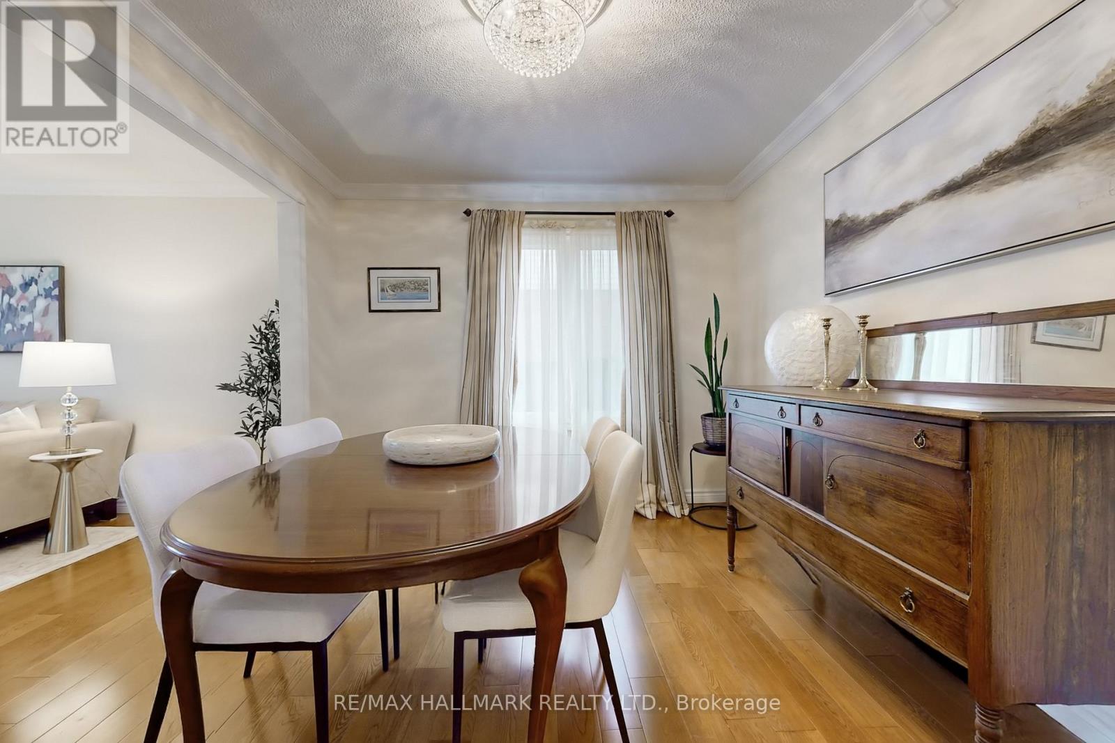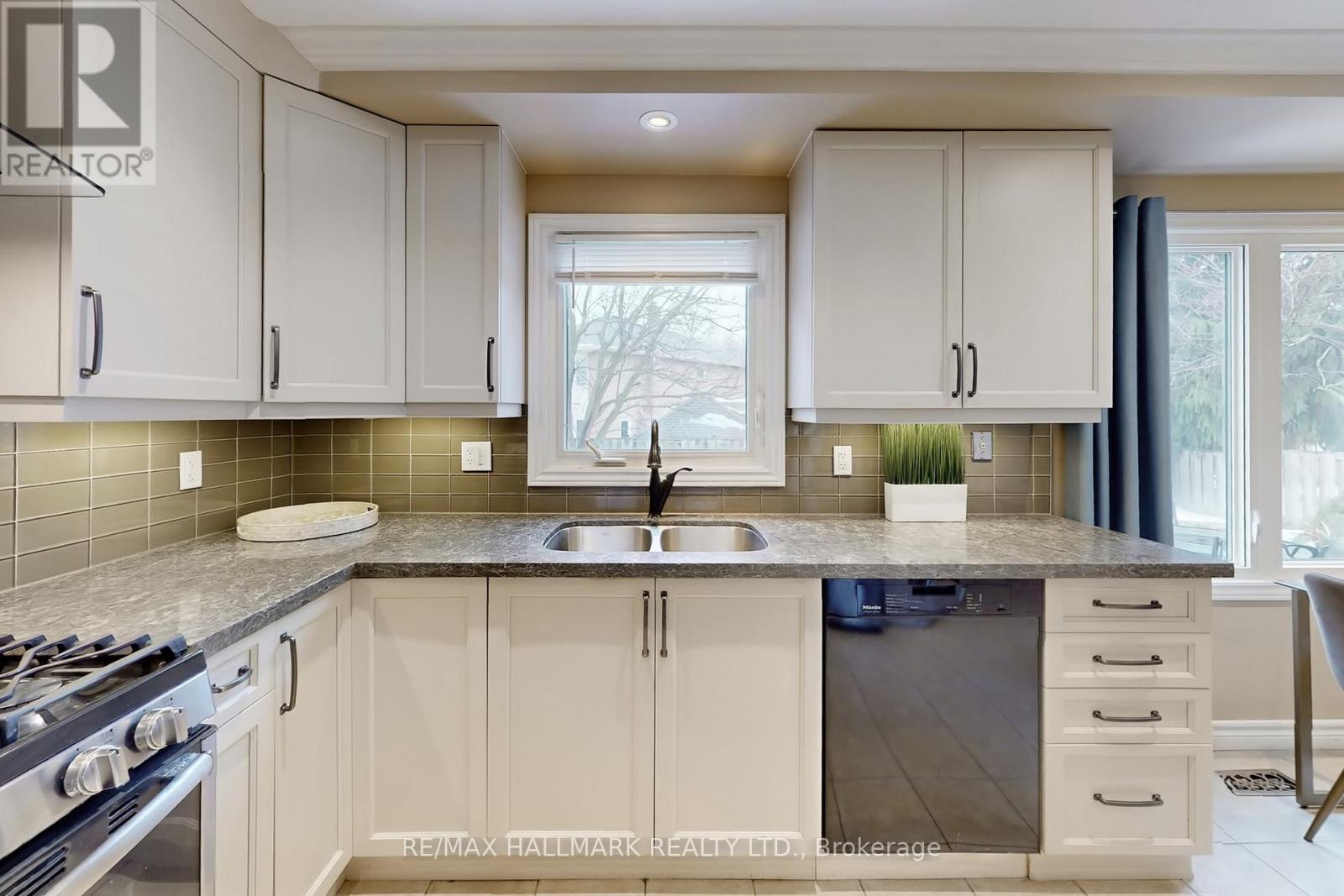 You'll love this Fabulous 2 Storey home in Markham Village-offering a Lovely Mature Landscaped Fenced Yard! Beautiful Hardwood Floors throughout, Crown Moulding, Custom Oak stairway, Renovated eat-in kitchen with quartz counters-open concept to family room that offers sliding doors to backyard patio with awning for summertime shade! Finished Basement, upgraded Vinyl windows on main & second, Main Floor Laundry with walk-out to yard, New Gas Furnace in 2025, New Roof approximately 2018. (some summer photos available online). Walking Distance to Schools, shopping, Transit, Main street (id:64974)