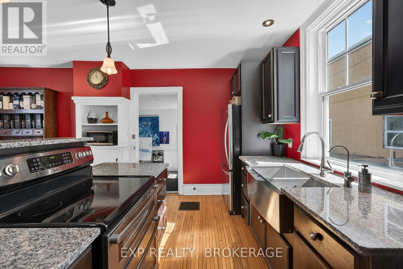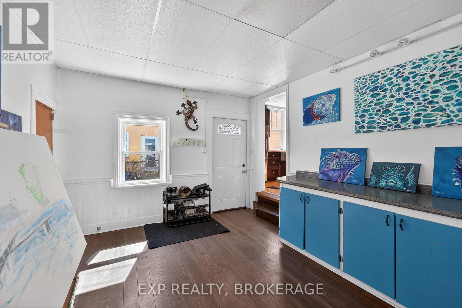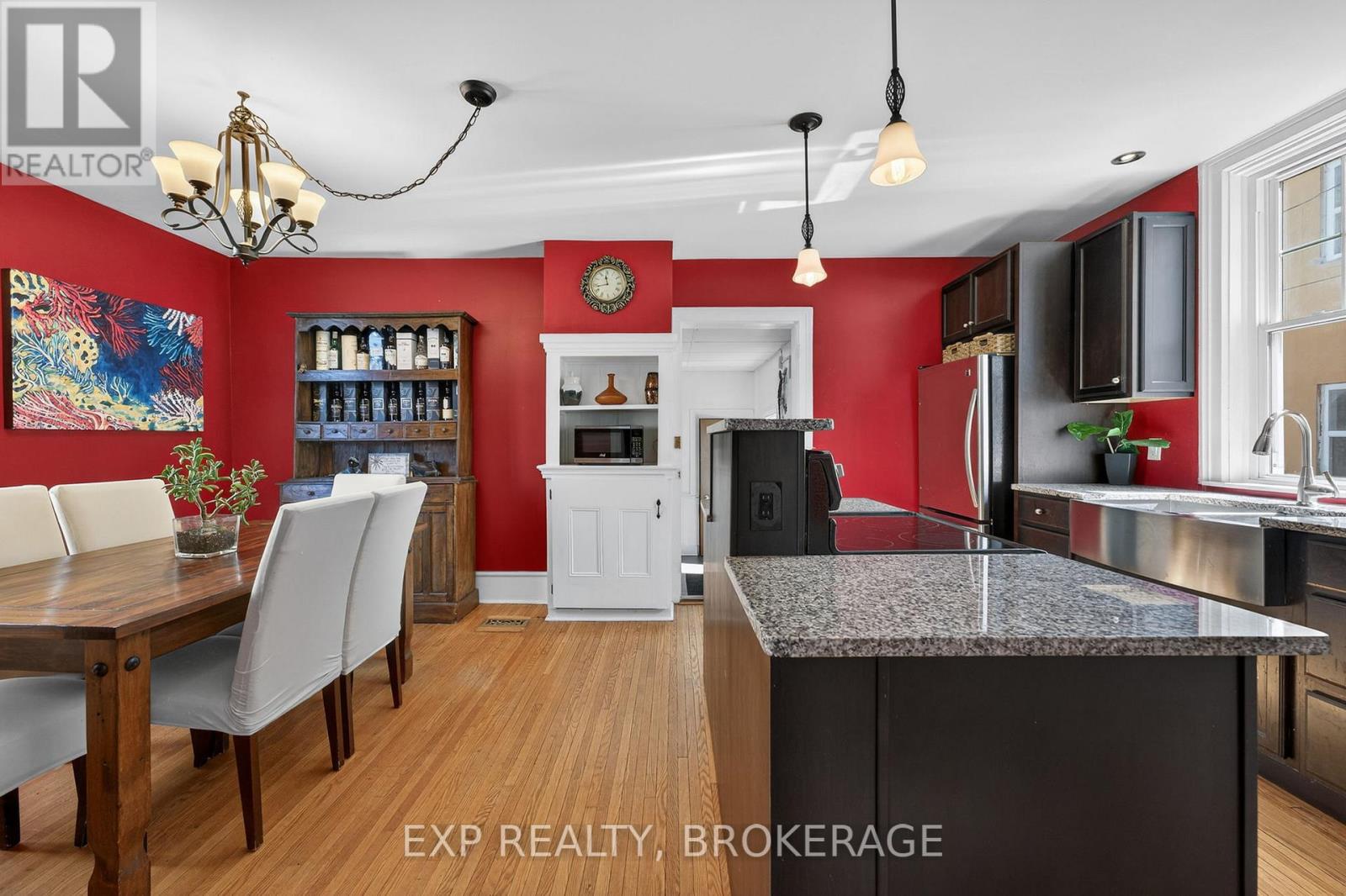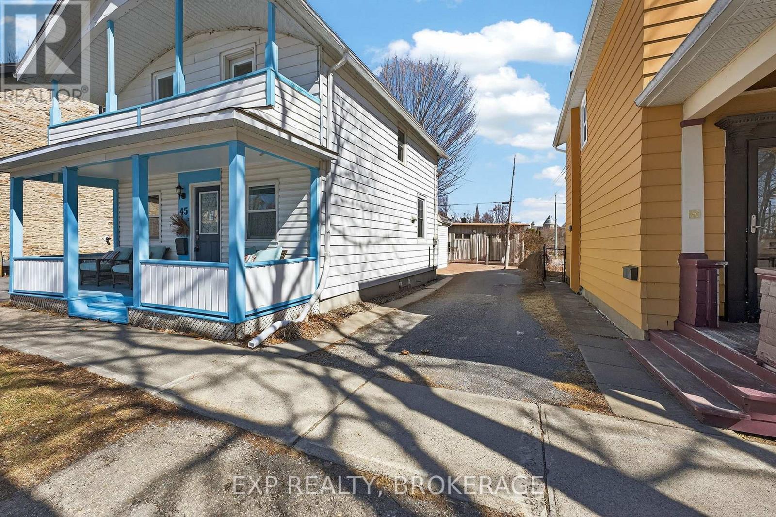 Welcome to 45 Main Street in the heart of Gananoque. A rare opportunity just steps from the scenic St. Lawrence River in the gateway to the Thousand Islands.This charming and versatile home welcomes you with a covered front porch and a bright, spacious main level featuring a generous living room, dining area, and an updated kitchen designed for both everyday living and entertaining. A flexible rear room with its own side entrance offers incredible potential-perfect for a home office, small business, or easily used as a main floor bedroom, along with a convenient 2-piece bath on the main floor. Just beyond, an additional bonus space with attic loft provides excellent flexibility for a workshop, hobby area, or extra storage-ideal for those needing room to create, build, or stay organized. Upstairs, you'll find three comfortable bedrooms and a full bathroom, offering ideal space for families or guests.Outside, enjoy a yard complete with a patio and deck-perfect for entertaining or relaxing. The unbeatable walkable location provides easy access to the marina, parks, shops, restaurants, and local attractions.Set in one of Eastern Ontario's most desirable waterfront communities, known for its vibrant lifestyle and proximity to major centres, this is your chance to own a character-filled home in a high-demand location. CR zoning allows for a variety of residential or commercial uses. A standout opportunity in an exceptional setting. (id:64974)