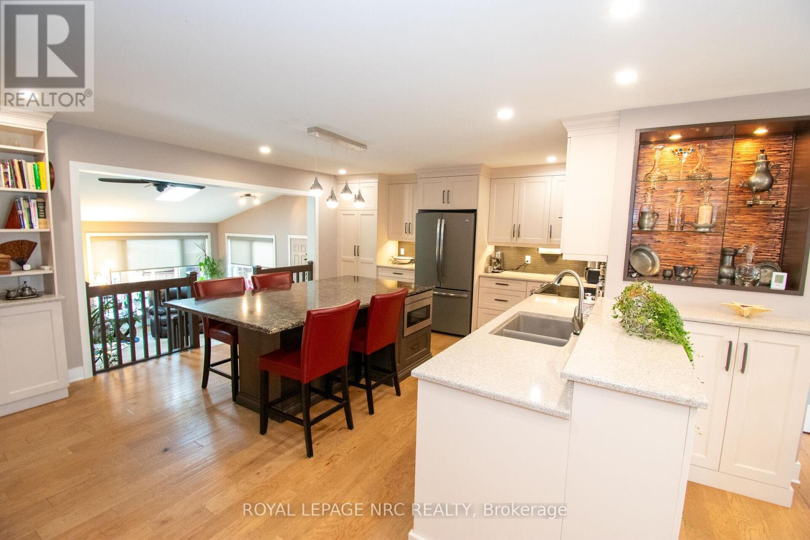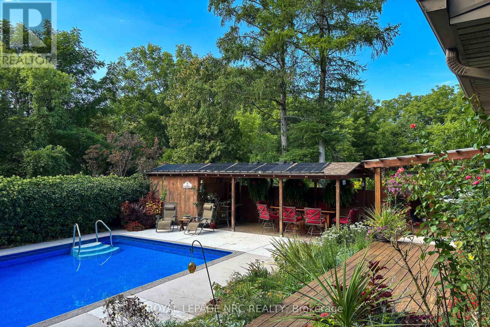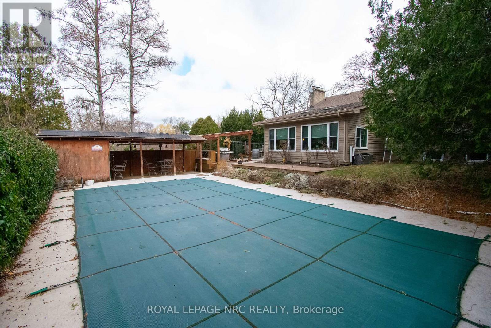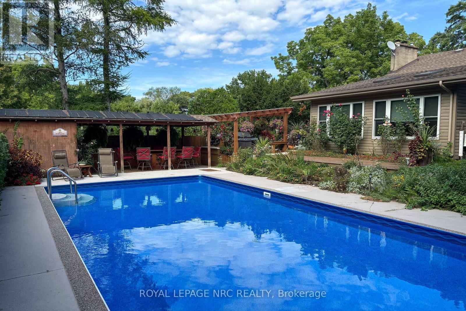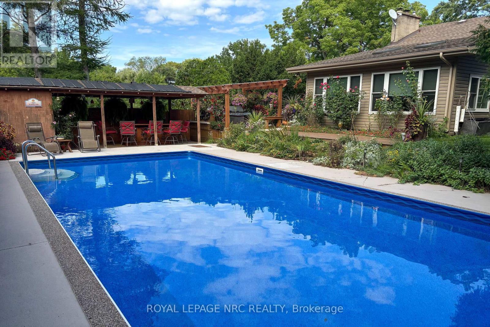 OPEN HOUSE SUNDAY MARCH 29TH 1:00PM-3:00PM "STUNNING NORTHEND ST. CATHARINES BUNGALOW WITH 3+1 BEDROOM, 2 FULL BATH, IN-LAW POTENTIAL, CARPORT (EASILY CONVERTED TO GARAGE) FENCE BACK YARD WITH INGROUND SOLAR HEATED POOL & PATIO, NO REAR NEIGHBOURS AND & LARGE OPEN GREEN SPACE TO THE EASTSIDE, BEAUTIFUL UPDATED OPEN CONCEPT KITCHEN/DINING RM OVERLOOKING LARGE FAMILY ROOM WITH GAS FIREPLACE & MOSTLY FINISHED BASEMENT & APPROX 2000 SQ FT OF LIVING AREA, IS A MUST SEE" WELCOME TO 45 Nickerson Drive, St. Catharines, As you approach you notice the immediate Curb Appeal with large aggregate double drive & carport & beautifully landscaped. Enter inside and you are met with a spacious dining room & stunning updated custom kitchen with vaulted ceilings, pot lighting and loads of cabinet & granite counter space with large island & b/i appliances great for entertaining. Off the kitchen, you overlook a well appointed generous sized family room with skylights, gas fireplace overlooking the oasis backyard in summer. Off the living room you head down the hallway and notice 3 good sized bedrooms & 3pc bath. After completing the main level go to the mud room (rough-in for laundry behind cabinets) to go downstairs and you have another updated 3 pc bath, bedroom & large recroom area, laundry & workshop & storage areas which could easily house an in-law set up. Outside you have a very private oasis back yard with inground (solar heated pool with patio & deck area and no rear neighbours. This home offers so much potential and won't disappoint. NOTE - (FURNACE & CENTRAL AIR -2017, ROOF -2015, POOL LINER-2021, PUMP & LINES 2023, KITCHEN 2016, ADDITION UPDATED 2019) (id:64974)