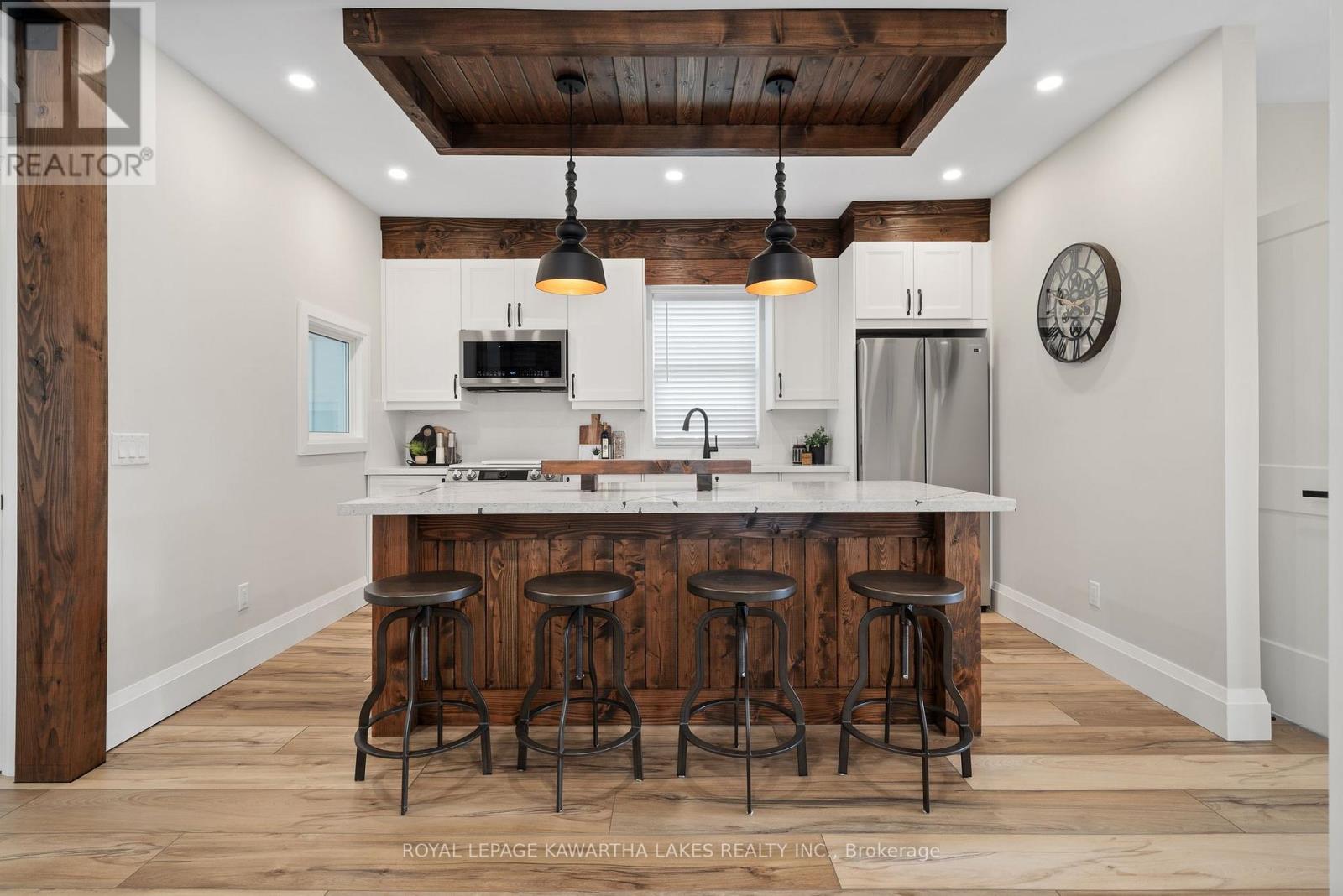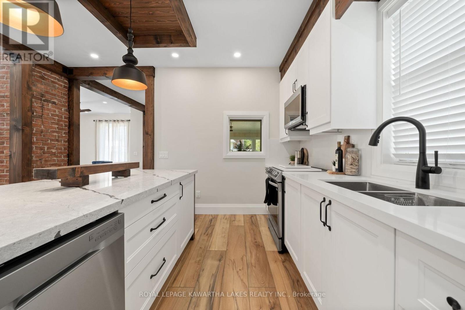 Welcome to a bright and inviting 3-bedroom, 3-bathroom home. Offering a perfect blend of comfort, space, and scenic charm in the heart of Fenelon Falls. This residence has undergone many thoughtfully updated renovations including fresh designer paint and premium flooring, a reimagined kitchen complete with quartz countertops, and an oversized eat-in island. Ideal for families, entertaining, or working from home - this home provides plenty of space for everyone. Enjoy stunning panoramic views of Cameron Lake right from your fully fenced backyardyour own private retreat! Professionally crafted armourstone landscaping enhances the home's striking curb appeal. Featuring a detached 2-car garage and a 2-car driveway - providing ample parking and storage. Dont miss your chance to own this beautiful home complete with lake views and exceptional indoor-outdoor living. (id:64974)