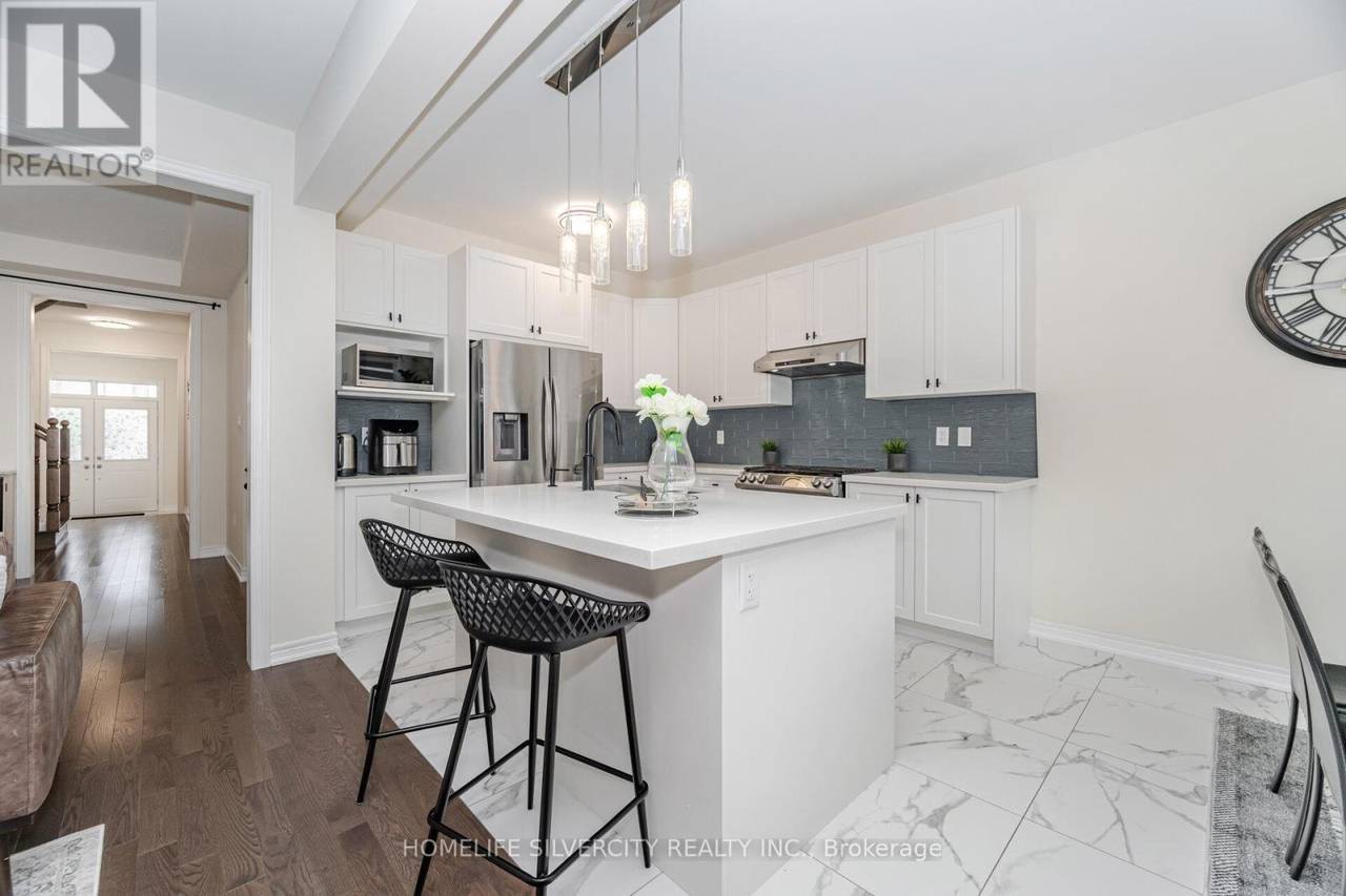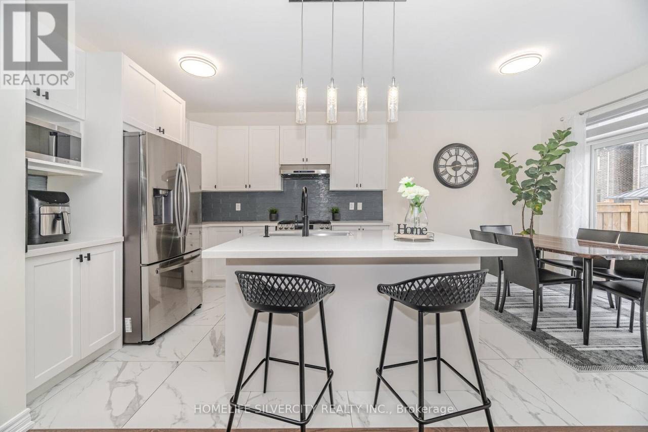 Welcome to this beautifully upgraded detached home, offering 2,150 sq. ft. of bright and functional living space. With a striking stone façade and covered porch, this residence showcases impressive curb appeal. Inside, soaring 9 ft. ceilings on both the main and second levels, paired with oversized windows, fill the home with natural light. The open-concept main floor features a welcoming family room and a gourmet kitchen with quartz countertops. A separate basement entrance and approximately $50,000 in upgrades add exceptional value. Upstairs, spacious bedrooms provide comfort and privacy, designed with today's modern family in mind. Outside, enjoy a large, fully fenced backyard-perfect for entertaining or quiet relaxation. Ideally located near Heber Down Conservation Area, shopping, new schools, and offering quick access to highways and GO Transit, this home blends elegance, convenience, and lifestyle. (id:64974)