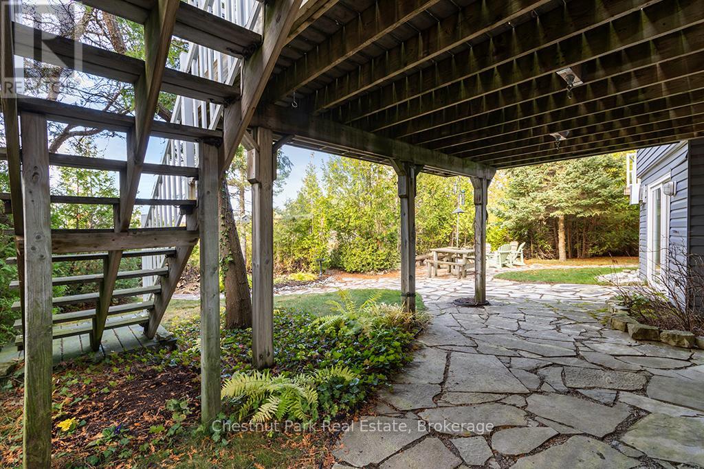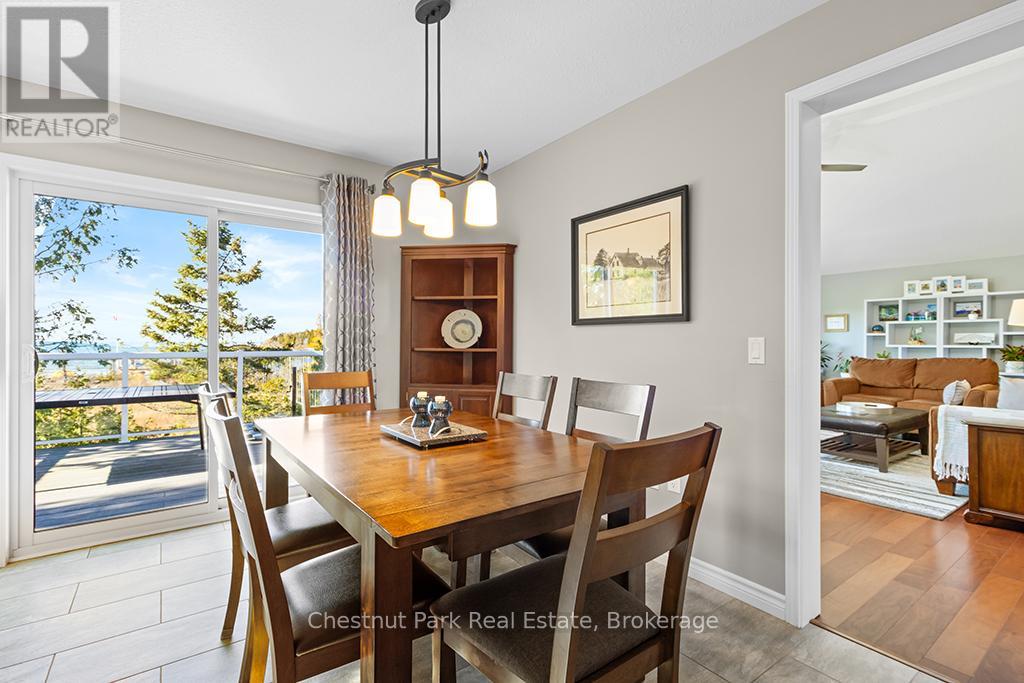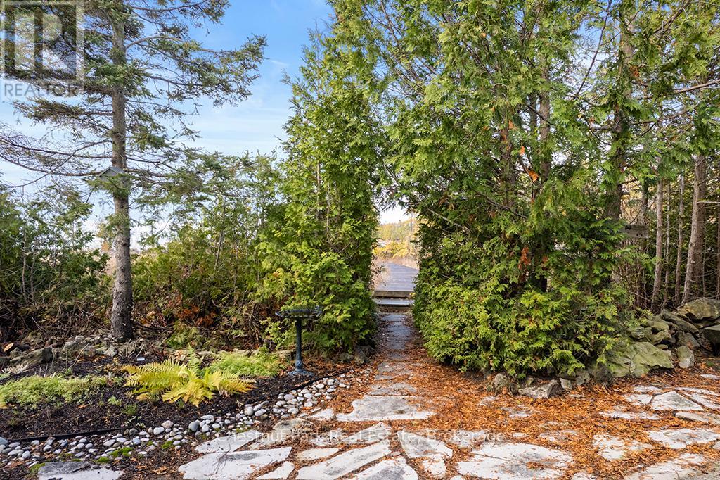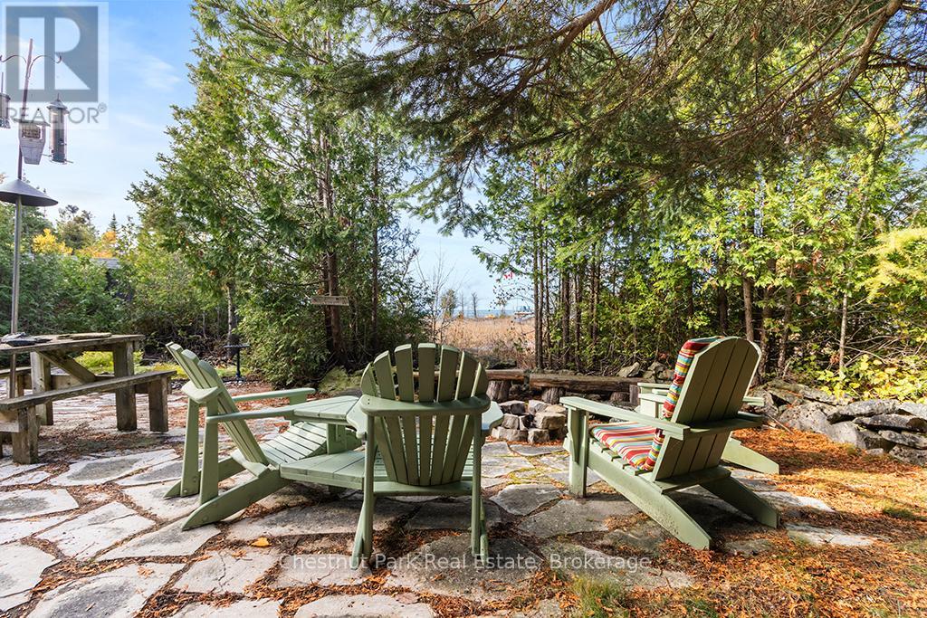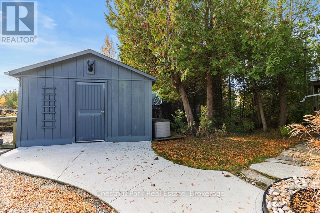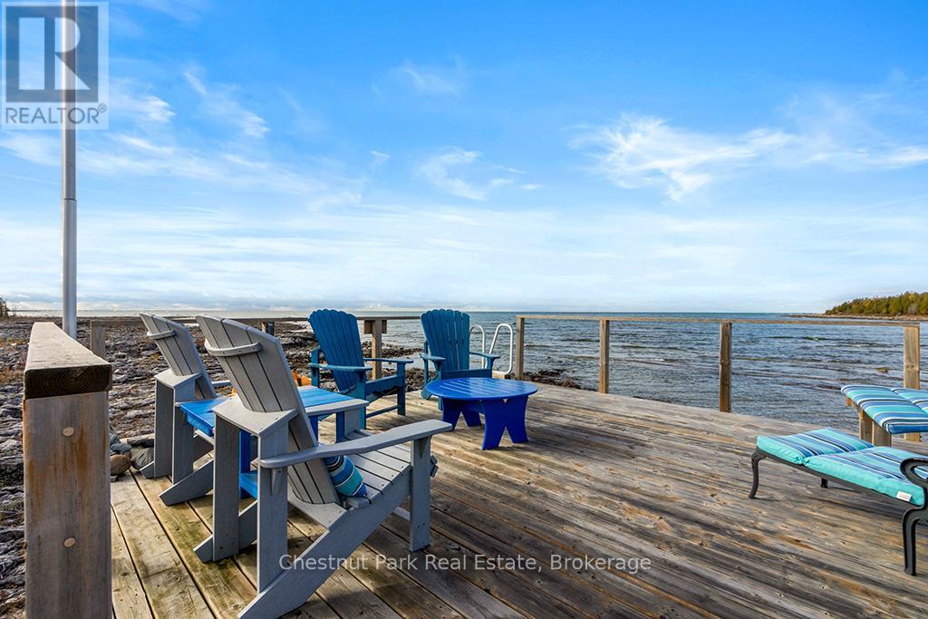 Welcome to this Quality engineered waterfront home set along the stunning shores of Lake Huron on the beautiful Bruce Peninsula. Meticulously maintained and thoughtfully designed, this four bedroom, three bathroom residence offers year round comfort, space, and timeless appeal. Located just twenty minutes from Tobermory village and minutes to the white sand beaches of Singing Sands, the property blends privacy, convenience, and unforgettable natural beauty. The heart of the home is the impressive great room, where vaulted ceilings and a wall of windows frame sensational, ever changing lake views. The spacious, light filled kitchen provides ample workspace and flows seamlessly to the upper deck, ideal for outdoor dining and entertaining. The primary bedroom is a peaceful retreat featuring a walk in closet, private ensuite, and direct access to the waterside deck. Main floor laundry adds everyday ease and functionality. The walkout lower level expands the living space with a comfortable family room warmed by a modern propane fireplace, perfect for relaxing after a day on the water. A large storage and mechanical room offers excellent utility and organization. Outdoors, 105 feet of Lake Huron frontage invites you to enjoy westerly exposure and breathtaking sunsets. A wooden boardwalk leads to a massive lakeside deck, complemented by a flagstone patio area for gatherings. The detached garage includes recreational space, while a greenhouse, garden shed, and ample parking complete this exceptional lakeside offering. This remarkable home is ideal as a full time residence, seasonal retreat, or legacy waterfront investment, offering comfort, quality craftsmanship, and the unmatched tranquility of Lake Huron living year round. (id:64974)