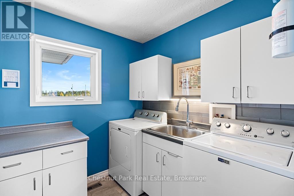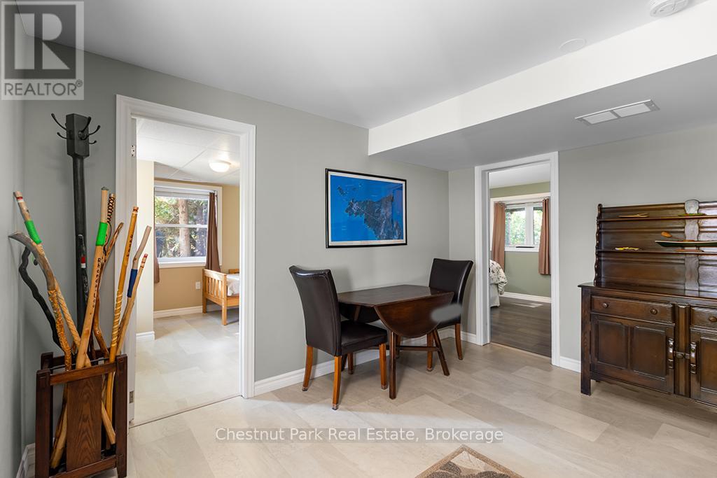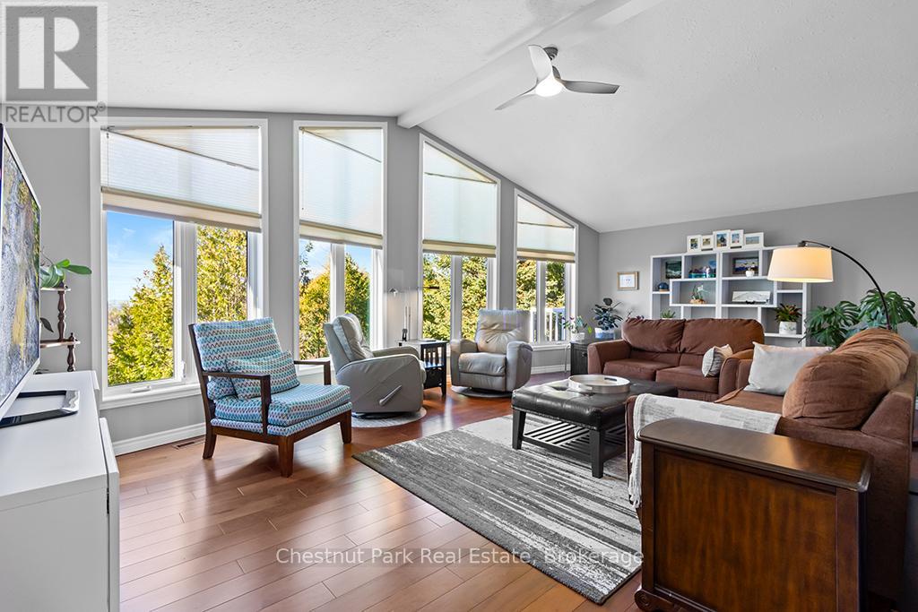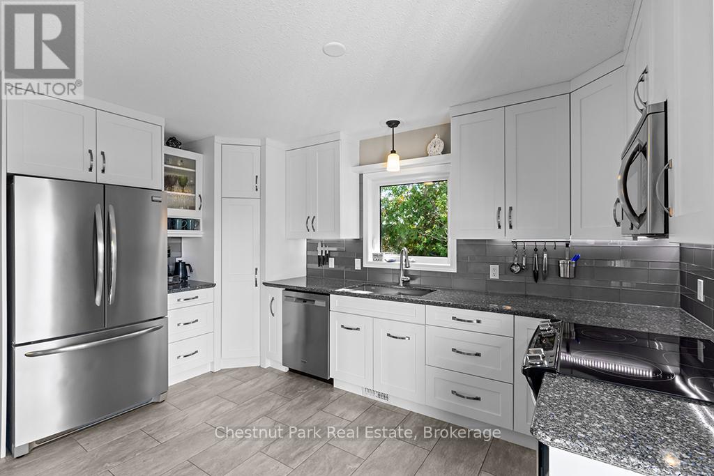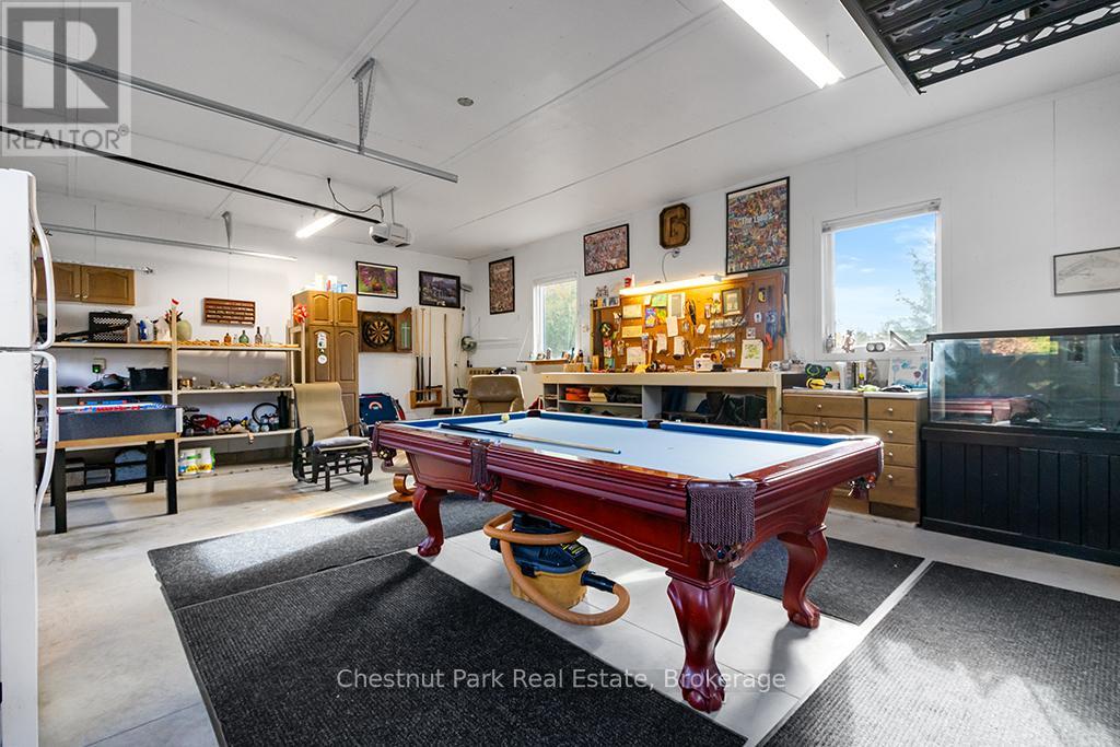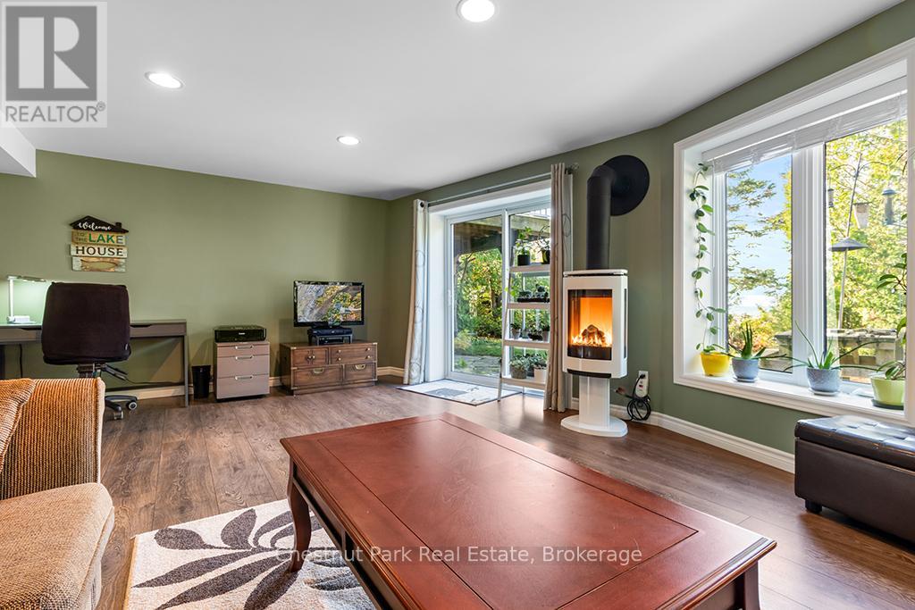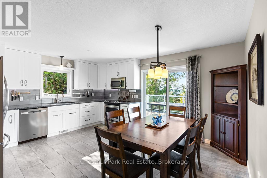 Welcome to this Quality engineered waterfront home set along the stunning shores of Lake Huron on the beautiful Bruce Peninsula. Meticulously maintained and thoughtfully designed, this four bedroom, three bathroom residence offers year round comfort, space, and timeless appeal. Located just twenty minutes from Tobermory village and minutes to the white sand beaches of Singing Sands, the property blends privacy, convenience, and unforgettable natural beauty. The heart of the home is the impressive great room, where vaulted ceilings and a wall of windows frame sensational, ever changing lake views. The spacious, light filled kitchen provides ample workspace and flows seamlessly to the upper deck, ideal for outdoor dining and entertaining. The primary bedroom is a peaceful retreat featuring a walk in closet, private ensuite, and direct access to the waterside deck. Main floor laundry adds everyday ease and functionality. The walkout lower level expands the living space with a comfortable family room warmed by a modern propane fireplace, perfect for relaxing after a day on the water. A large storage and mechanical room offers excellent utility and organization. Outdoors, 105 feet of Lake Huron frontage invites you to enjoy westerly exposure and breathtaking sunsets. A wooden boardwalk leads to a massive lakeside deck, complemented by a flagstone patio area for gatherings. The detached garage includes recreational space, while a greenhouse, garden shed, and ample parking complete this exceptional lakeside offering. This remarkable home is ideal as a full time residence, seasonal retreat, or legacy waterfront investment, offering comfort, quality craftsmanship, and the unmatched tranquility of Lake Huron living year round. (id:64974)
