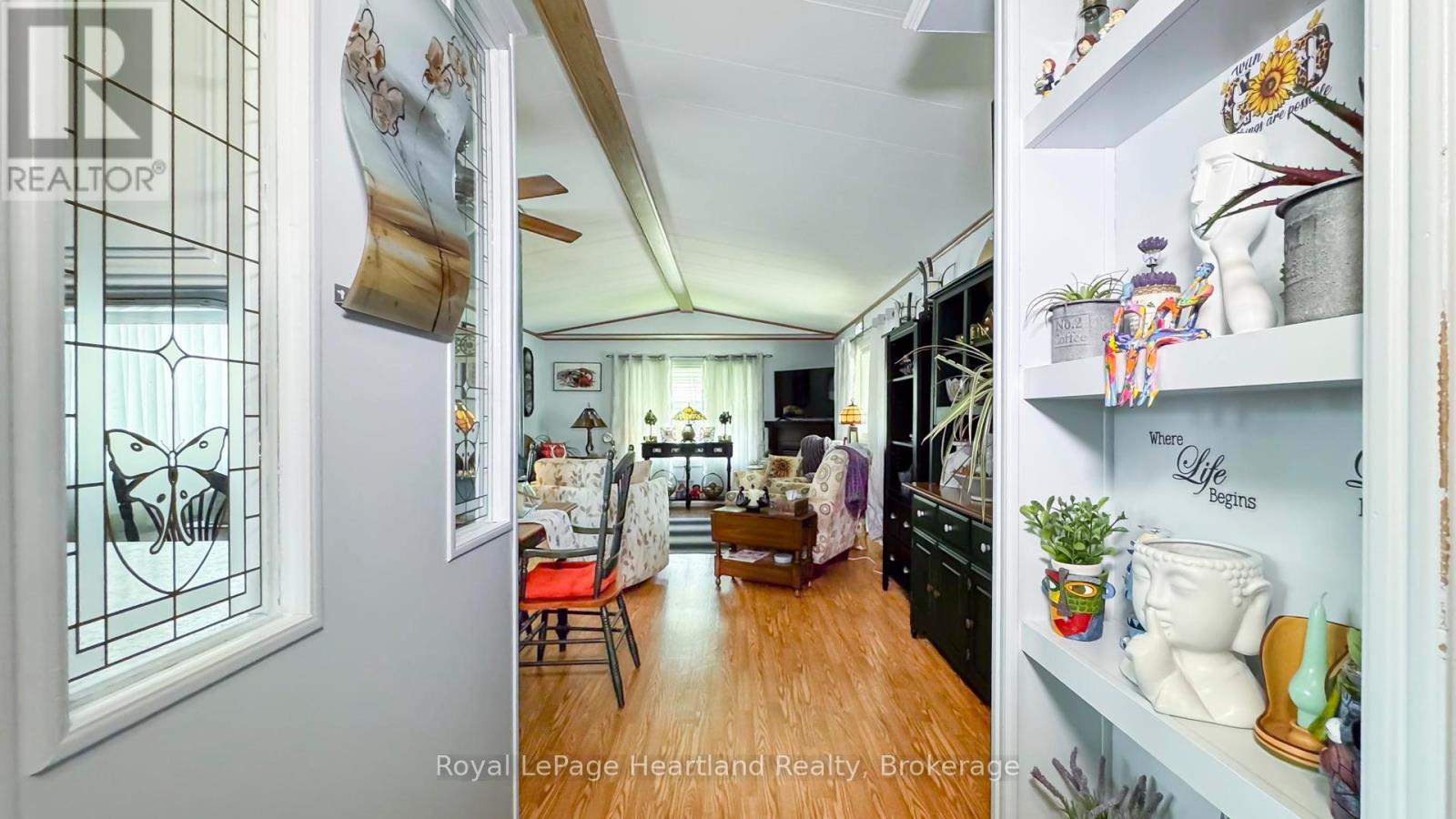 Welcome to your next chapter in the sought-after Riverview Estates, a welcoming community where lifestyle and comfort go hand in hand! Step inside to discover a bright and cheerful layout. The gas fireplace adds cozy warmth to the living area, while the primary bedroom features double closets for ample storage. The enclosed porch with removable panels offers the ideal spot to enjoy your morning coffee or unwind in the evening rain or shine! Residents of Riverview Estates enjoy access to a vibrant community hub that includes a recreational hall with kitchen, pool table, shuffleboard, darts and a fitness room. Located in a town with everything you need hospital, healthcare services, restaurants, golf, shopping, and more this is carefree living done right. Don't miss your chance to own this delightful home in a fantastic community. Book your private showing today! (id:64974)