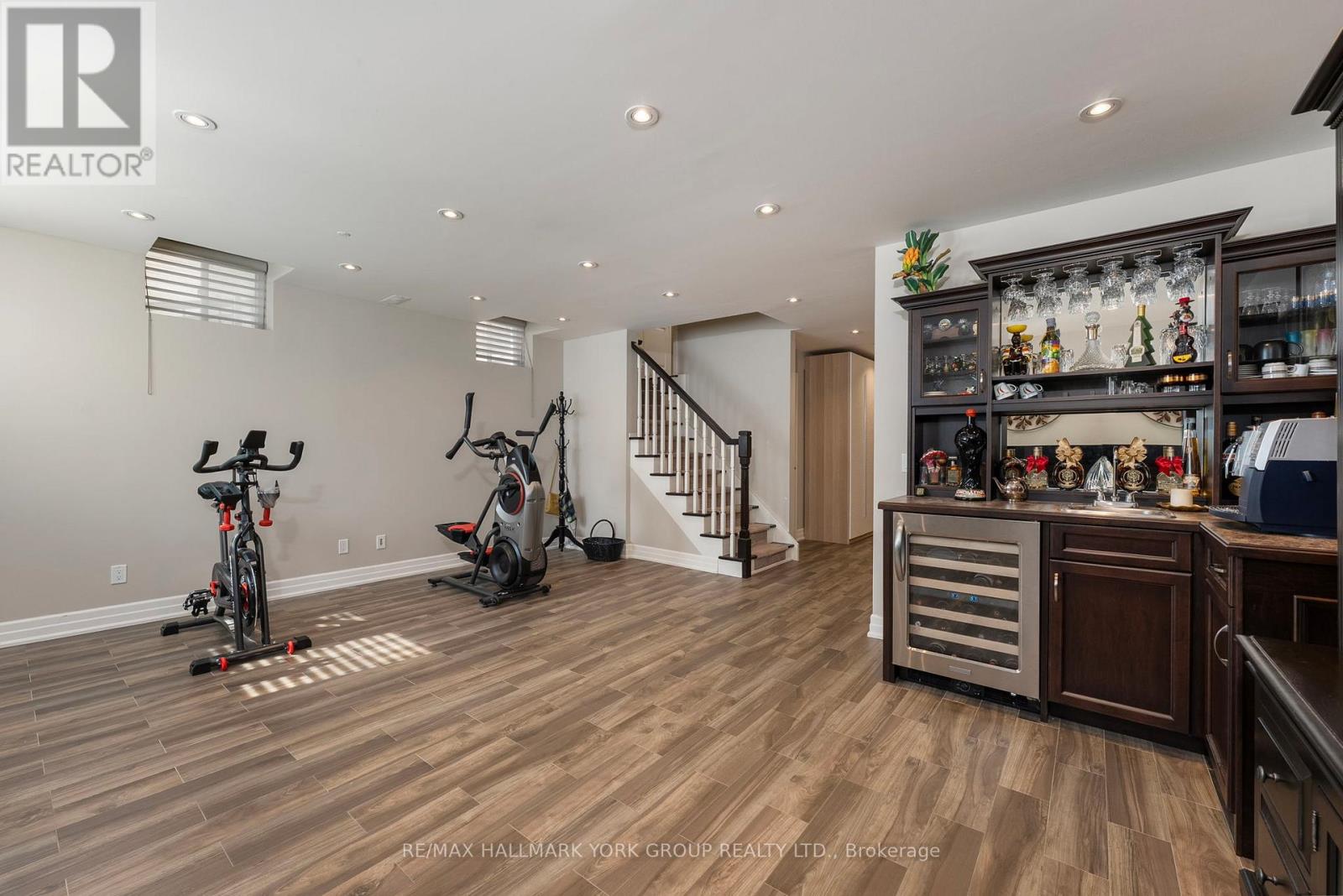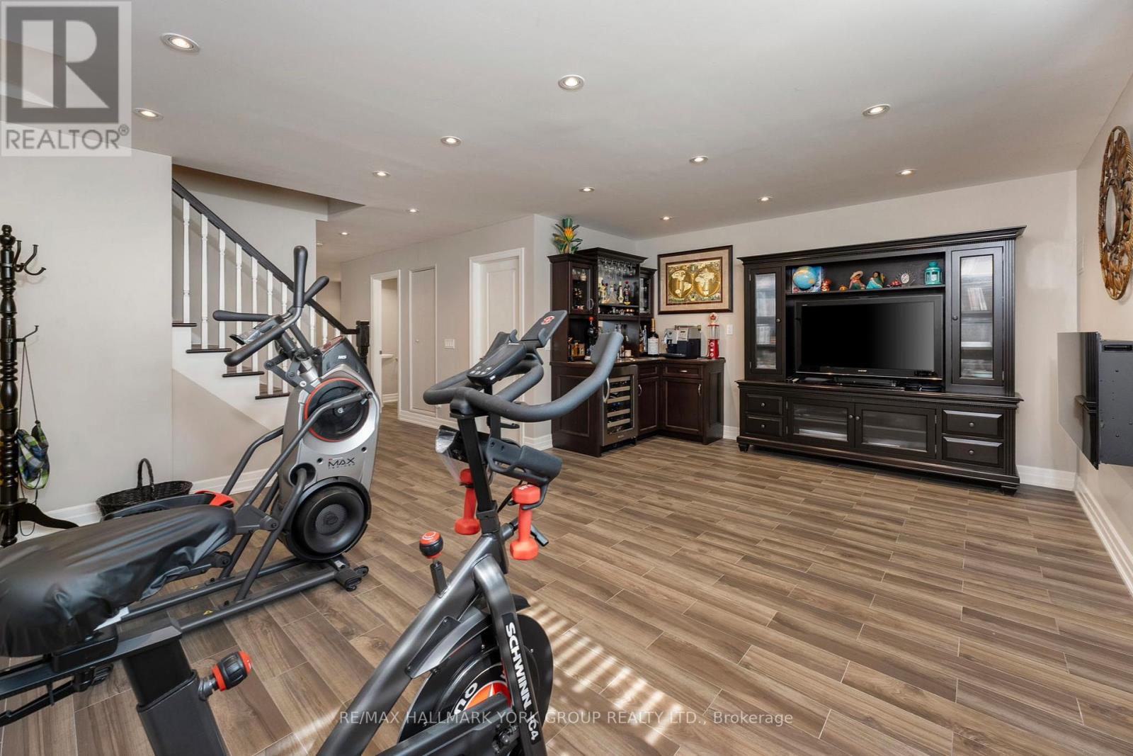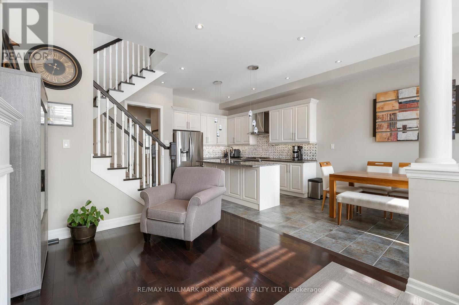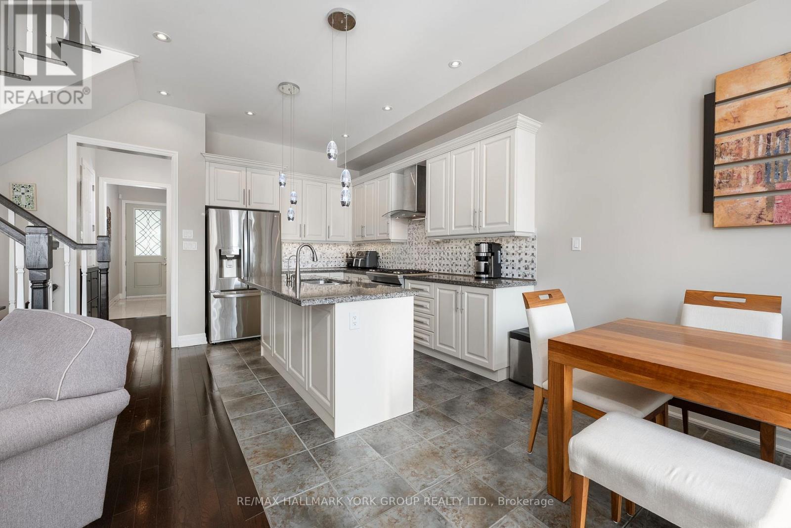 Welcome to this stunning 3-bedroom, 4-bathroom home, linked only at the garage, offering exceptional privacy and outstanding curb appeal in one of King City's most sought-after communities. Thoughtfully designed with both style and functionality in mind, this home showcases quality finishes throughout. The main floor features 9-foot ceilings, rich hardwood flooring, and a modern, open-concept layout perfect for everyday living and entertaining. The chef-inspired kitchen is equipped with stainless steel appliances, a gas stove, granite countertops, and a spacious center island. Upstairs, the primary retreat impresses with a tray ceiling, a walk-in closet, and a luxurious 6-piece ensuite. The second bedroom features custom built-ins and a charming window bench, while the third bedroom offers a versatile Murphy bed and desk-ideal for guests or a home office. A convenient second-floor laundry room with additional cabinetry completes this level. The professionally finished walkout basement boasts 8-foot ceilings, ceramic wood-look tile flooring, and a bright recreation space highlighted by an electric fireplace. Enjoy a built-in bar with a bar fridge, a large cantina, soundproofed ceilings, and ample storage. Step outside to your private backyard oasis featuring a composite deck, interlock patio, gazebo, and shed-perfect for relaxing or entertaining. Additional features include a heated garage with backyard access, 200-amp electrical service, Hunter Douglas blinds, central vacuum, and smart home upgrades. This exceptional home seamlessly blends modern luxury with everyday comfort-an absolute must-see. (id:64974)
