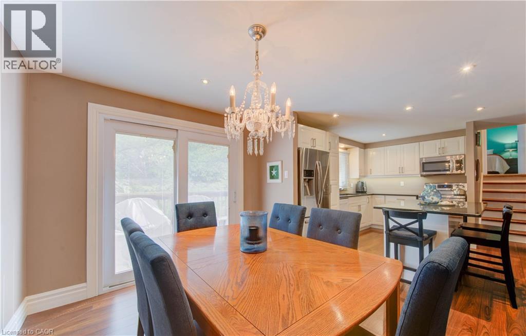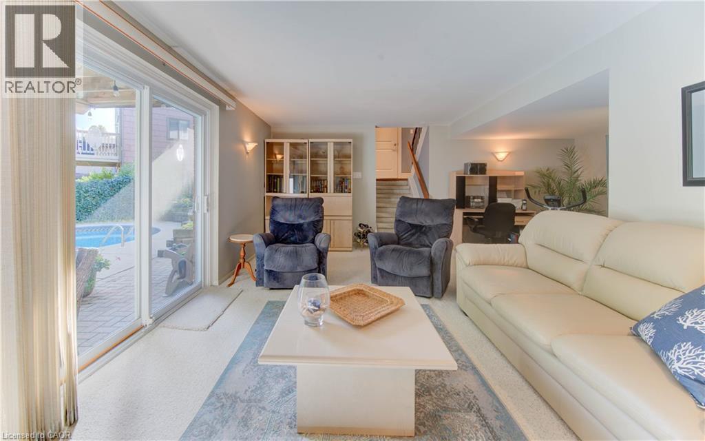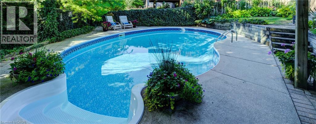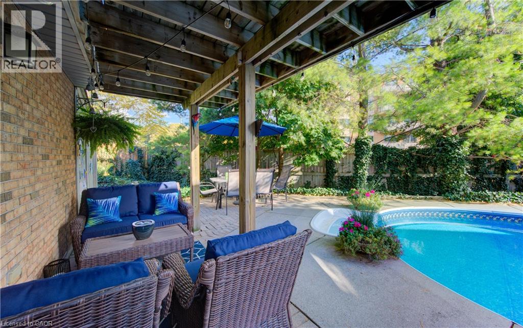 Pristine 4 level side split in exclusive and highly desired enclave of homes! This 3 bedroom gem has been meticulously maintained, updated and loved by the same family for over 40 years. Large main floor foyer with travertine floors has access to garage and conveniently located laundry room. The main level is open concept, carpet free and features a tastefully updated kitchen with centre island, potlights, abundance of cabinets, granite counters, s/s appliances, opening onto dining room with walk out to deck perfect for bbq, overlooking treed backyard. Sprawling living room with picture window and treed streetscape view rounds out the main floor. The third level features 3 good sized bedrooms and a full bathroom. Fully finished basement has additional 3 piece bathroom and walk out to backyard oasis with heated inground pool and lush gardens! Year round privacy with evergreen trees. Double wide driveway plus single car garage allows for plenty of parking. Full crawlspace allows for tons of storage. Updates include: Hot water heater (rental) 2024, A/C 2022, Furnace 2017, all windows, eavestroughs 2019, pool pump 2024, front door and shutters in 2023, pool shed roof 2025. Excellent location with easy access to Expressway, 401, schools, shopping, pharmacy, restaurants and public transit! Everything is done here, just move in and enjoy! (id:64974)