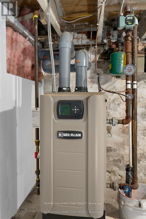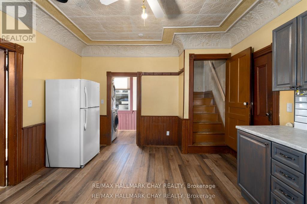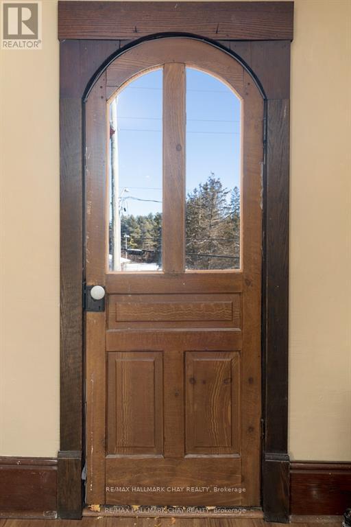 Welcome to the Davenport House. This beautiful century custom builders home will call you with it's unique custom finishes. The wrap around covered porch, original craftsman front door with stained glass. Custom wood work staircase, balusters and under staircase storage wood panels. Crown molding, 9 inch baseboards and wood detail custom ceiling. Classic century style with 2 separate stair cases. Kitchen offers the original Tin ceiling a walkout to side deck and a back 3 season den and enclosed storage room and back staircase to the upper level. Pantry/laundry room off kitchen. Separate dining room and living room. Main floor generous sized bathroom in addition to the upstairs full bathroom. Upper sunroom with walkout to the balcony. This home offers 3 upper bedrooms. This is an extremely well maintained century home. Updated gas hot water tank, updated copper electrical 200 amp breaker panel. Updated plumbing, basement walls have spray foam insulation and new septic. All exterior walls have been insulated. Most windows are updated, roof in in good condition. Heating cost is very efficient with the concrete exterior walls and added insulation. Outdoor structure a detached smaller barn and garden shed. Close hwy access 15 min from Barrie. Located across the road from a park. Close to skiing, golf, hiking and snowmobiling. (id:64974)