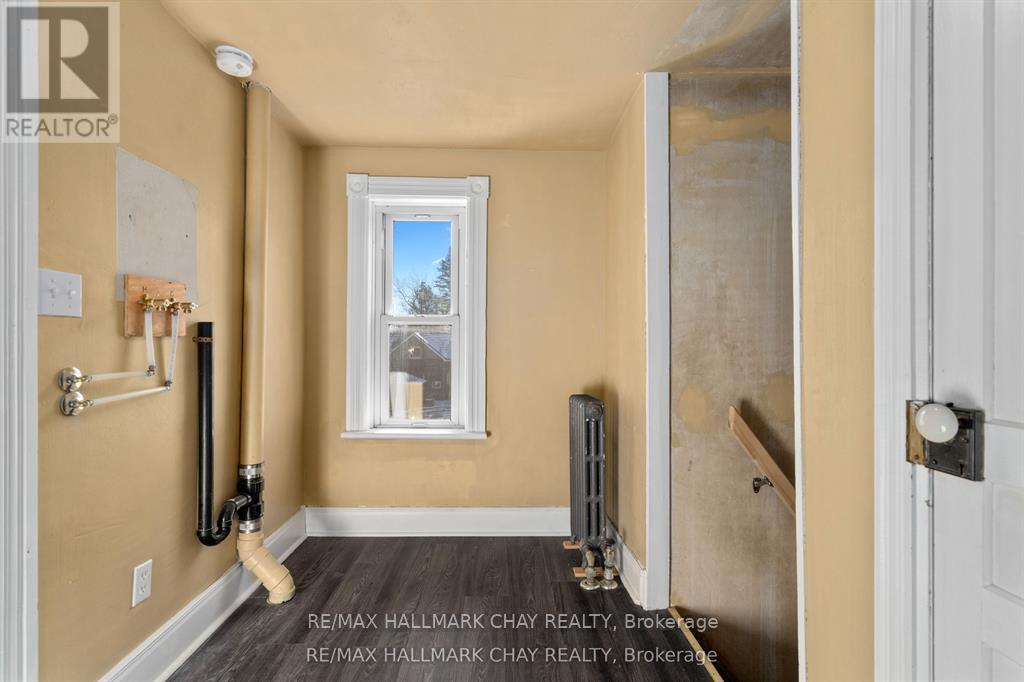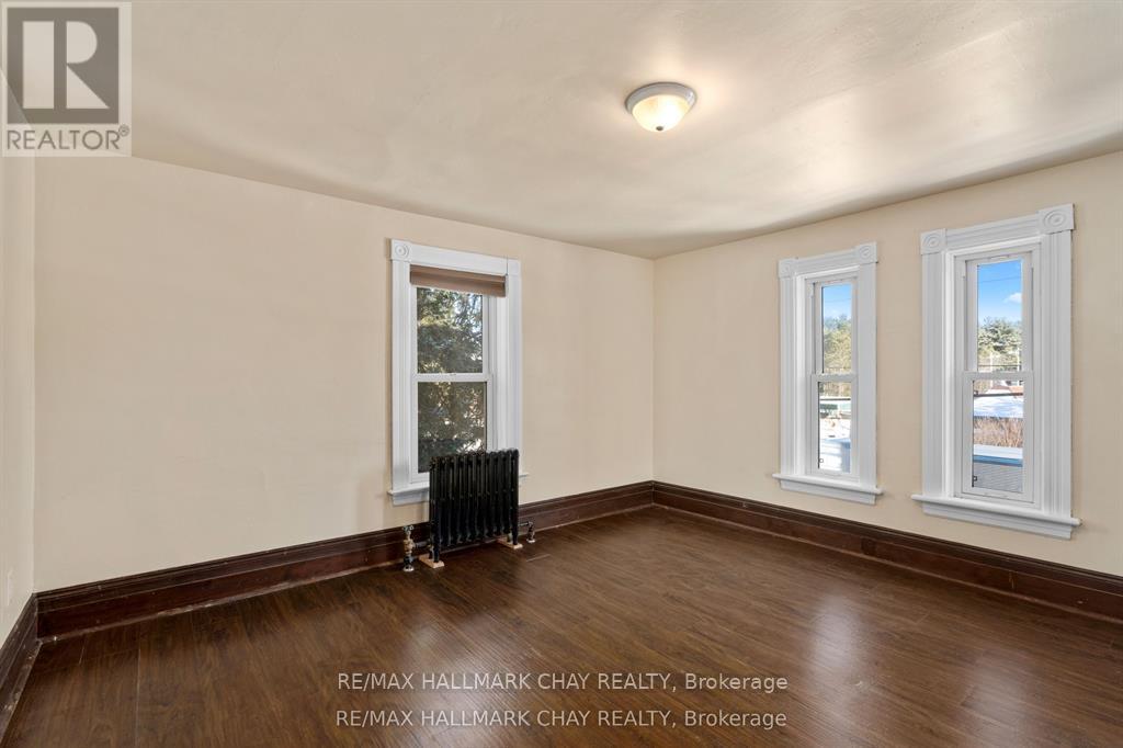 Welcome to the Davenport House. This beautiful century custom builders home will call you with it's unique custom finishes. The wrap around covered porch, original craftsman front door with stained glass. Custom wood work staircase, balusters and under staircase storage wood panels. Crown molding, 9 inch baseboards and wood detail custom ceiling. Classic century style with 2 separate stair cases. Kitchen offers the original Tin ceiling a walkout to side deck and a back 3 season den and enclosed storage room and back staircase to the upper level. Pantry/laundry room off kitchen. Separate dining room and living room. Main floor generous sized bathroom in addition to the upstairs full bathroom. Upper sunroom with walkout to the balcony. This home offers 3 upper bedrooms. This is an extremely well maintained century home. Updated gas hot water tank, updated copper electrical 200 amp breaker panel. Updated plumbing, basement walls have spray foam insulation and new septic. All exterior walls have been insulated. Most windows are updated, roof in in good condition. Heating cost is very efficient with the concrete exterior walls and added insulation. Outdoor structure a detached smaller barn and garden shed. Close hwy access 15 min from Barrie. Located across the road from a park. Close to skiing, golf, hiking and snowmobiling. (id:64974)